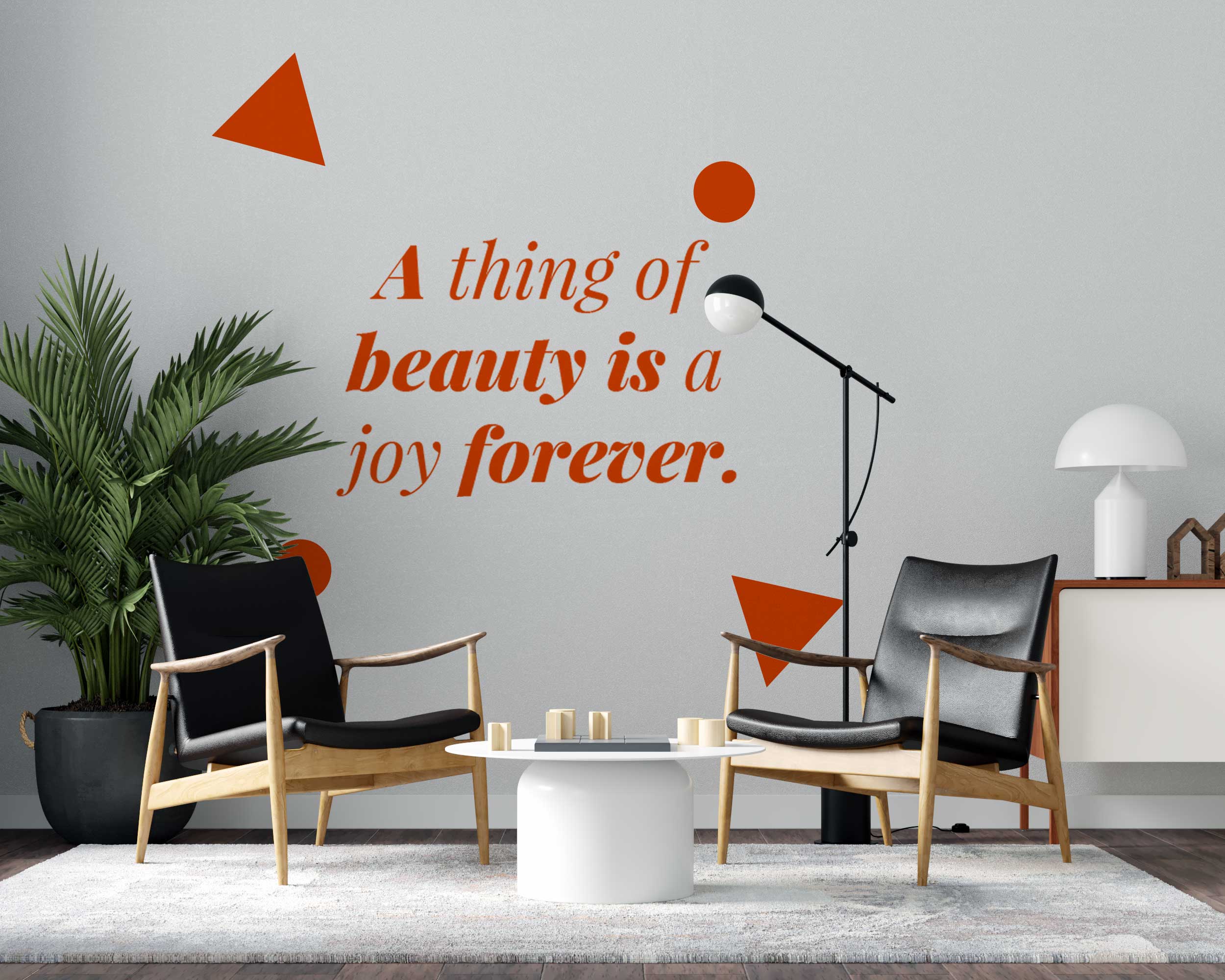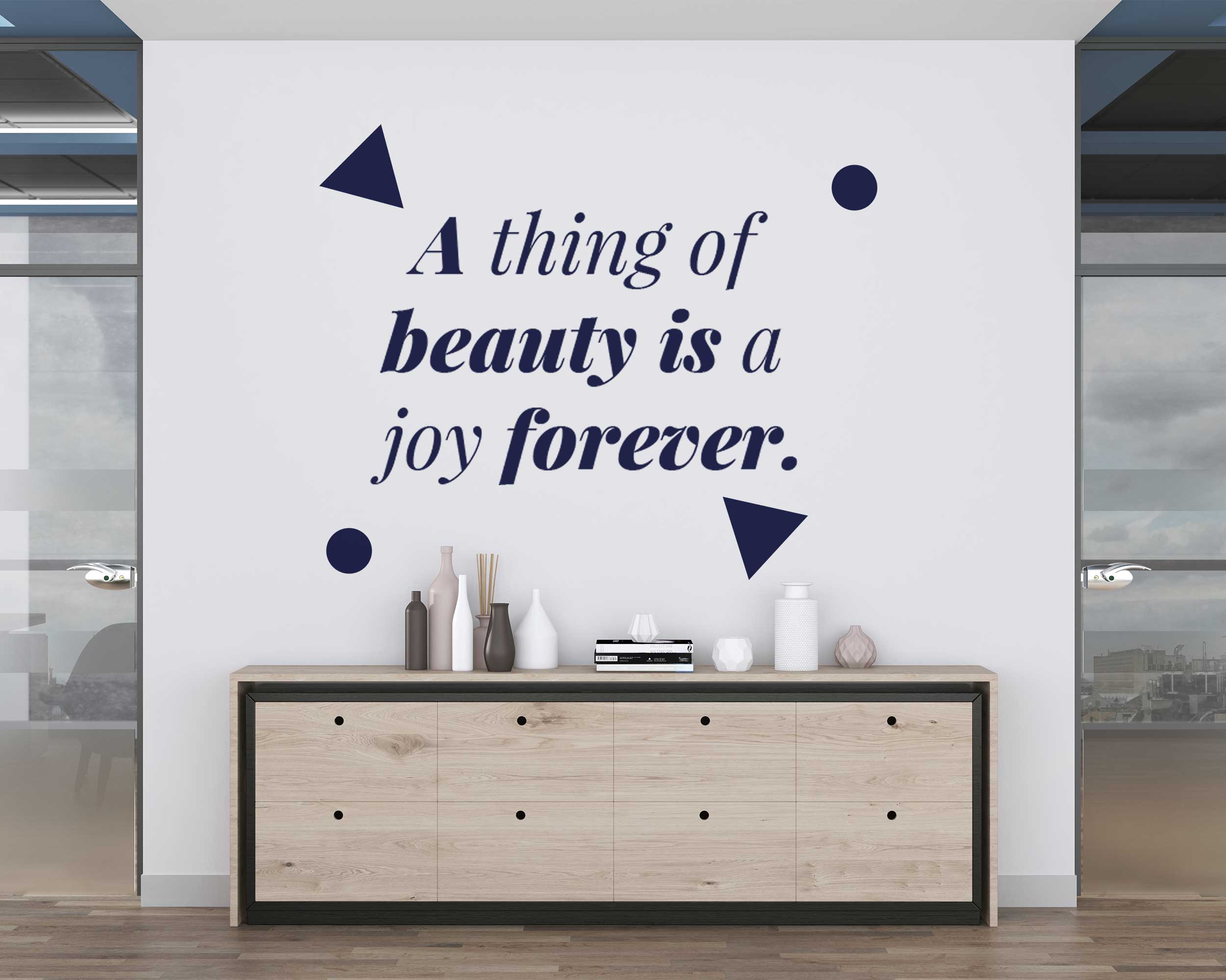 Elevate the ambiance of your workspace with “A Thing of Beauty is Joy Forever” wall decal, exclusively from Visual Decor Treasures. Made from premium PVC material, this elegant motivational wall art is designed to inspire and uplift. Its timeless message serves as a daily reminder of the enduring power of beauty and joy in our lives.
