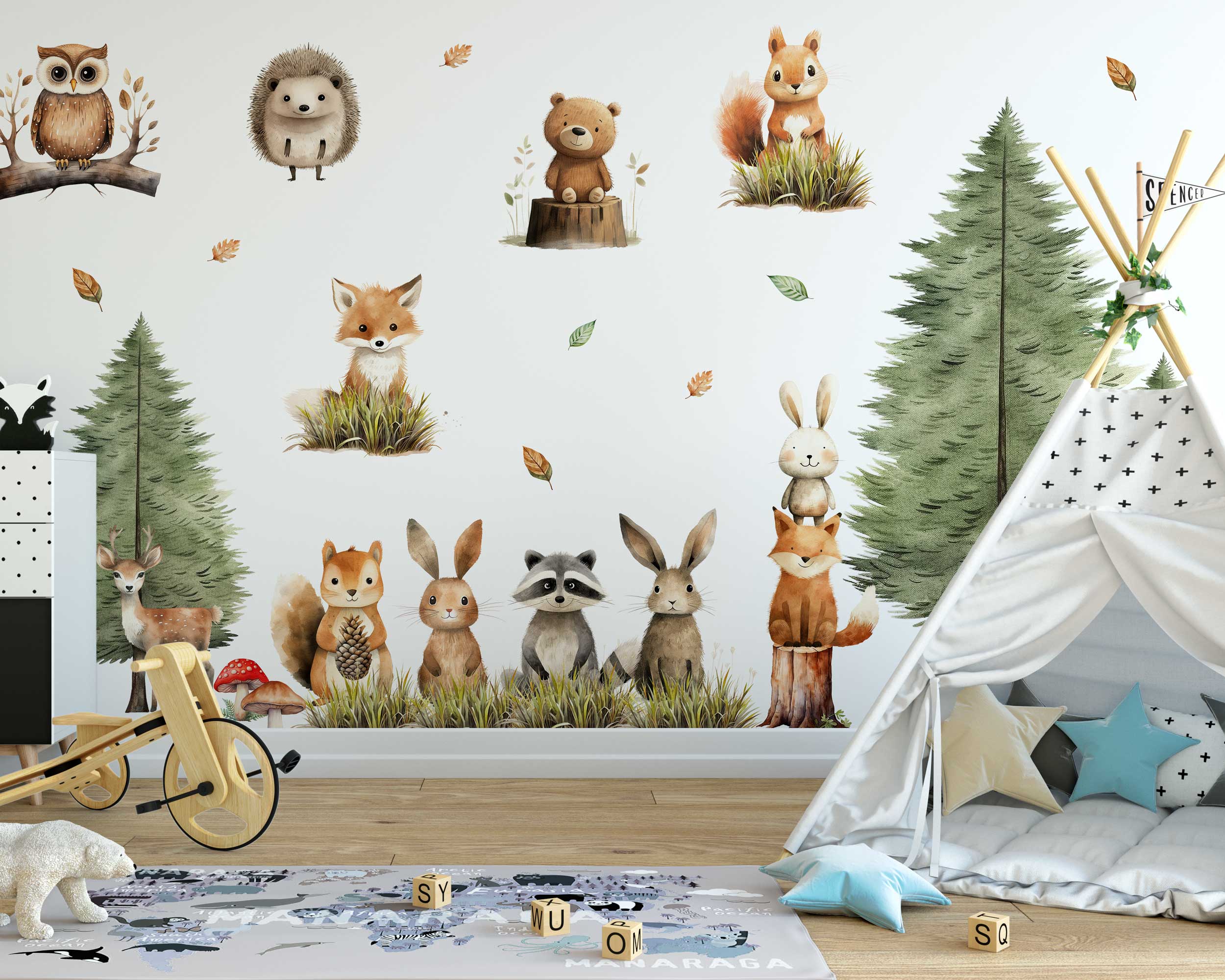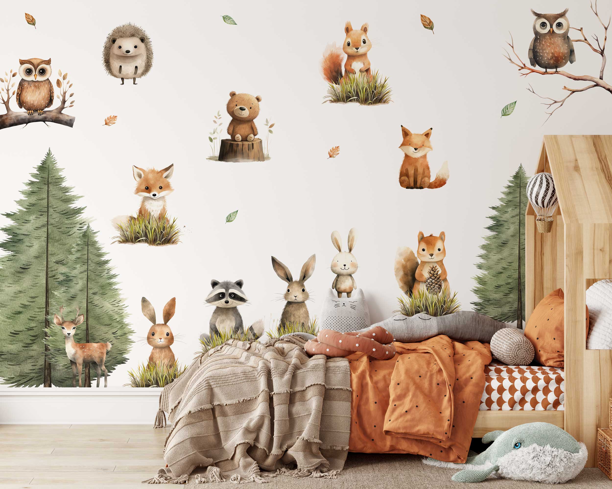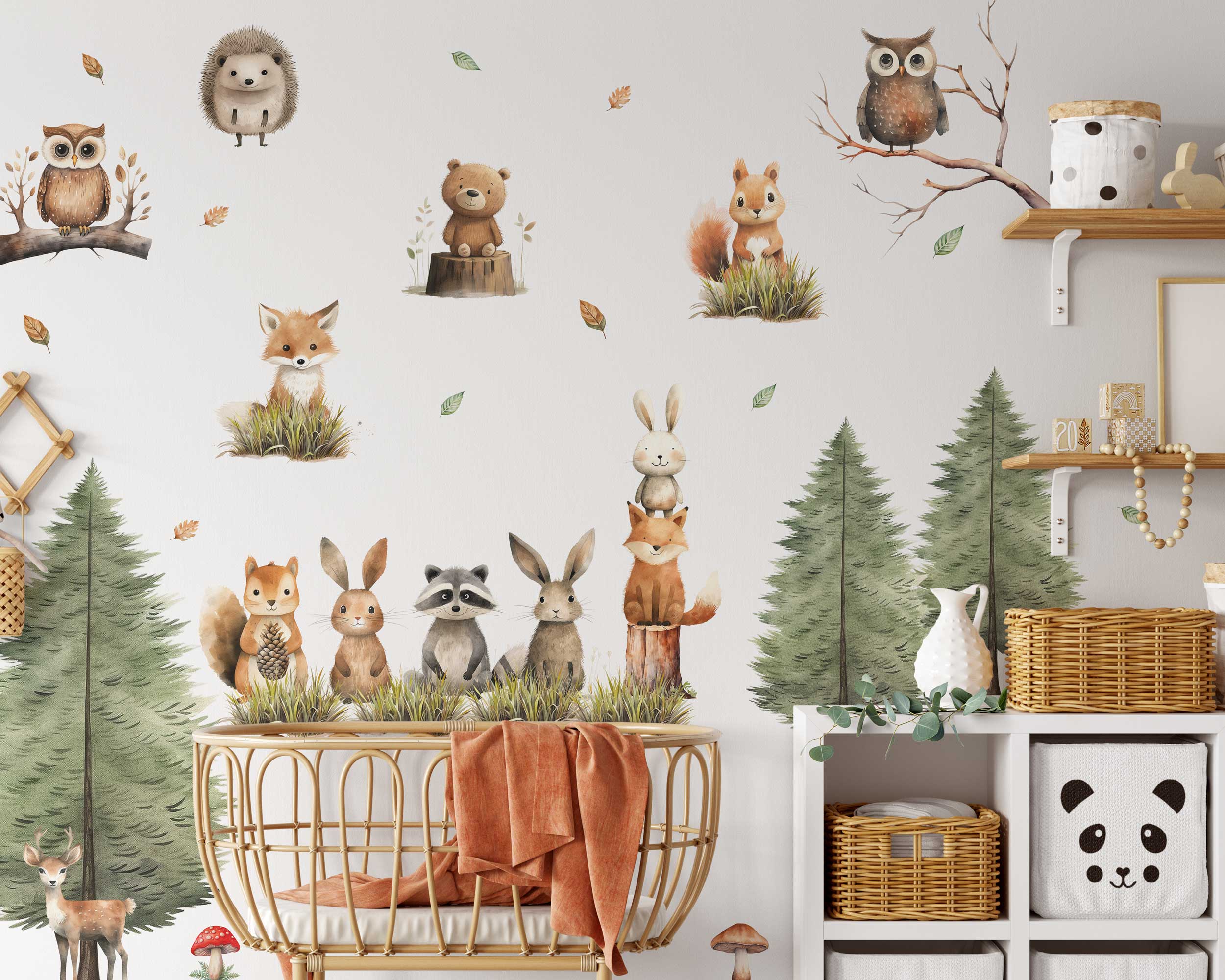 Cute Woodland Animal Wall Sticker – Forest Tree Decal Animal Wall Art – Kids Wall Decal, Playroom & Nursery Decor – Birthday Gift for Kids