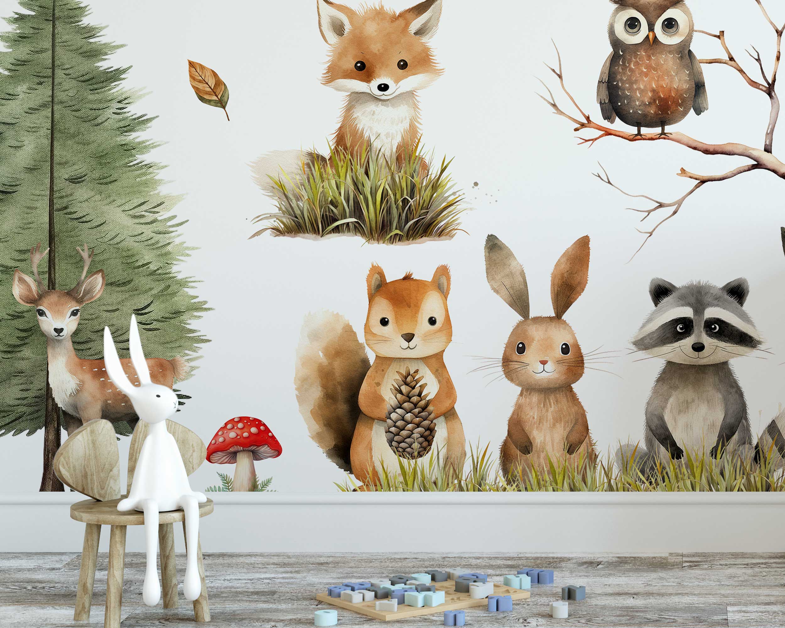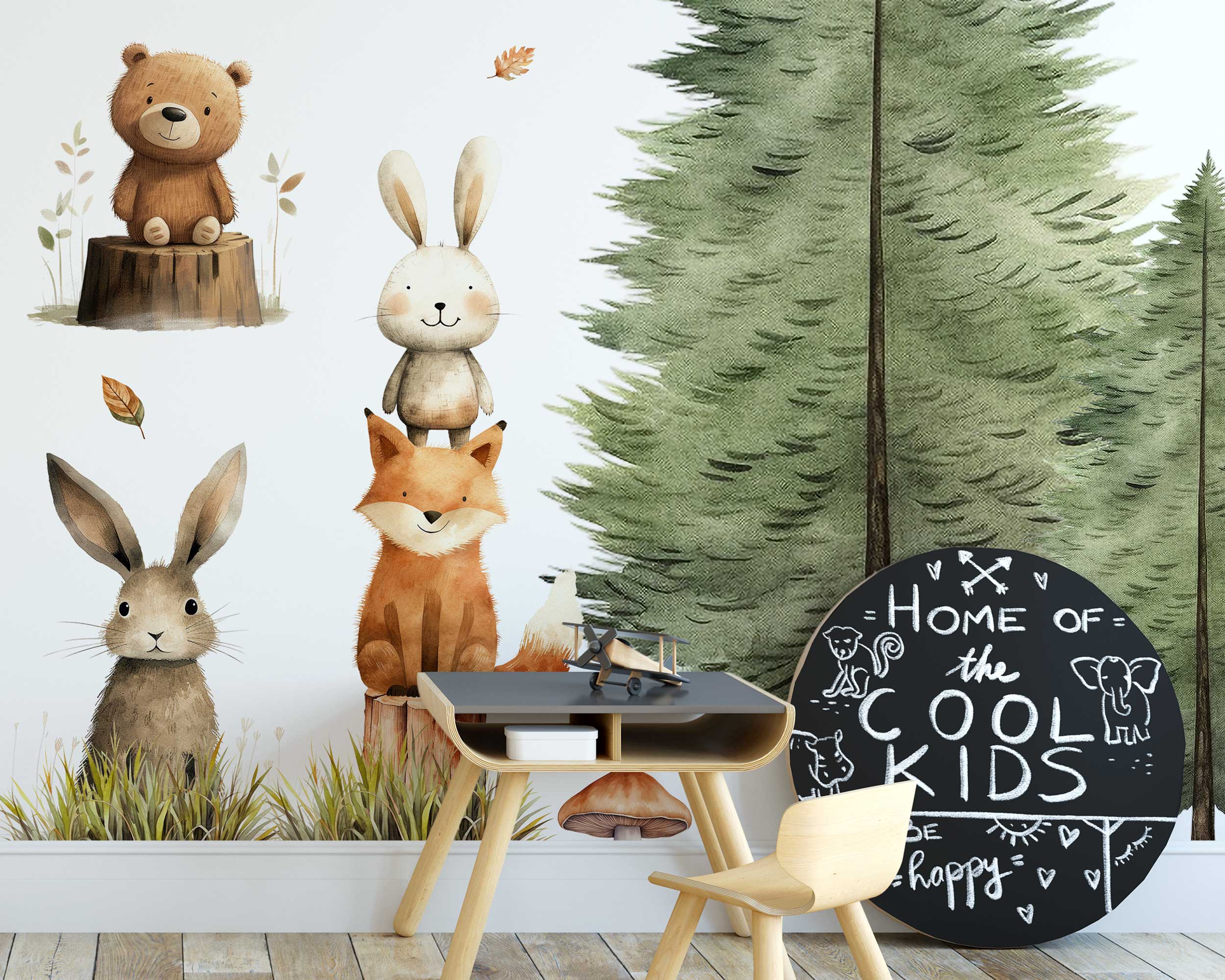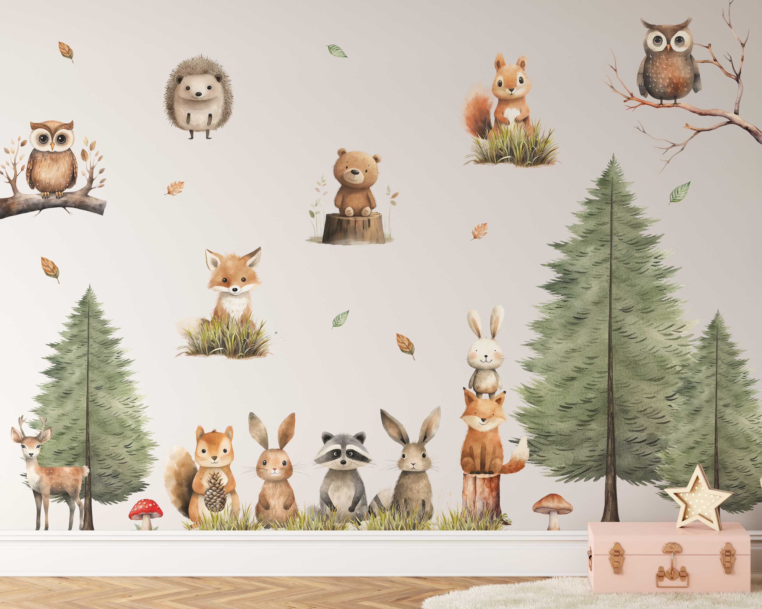 Cute Woodland Animal Wall Sticker – Forest Tree Decal Animal Wall Art – Kids Wall Decal, Playroom & Nursery Decor – Birthday Gift for Kids