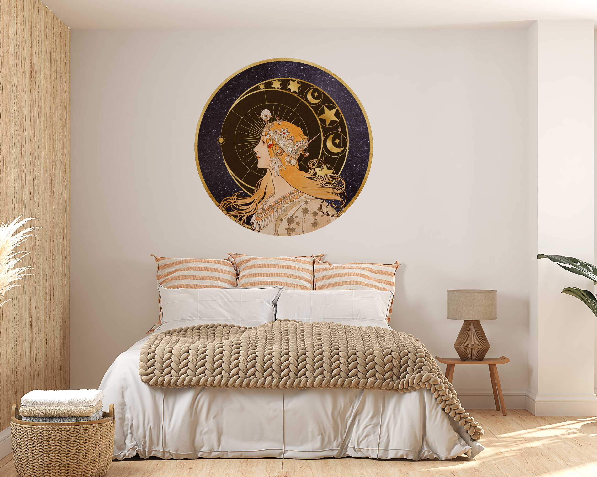 Our Zodiac Circle wall decal features the intricate and iconic design of Alphonse Mucha, showcasing astrological symbols and a beautiful female figure in stunning detail. This captivating design brings a touch of bohemian charm and artistic flair to any room. Available in a range of sizes, you can choose the perfect fit for your space.