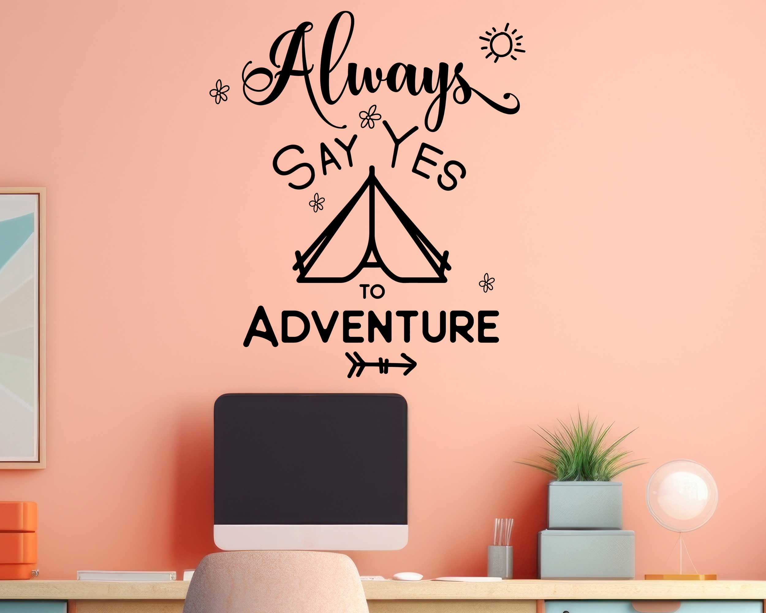 Embrace the spirit of adventure with our “Always Say Yes To Adventure” motivational wall art, exclusively from Visual Decor Treasures. Crafted from high-quality PVC material, this inspirational decal features a bold design and uplifting quotes that serve as a reminder to seize every opportunity and embrace new experiences. Ideal for offices, study spaces, or any room where motivation is needed, this wall art adds a touch of inspiration to your surroundings.