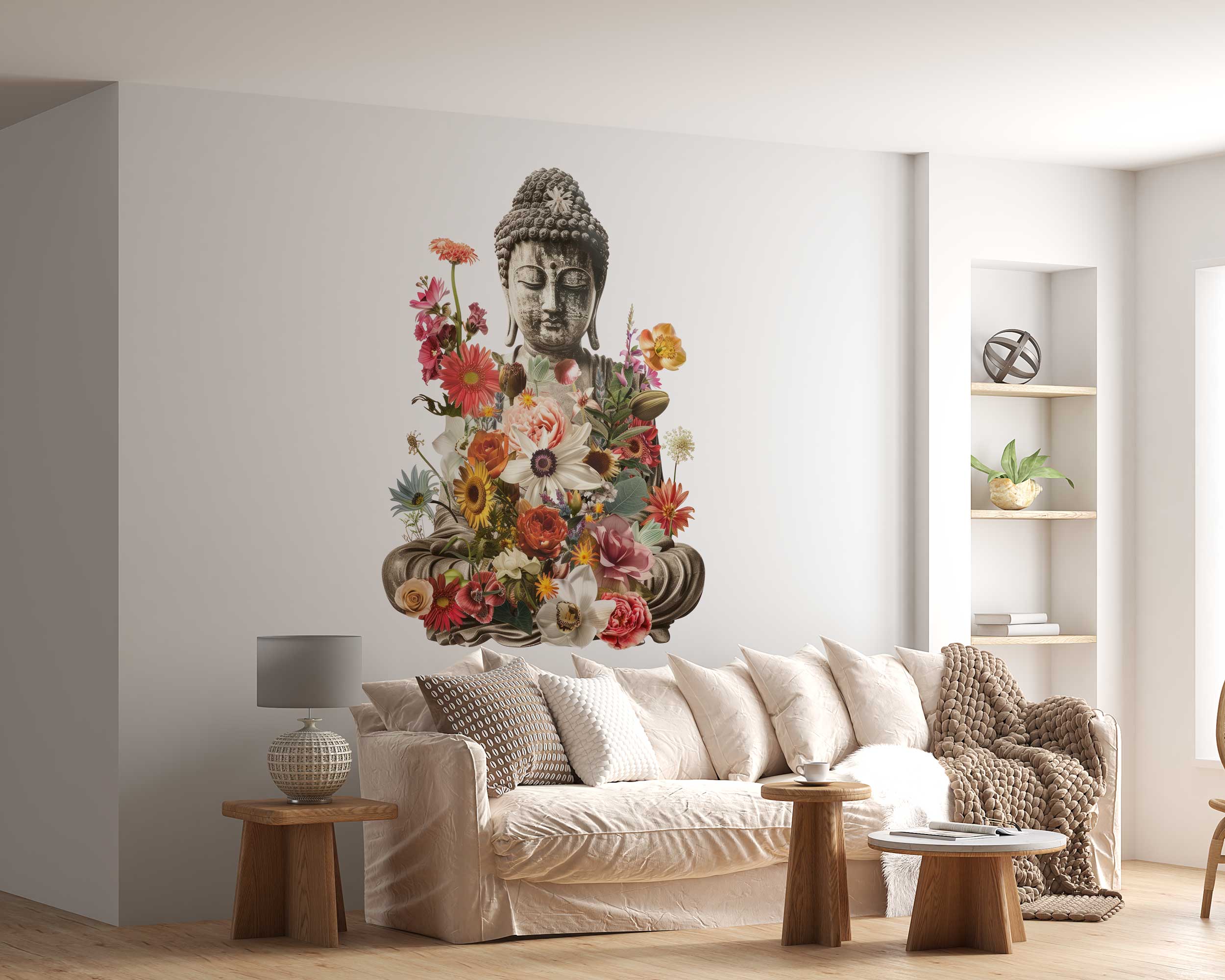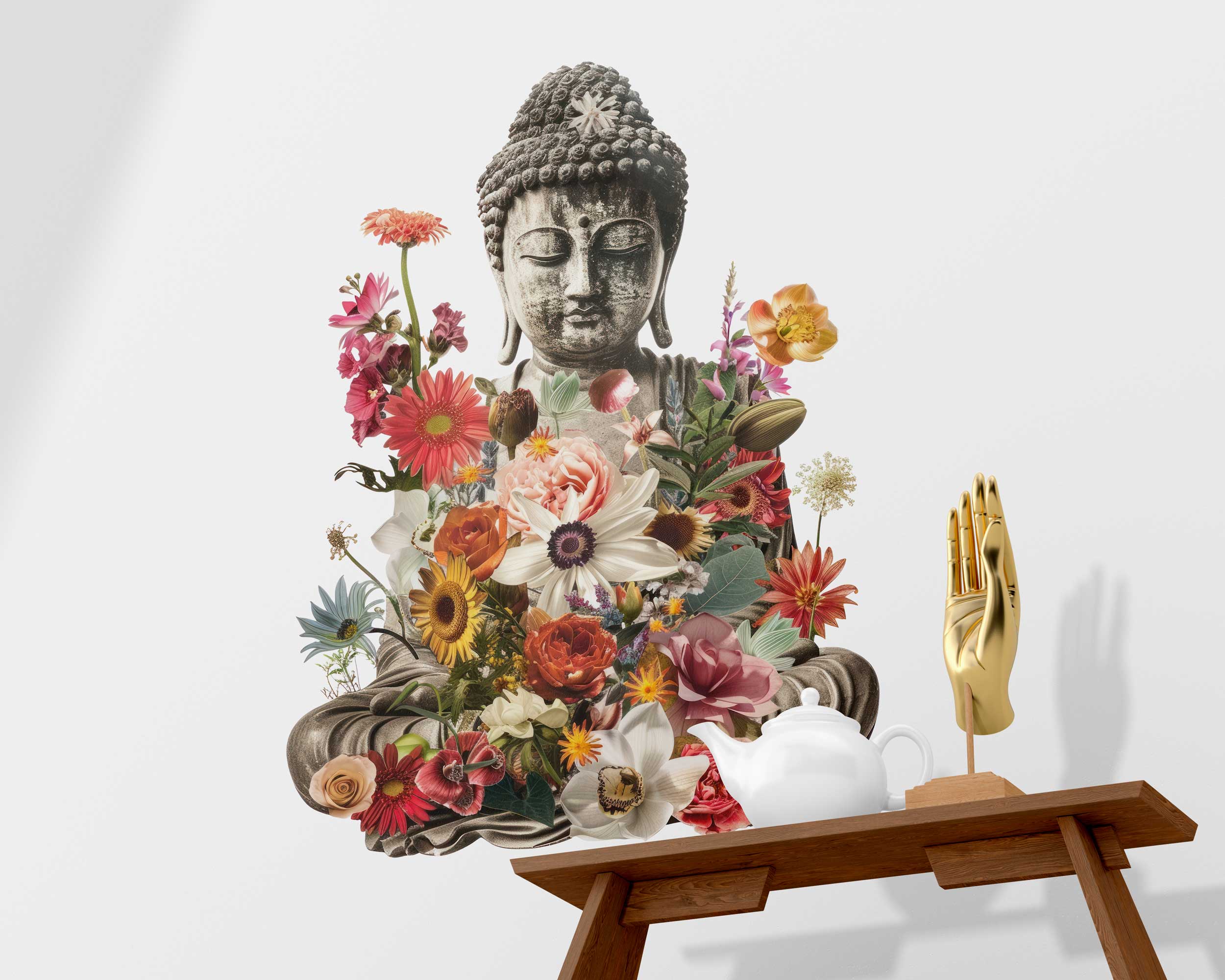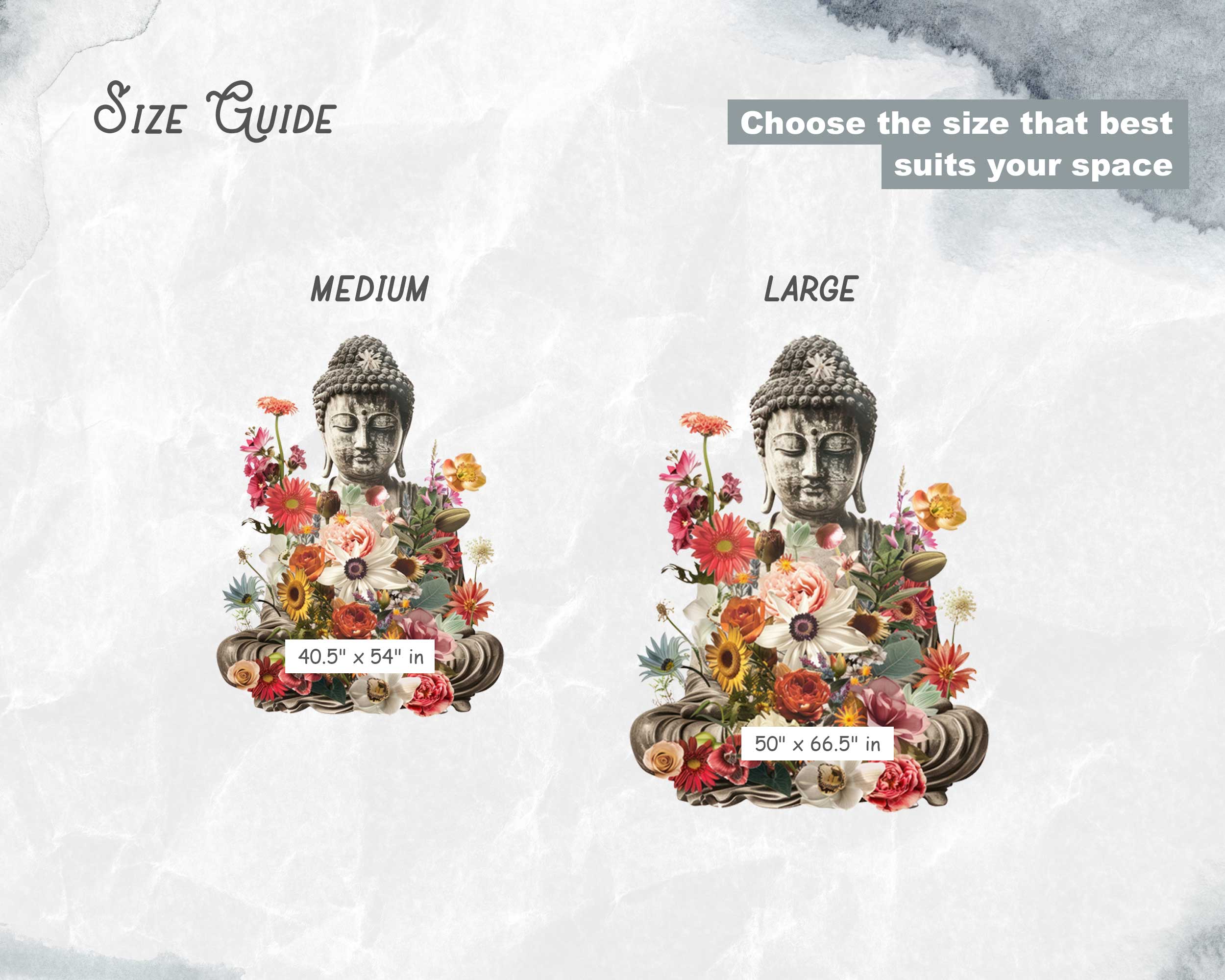 Transform your space with our Buddha Floral Wall Sticker, featuring a serene Buddha statue surrounded by vibrant flowers. This removable fabric wall decal is perfect for creating a peaceful and zen atmosphere in your home, yoga studio, or meditation room. Crafted with high-quality materials and non-toxic inks, our wall sticker is easy to apply, remove, and reposition without damaging your walls.