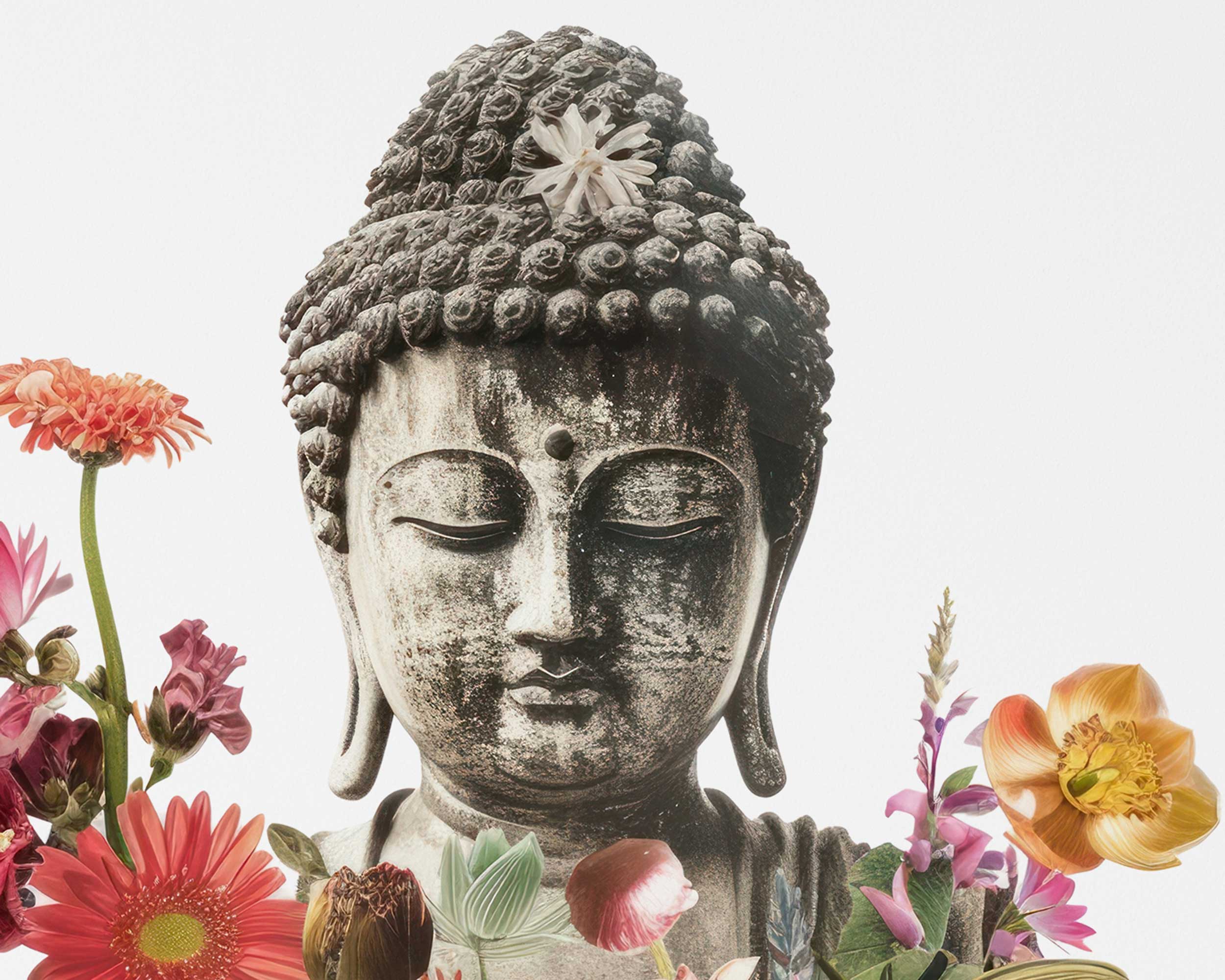 Bring a touch of tranquility and spiritual elegance to your space with this stunning Buddha floral wall art.