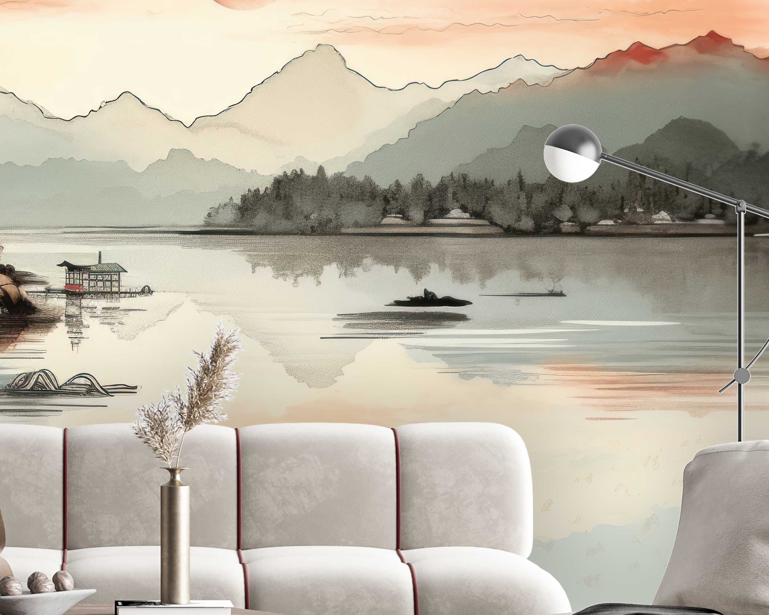 Chinese Ink Painting Landscape Wall Mural – Traditional Oriental Decor Art Removable Wallpaper, Asian Classic Wallpaper