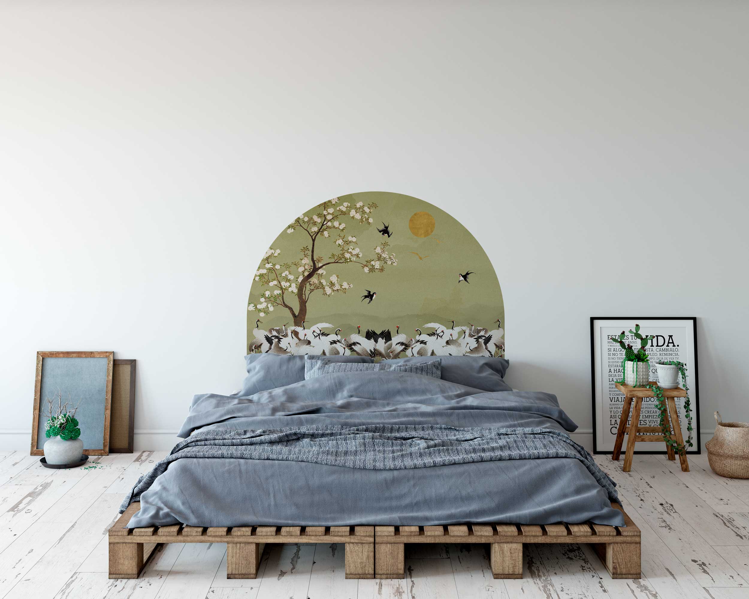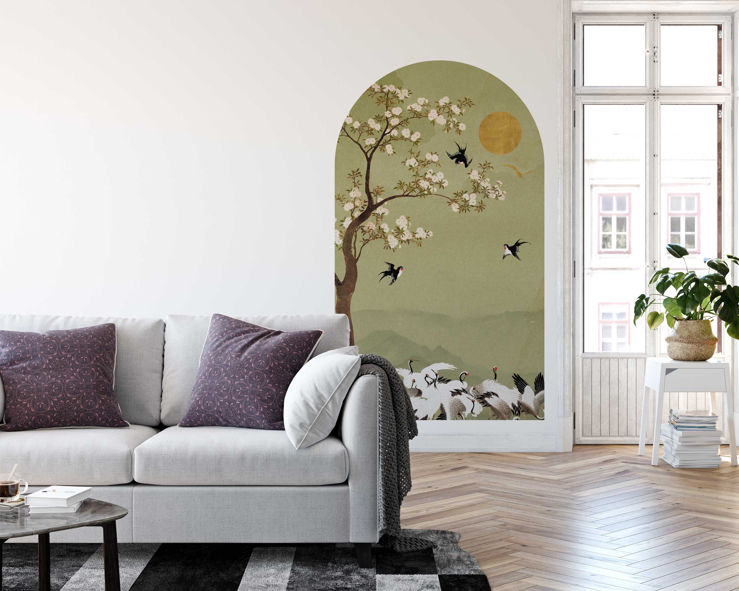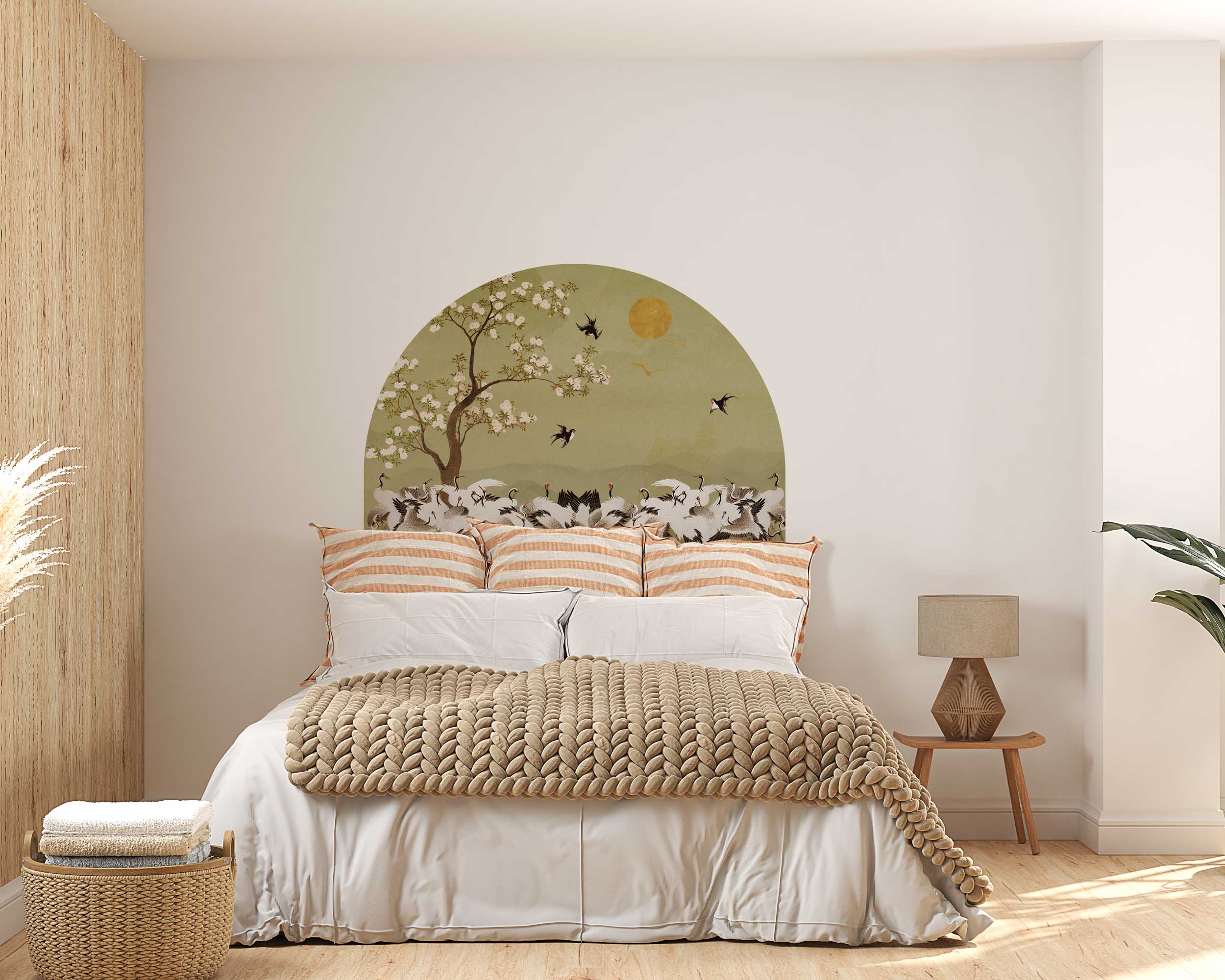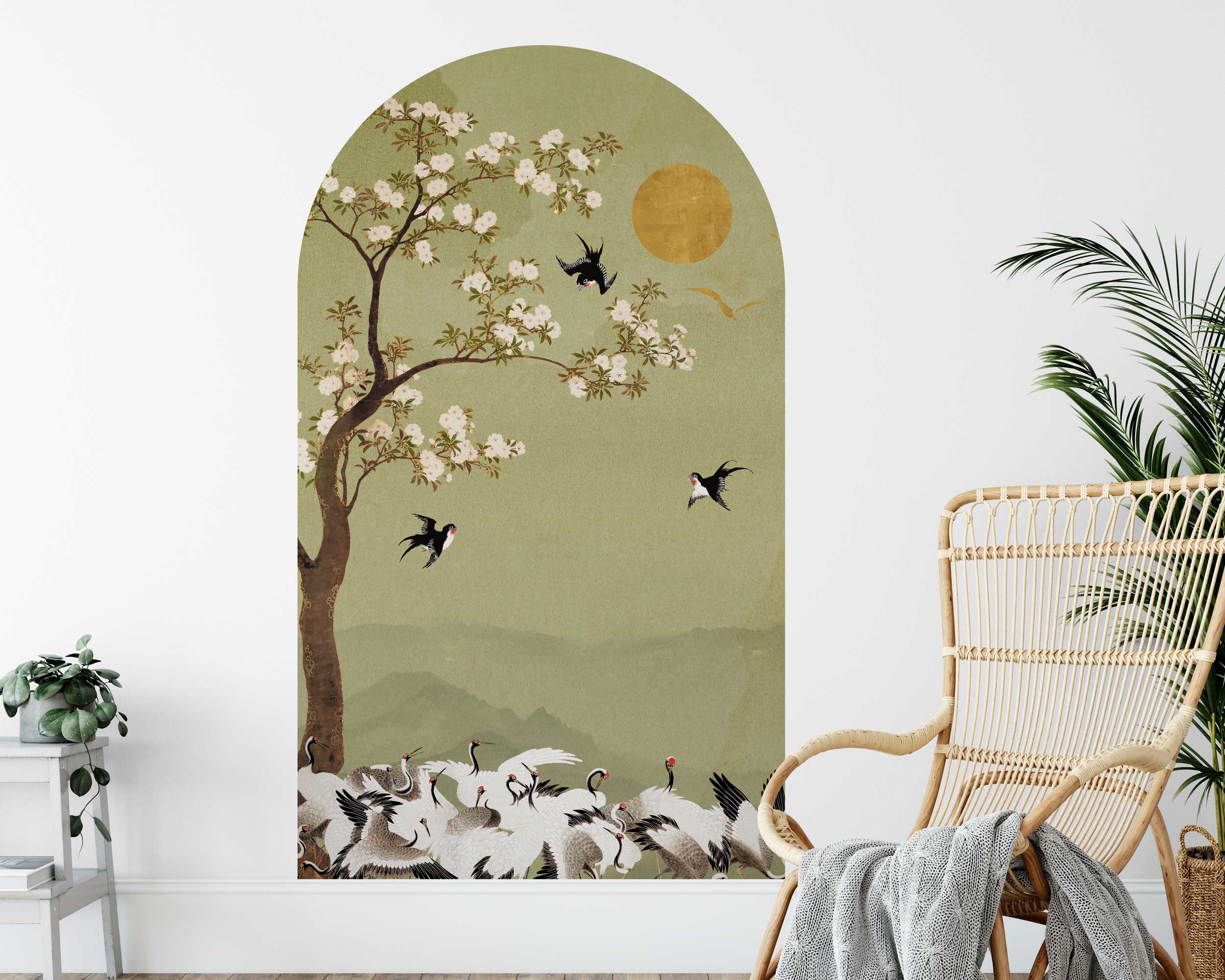 Enhance your space with the timeless elegance of our Chinoiserie Tree and Birds Headboard Wall Sticker. Perfect for bedrooms, this arch-shaped wall decal features a stunning Chinoiserie design with a blossoming tree, birds, and a radiant sun, adding a serene and sophisticated touch to your decor. Crafted from high-quality fabric material, this wall decal is both durable and easy to apply, ensuring a seamless and stylish addition to your home.