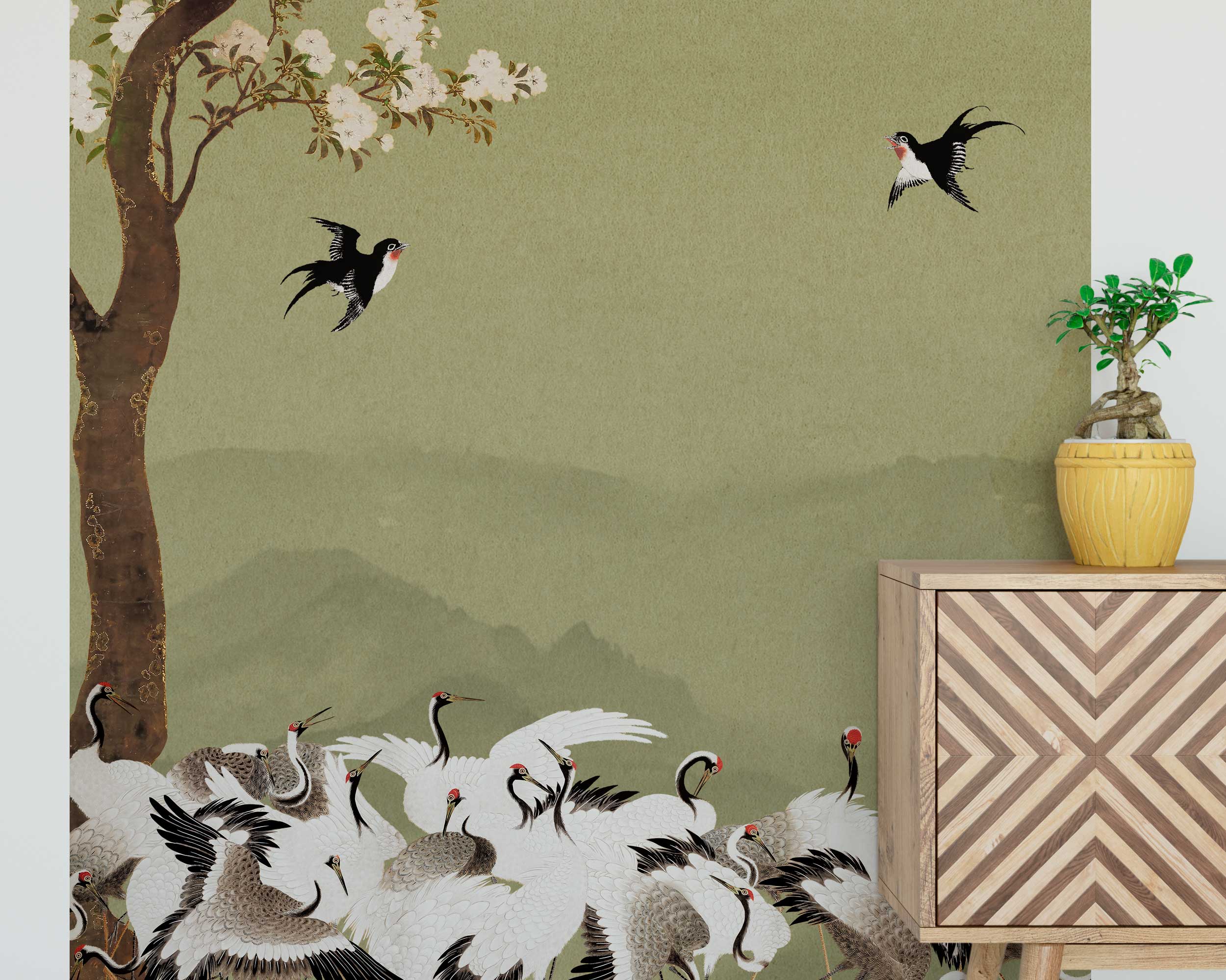 Our Chinoiserie wall decal showcases an intricate design that brings a touch of nature’s beauty into any room. This captivating design serves as a delightful focal point behind your bed. Available in a range of sizes, you can choose the perfect fit for your space. Bring a piece of art history into your home with this enchanting Chinoiserie tree and birds headboard wall decal and transform your bedroom with elegance.