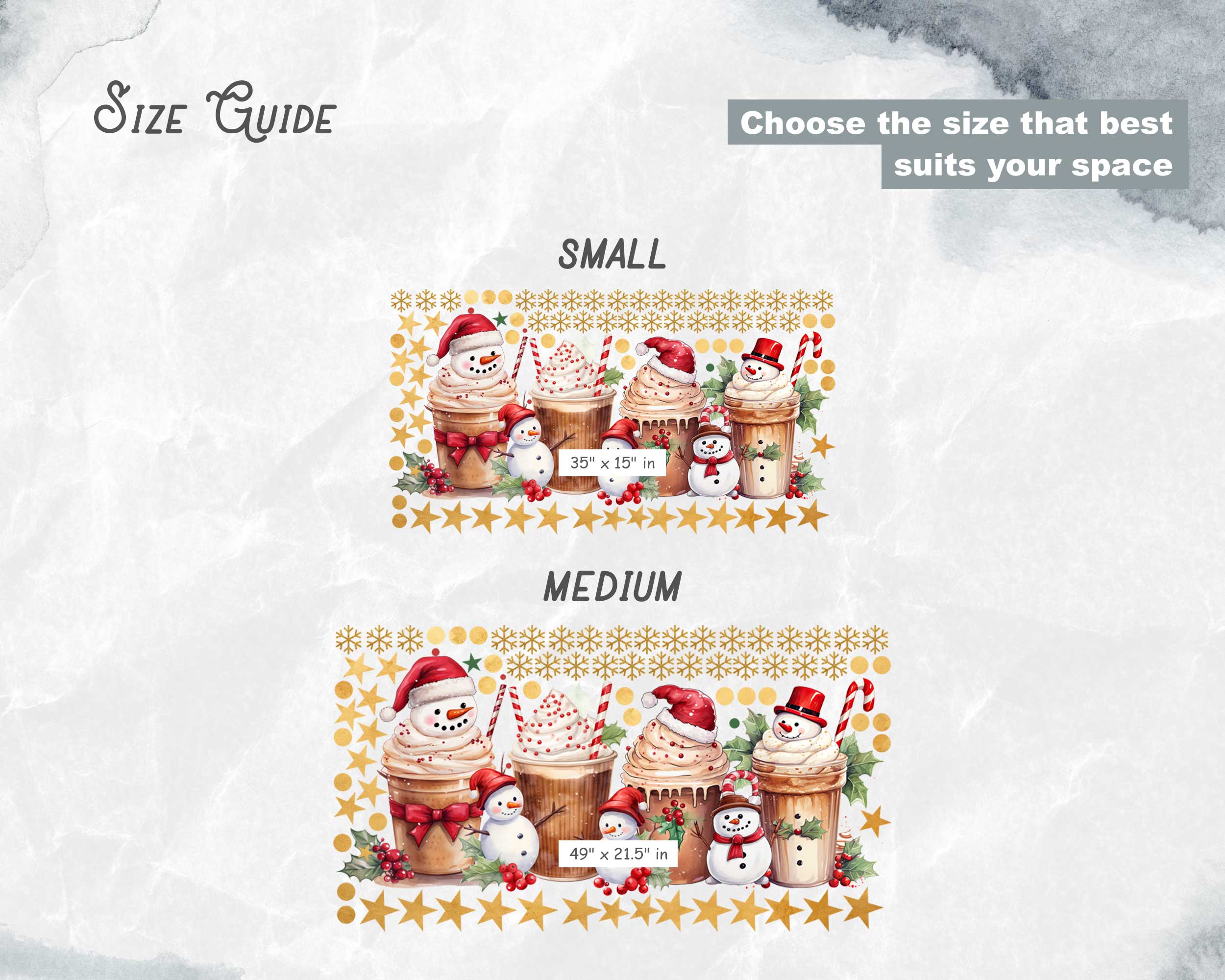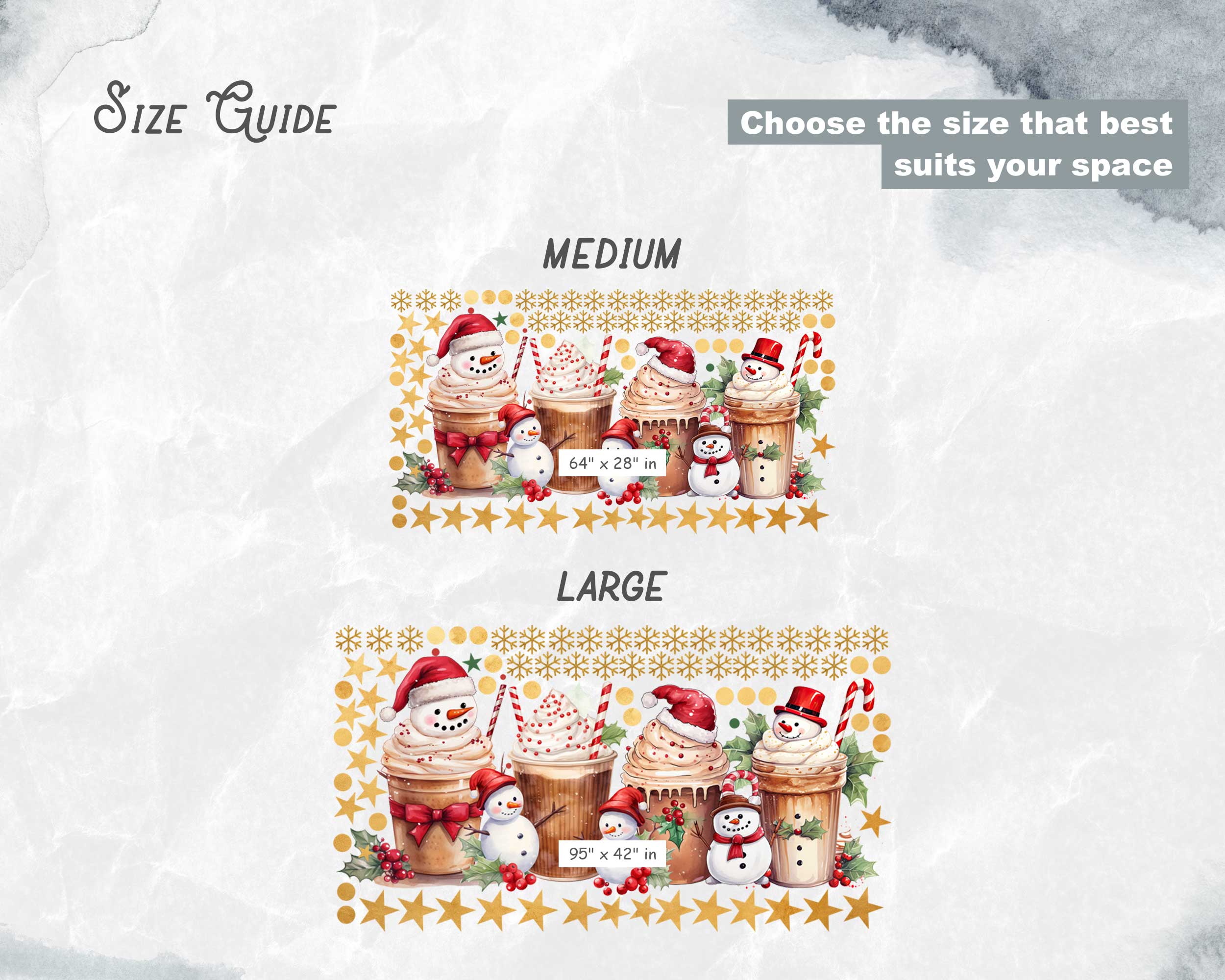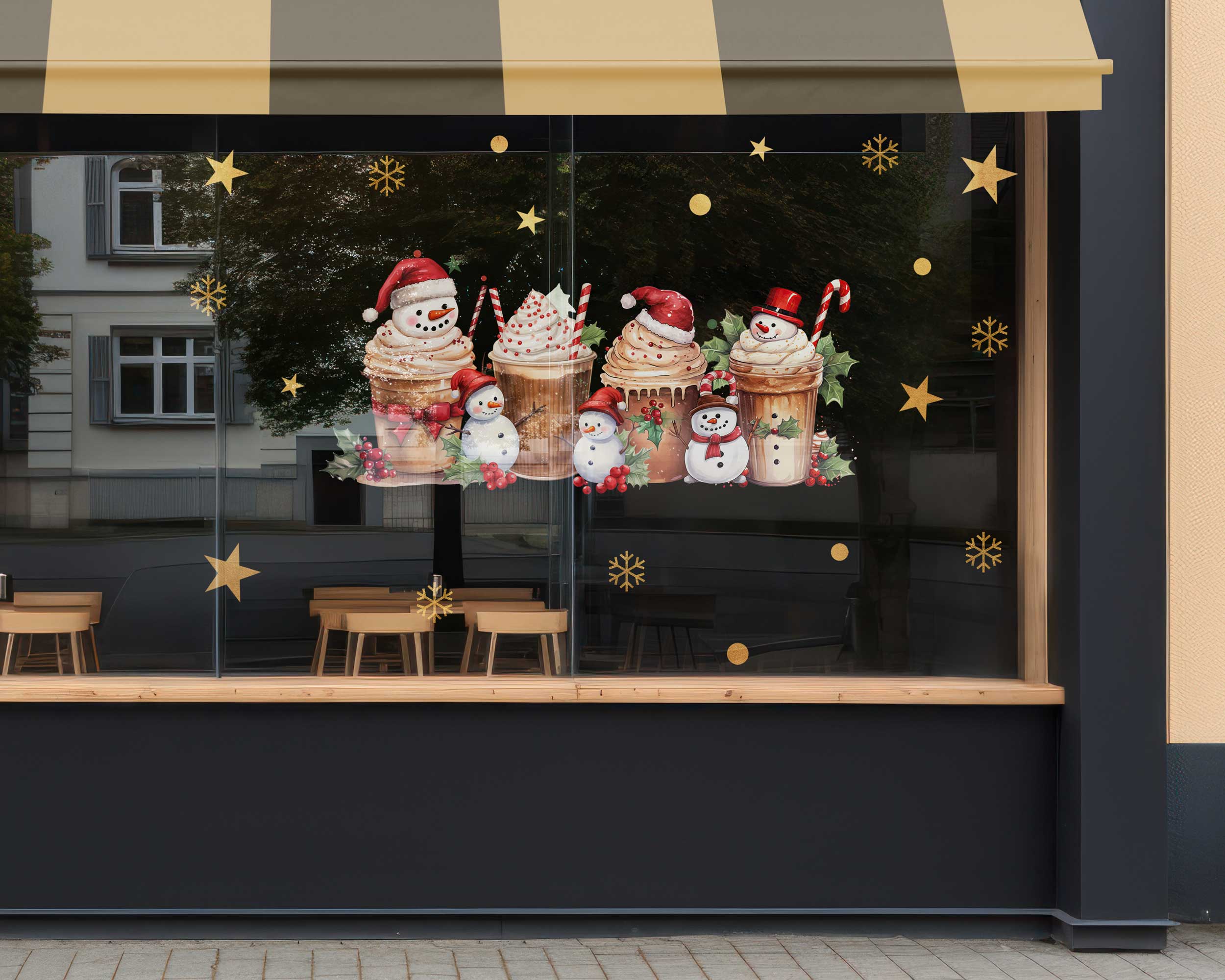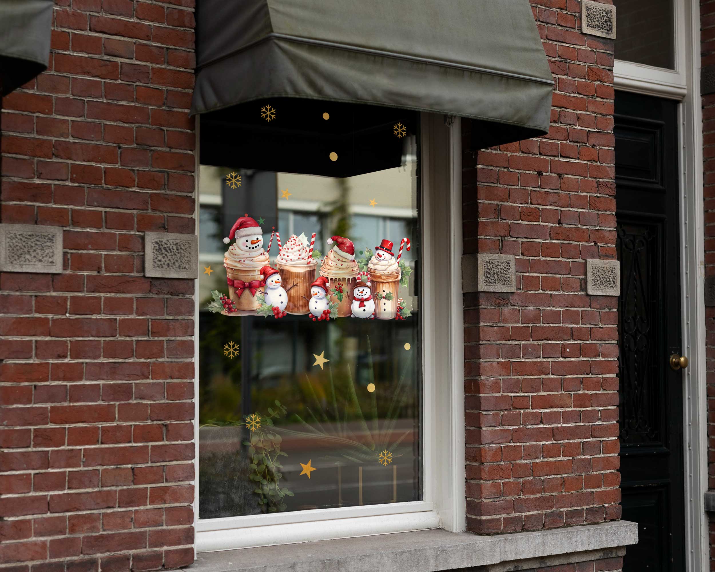 These decals are ideal for bakeries, coffee shops, or any retail space wanting to create a cozy, festive atmosphere. The playful snowmen, sweet treats, and star accents are sure to charm passersby and spread holiday spirit. Transform your shop windows today with this enchanting set!