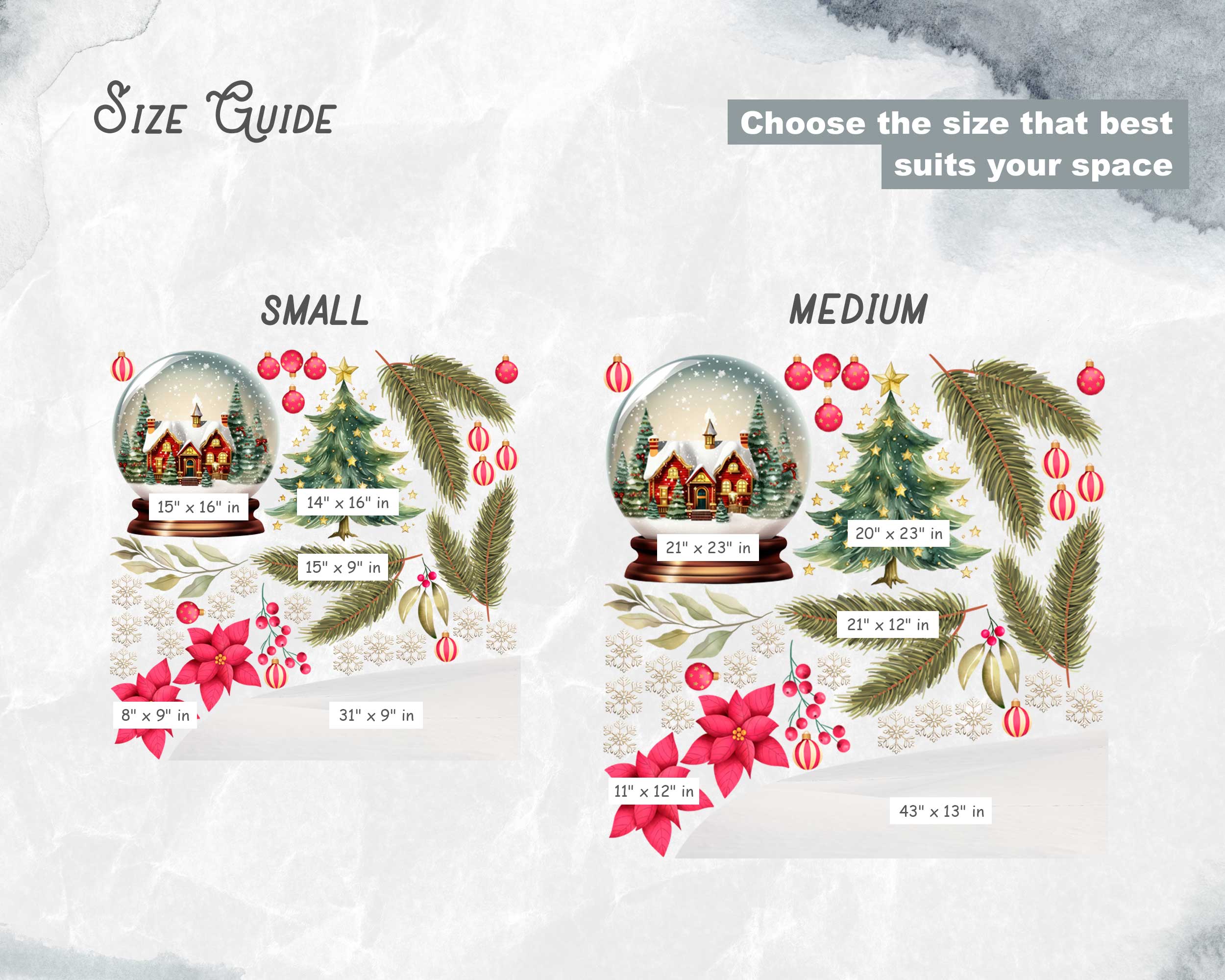Ideal for retail stores, cafés, or salons, these decals create a warm, inviting atmosphere that will attract customers and spread Christmas cheer. The charming snow globe design, paired with festive elements like ornaments and snowflakes, adds a delightful seasonal touch to your shopfront.