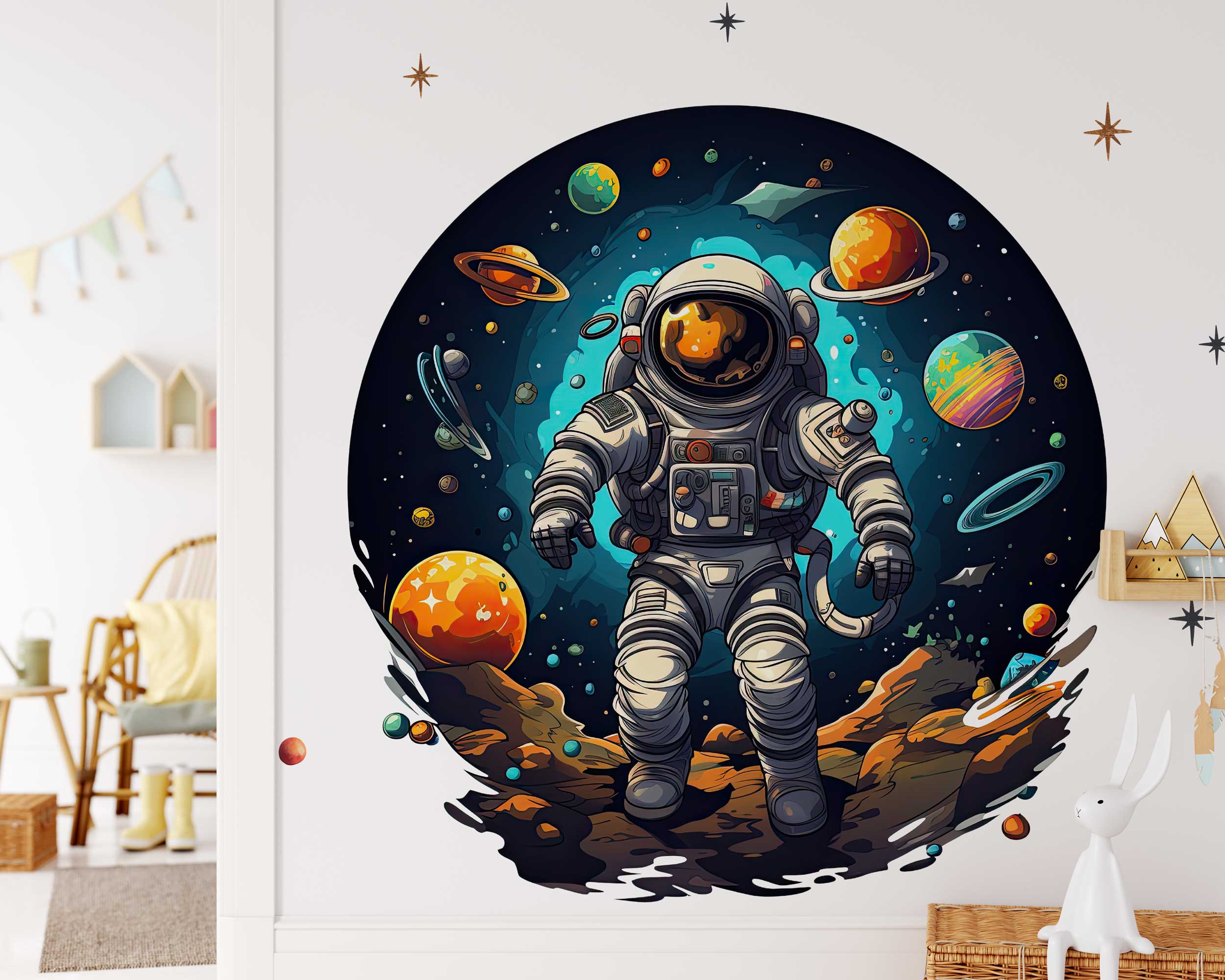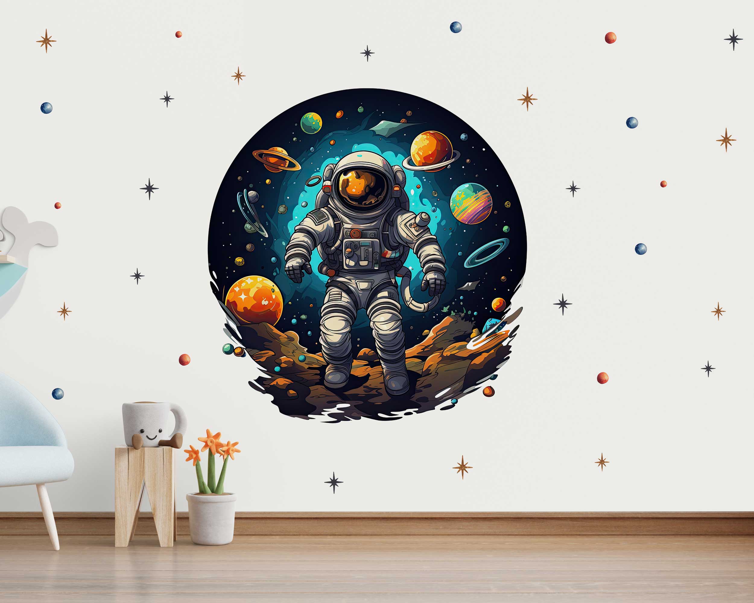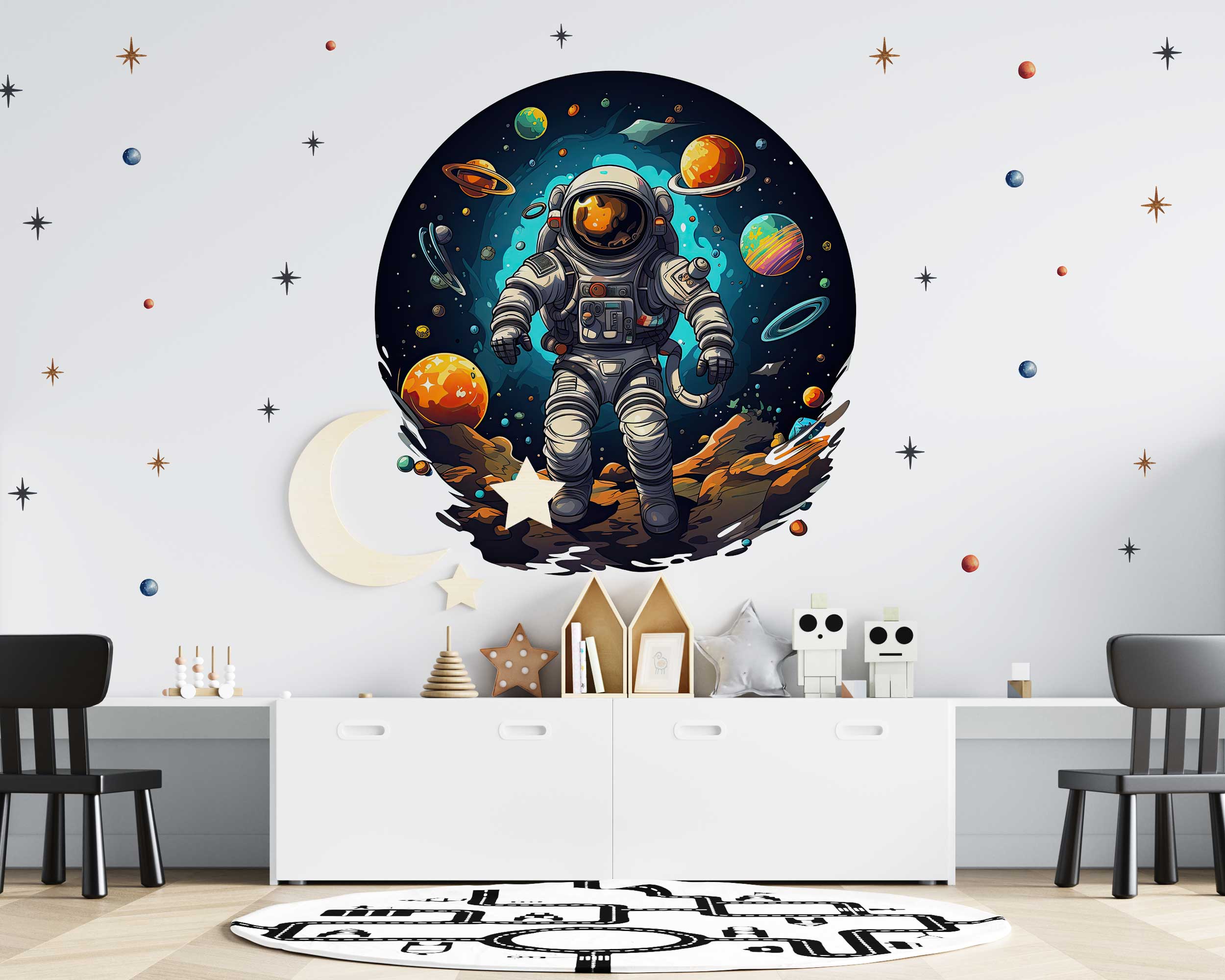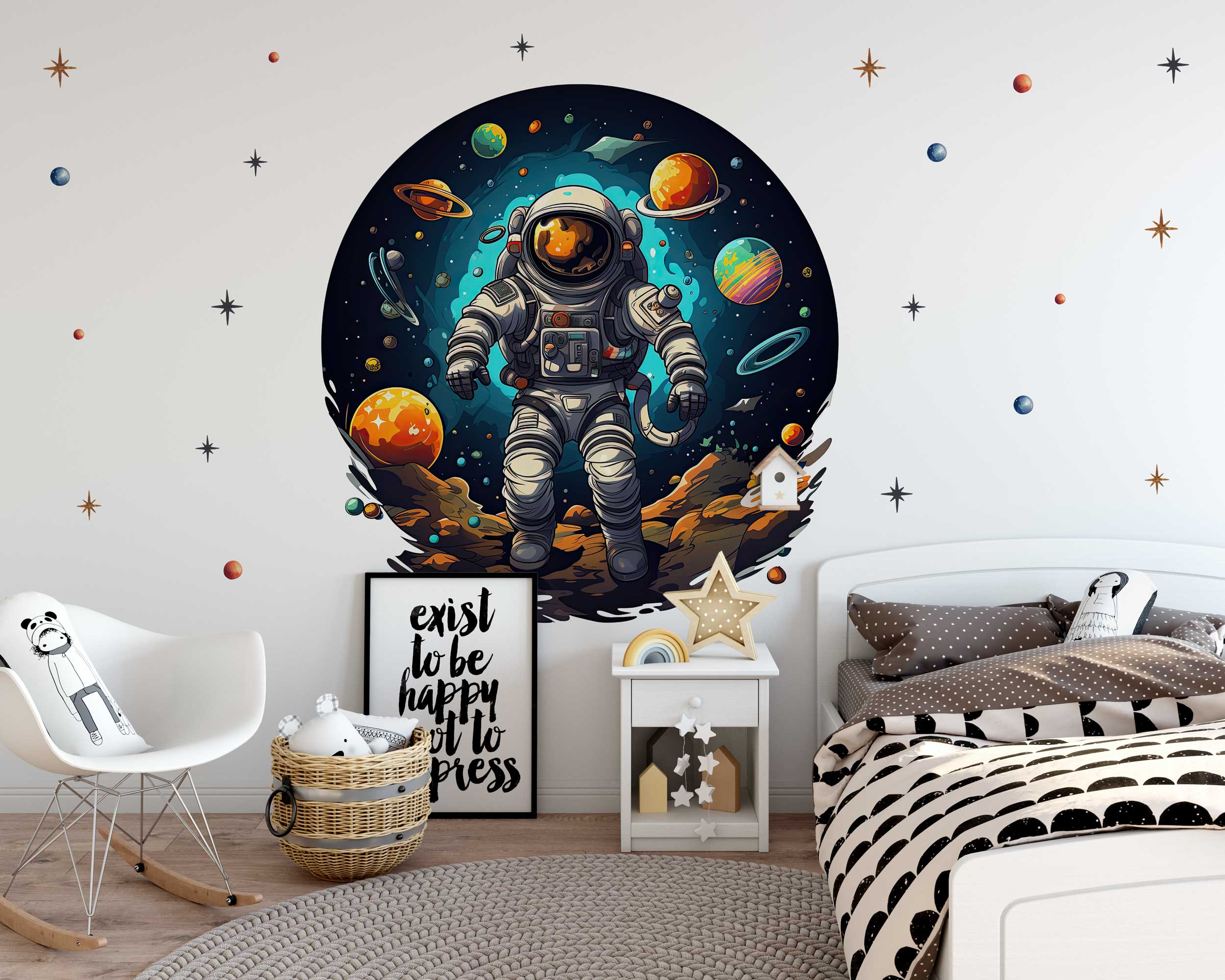 Transform your child’s room into a cosmic adventure with our Cosmic Astronaut Wall Stickers. Featuring a detailed astronaut surrounded by vibrant planets and stars, these decals create an inspiring and adventurous atmosphere in any nursery, playroom, or bedroom. Made from premium fabric with non-toxic inks, these wall stickers are safe for children and easy to apply and reposition, making them ideal for renter-friendly decor. Turn any room into a galactic playground with these captivating and educational wall decals.