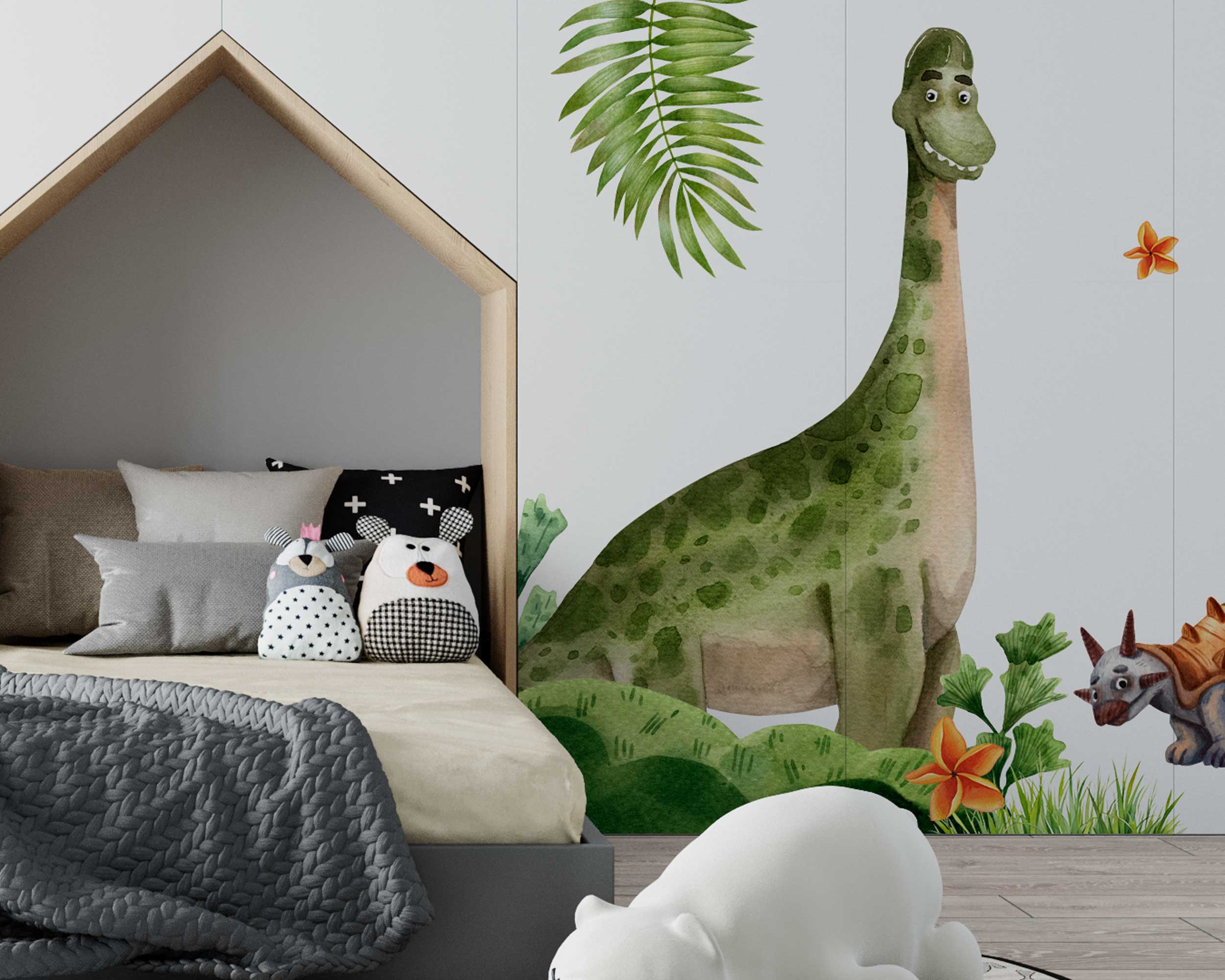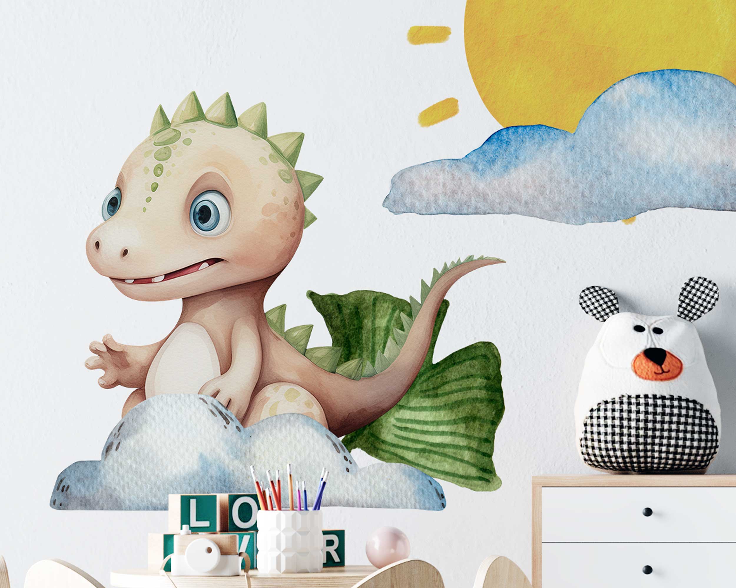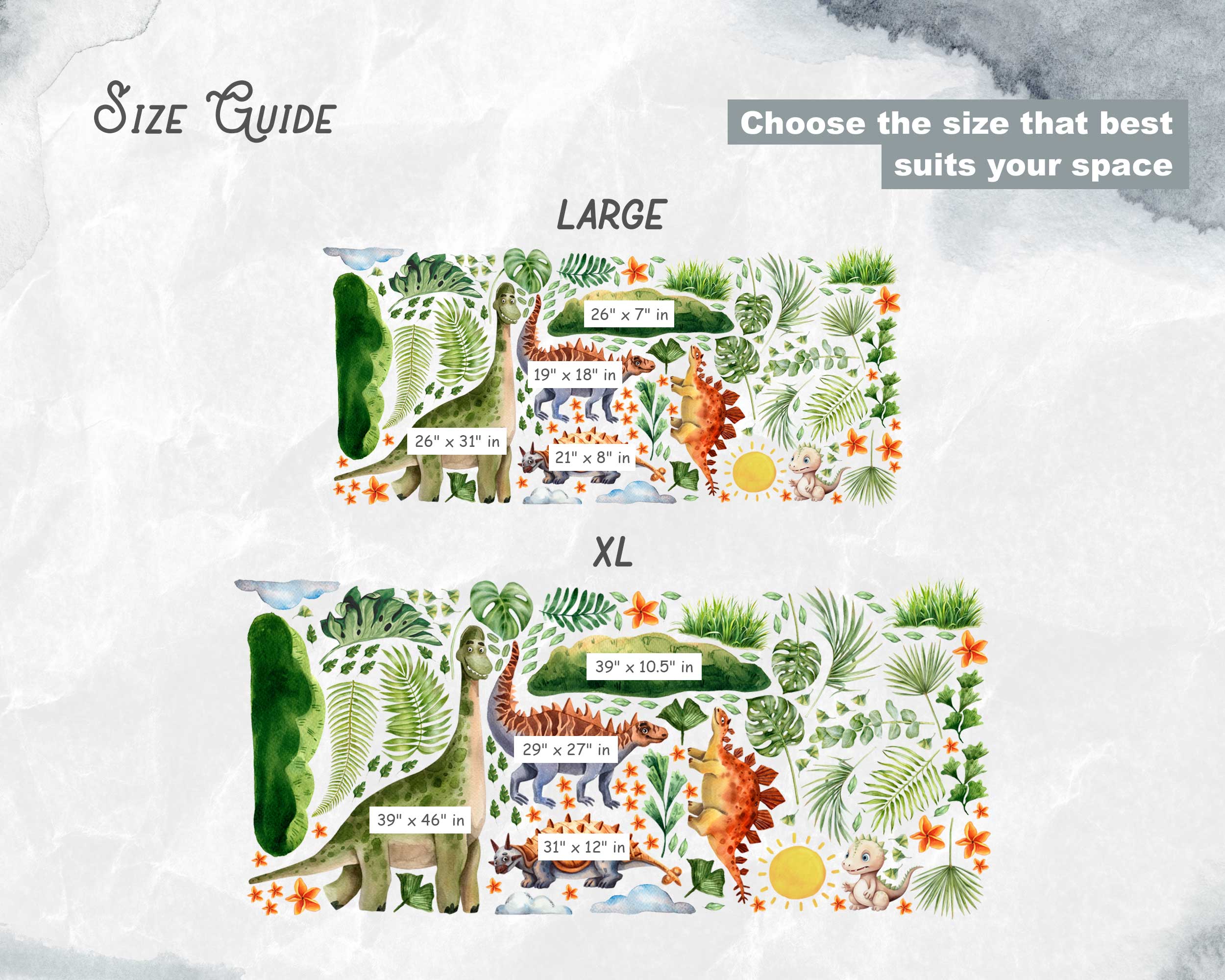 Bring the prehistoric jungle to life in your child’s room with our vibrant dinosaur wall stickers featuring a friendly sun and lush greenery. These colorful and playful wall decals are perfect for nurseries, playrooms, or kids’ bedrooms, creating a fun and imaginative atmosphere. The design includes a variety of dinosaurs, tropical leaves, and a smiling sun, making it an ideal décor choice for young adventurers.