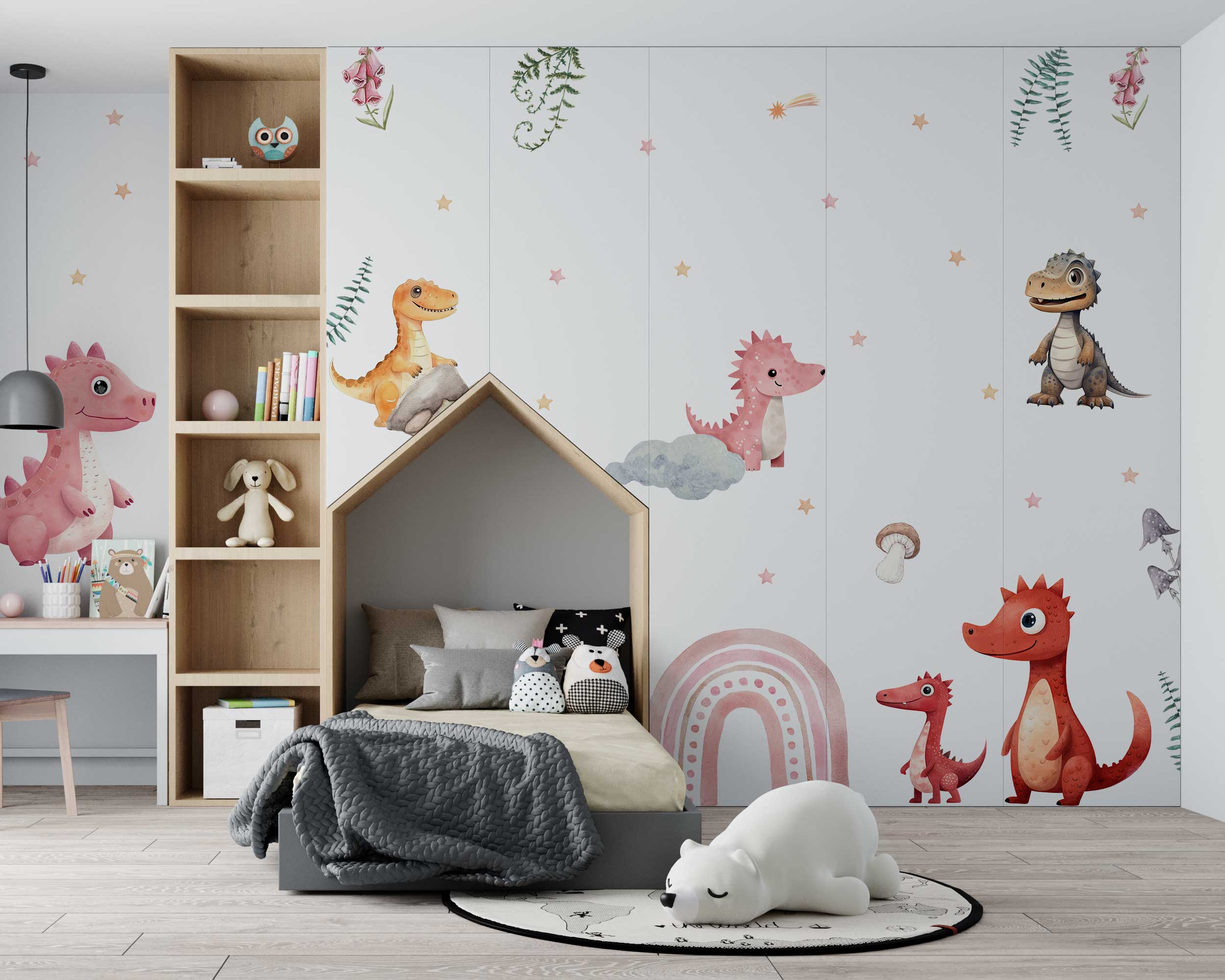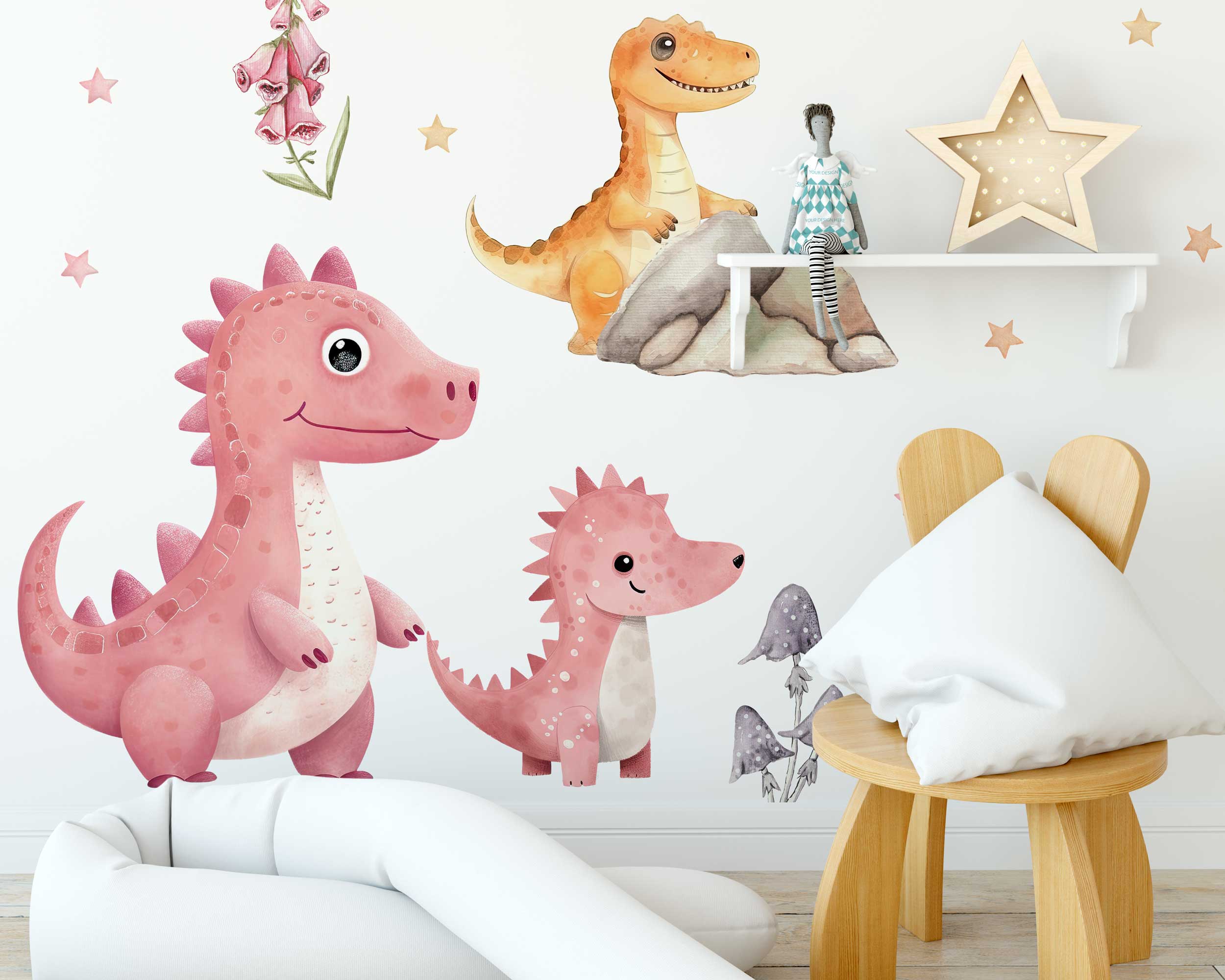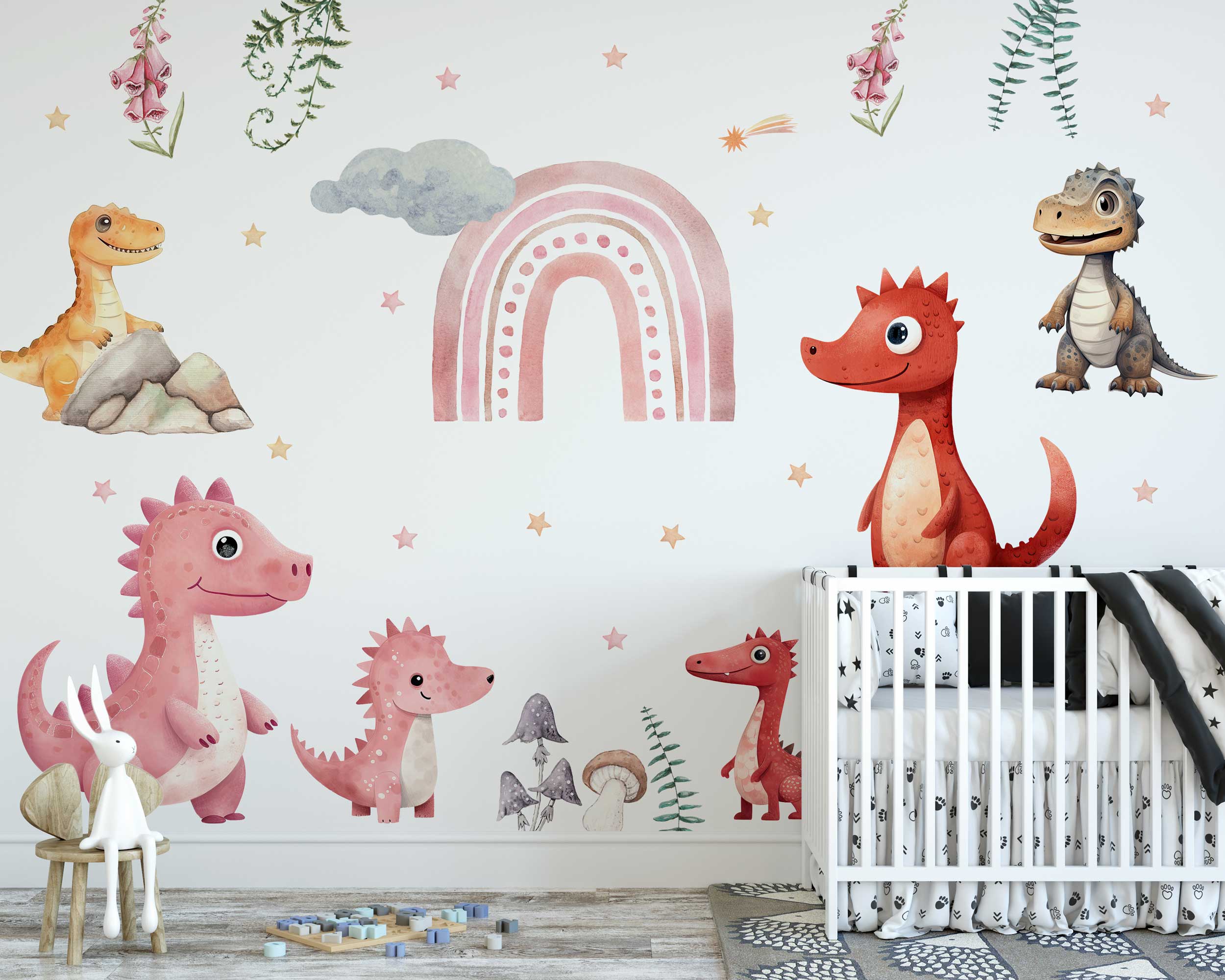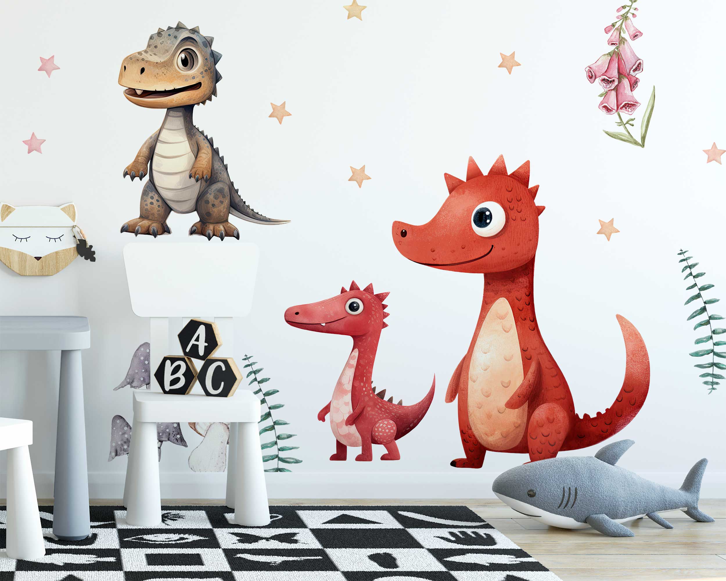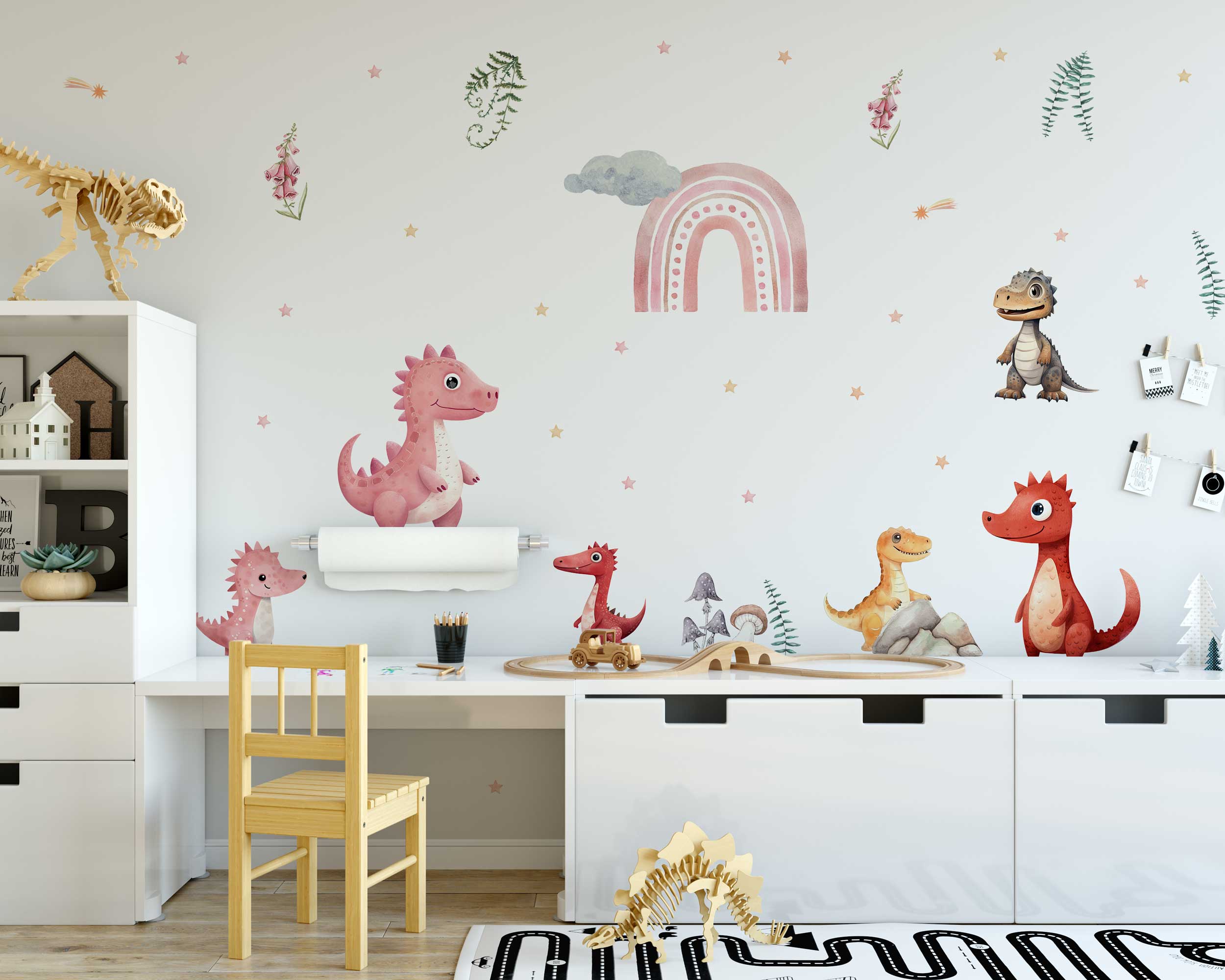 These dinosaur wall stickers do more than just decorate; they also serve as an engaging educational tool. Children can learn about different types of dinosaurs, fostering a love for learning and natural history through playful art.