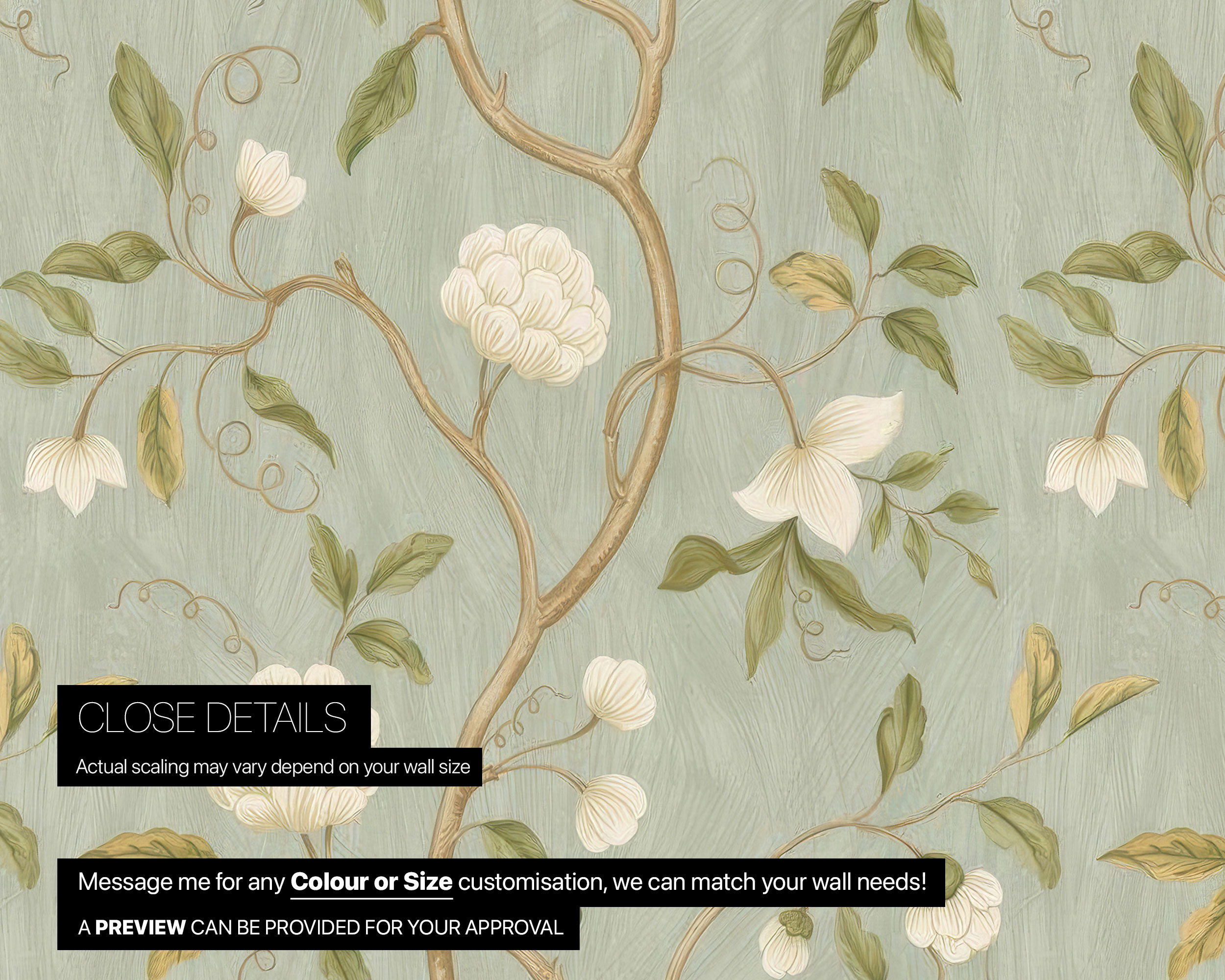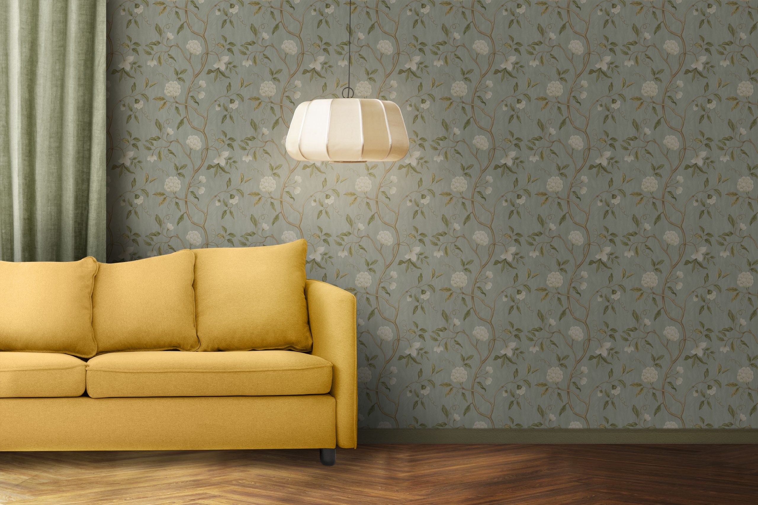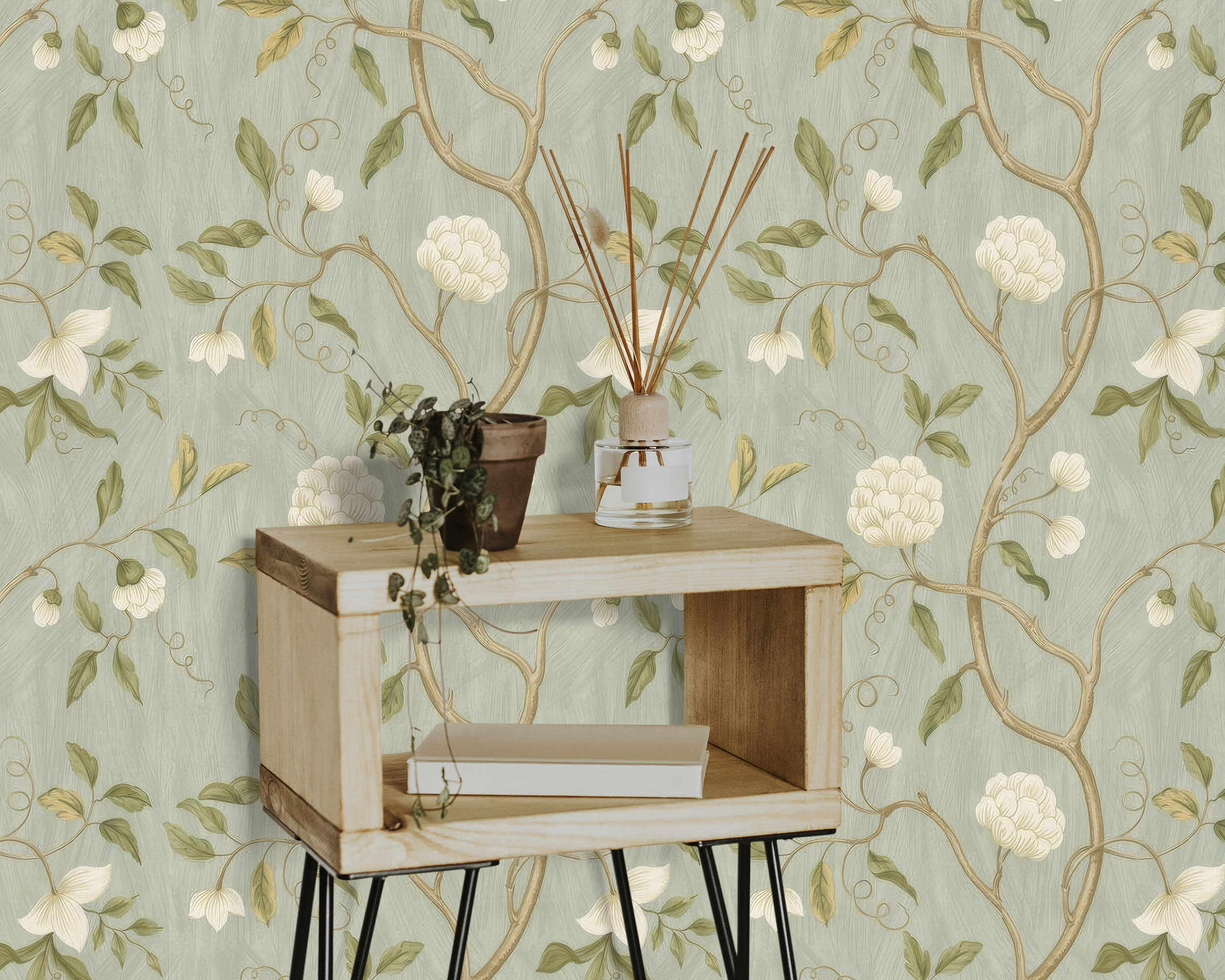 Floral Aqua and Gold Peel & Stick Removable Wallpaper – Elegant Decor for Every Space