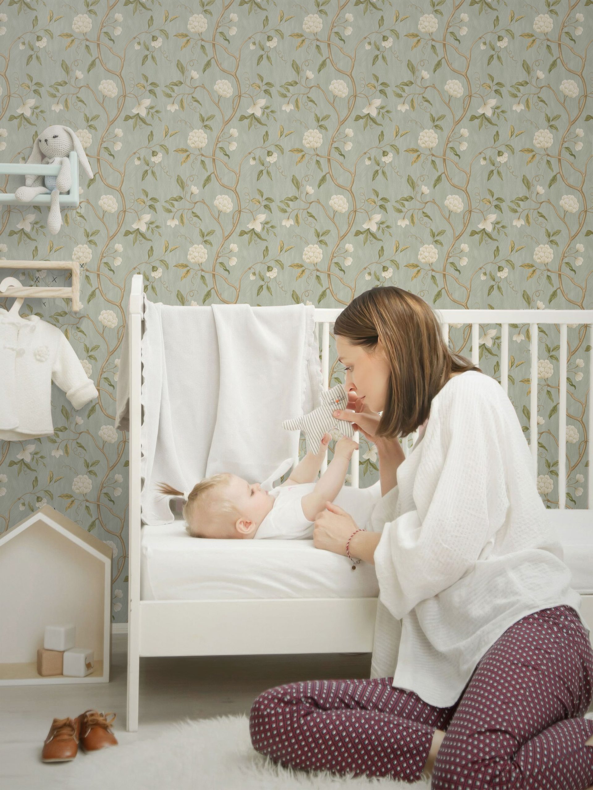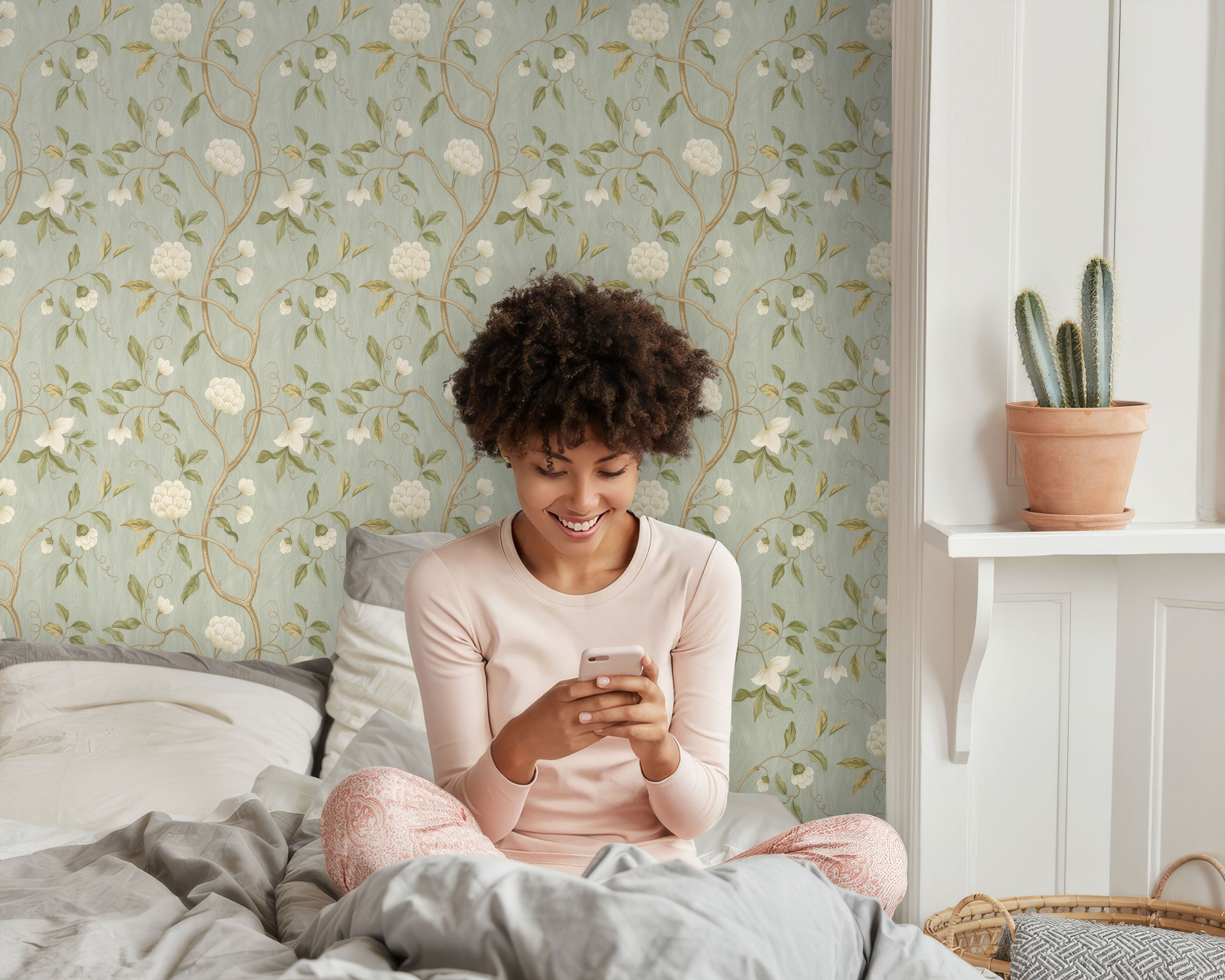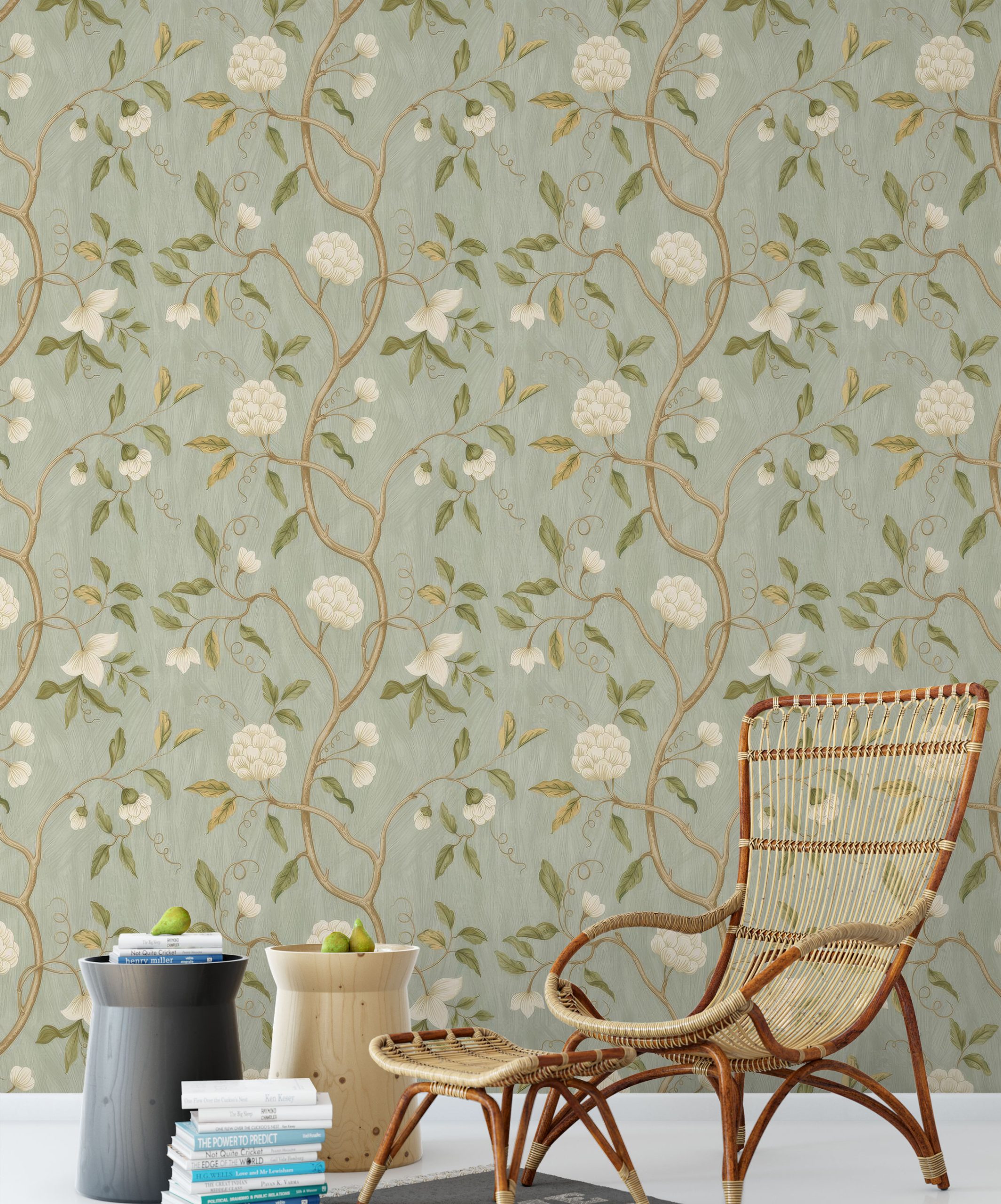 Floral Aqua and Gold Peel & Stick Removable Wallpaper – Elegant Decor for Every Space