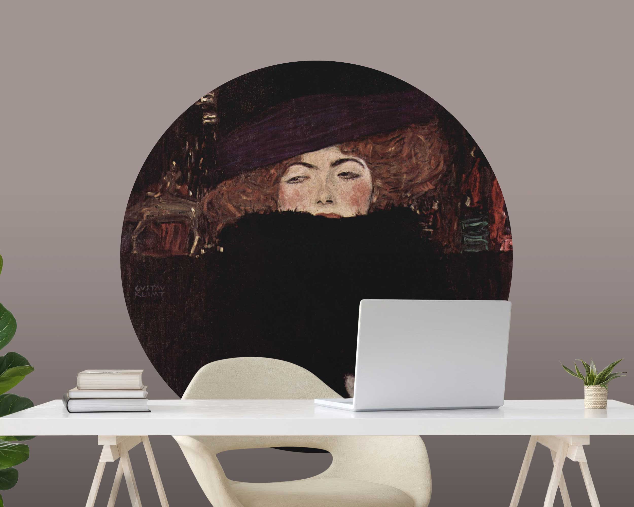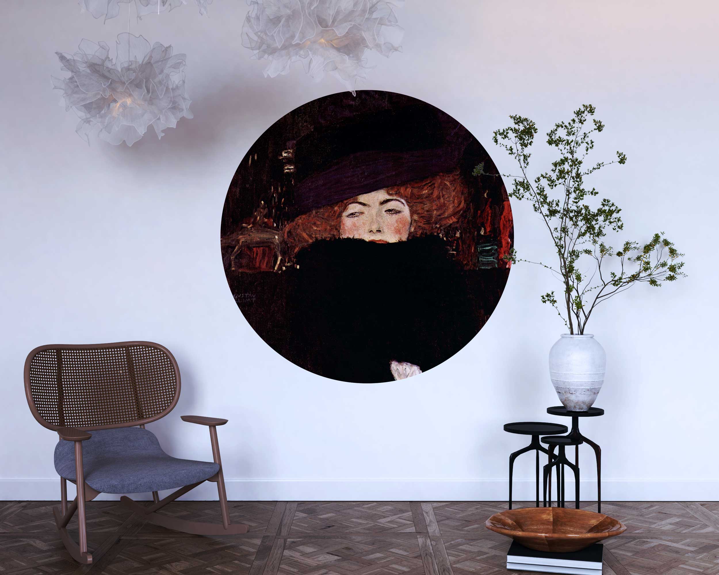 Bring the timeless elegance of Gustav Klimt’s artwork into your home with this “Lady with Hat and Feather Boa” circle wall sticker. Featuring the iconic mysterious portrait, this decal adds a sophisticated, artistic touch to any room. Whether you place it in your living room, bedroom, or office, this stunning wall art will transform your space into an elegant gallery.