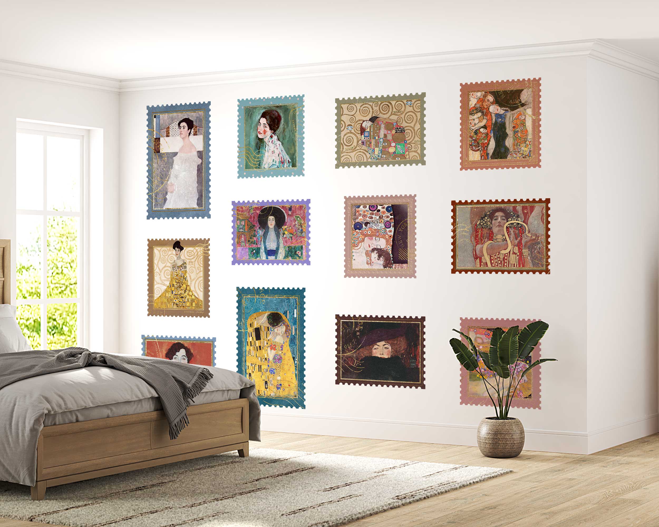 Bring the elegance of Gustav Klimt’s masterpieces into your home with this unique collection of art stamp wall stickers. These removable wall decals feature some of Klimt’s most famous works, designed to look like vintage stamps, perfect for adding a touch of sophistication to any room. Each piece is intricately detailed to capture the essence…