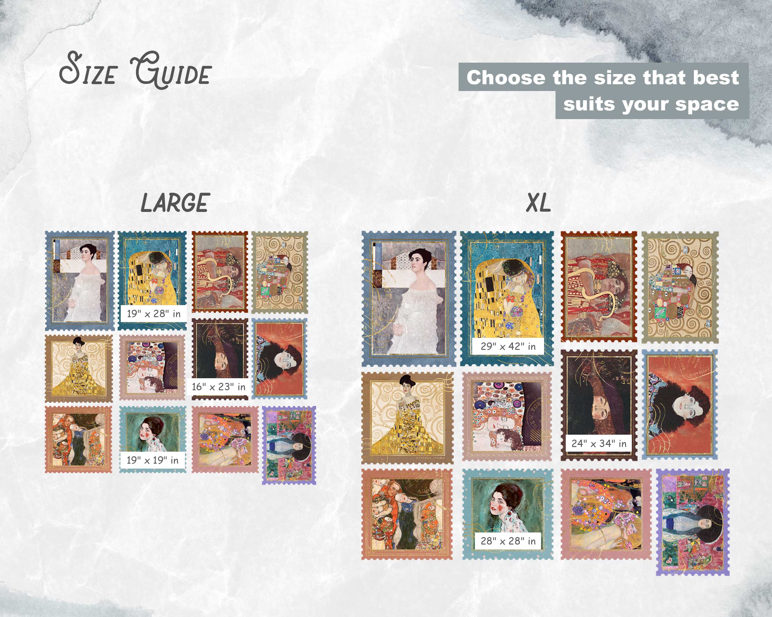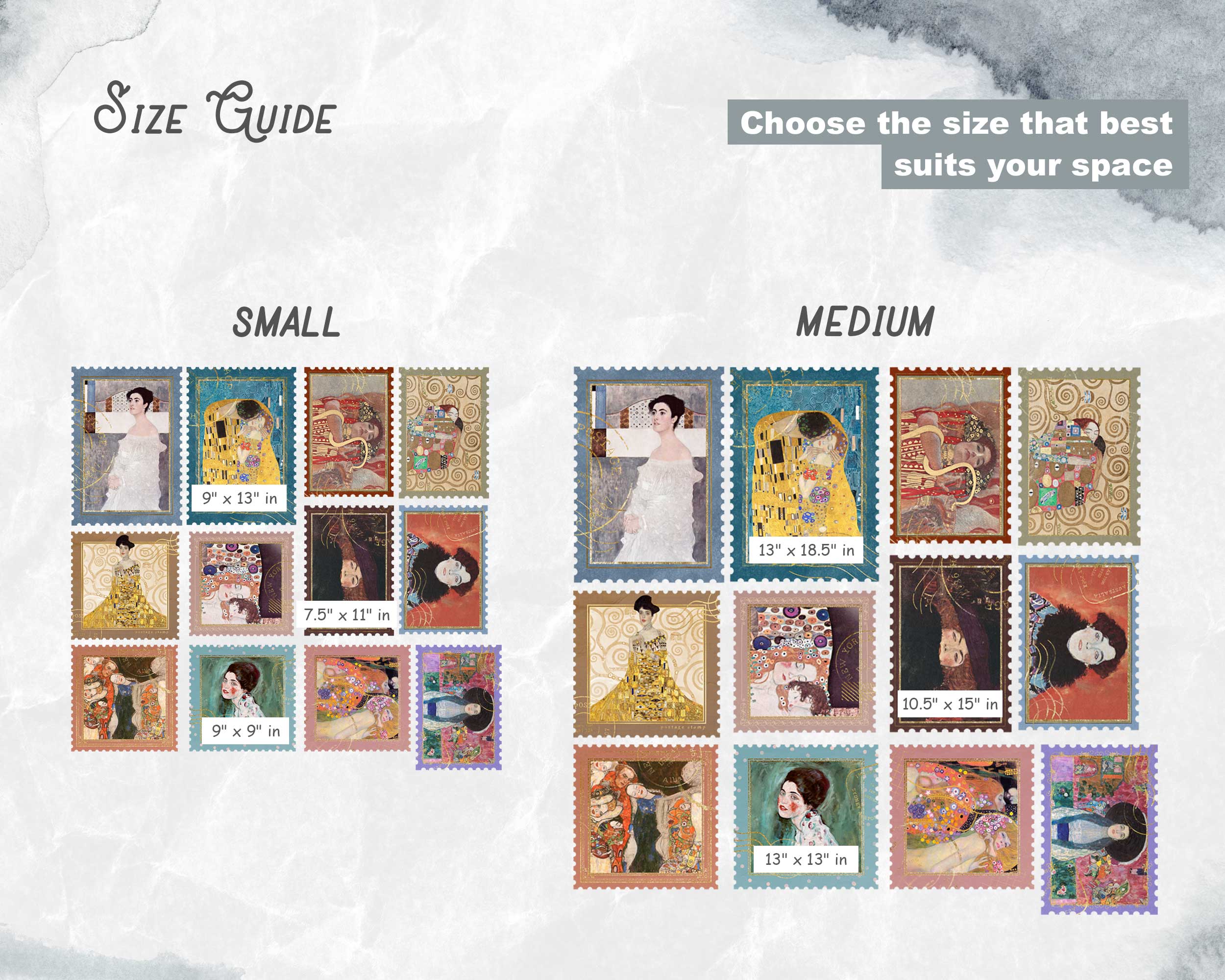 Ideal for living rooms, bedrooms, or creative spaces, these stickers are easy to apply and remove, allowing you to redecorate with ease. Available in multiple sizes, you can create a gallery of art stamps that fits perfectly with your interior décor. Whether you’re a Klimt enthusiast or simply looking to enhance your space with classic art, this collection is a stunning choice.