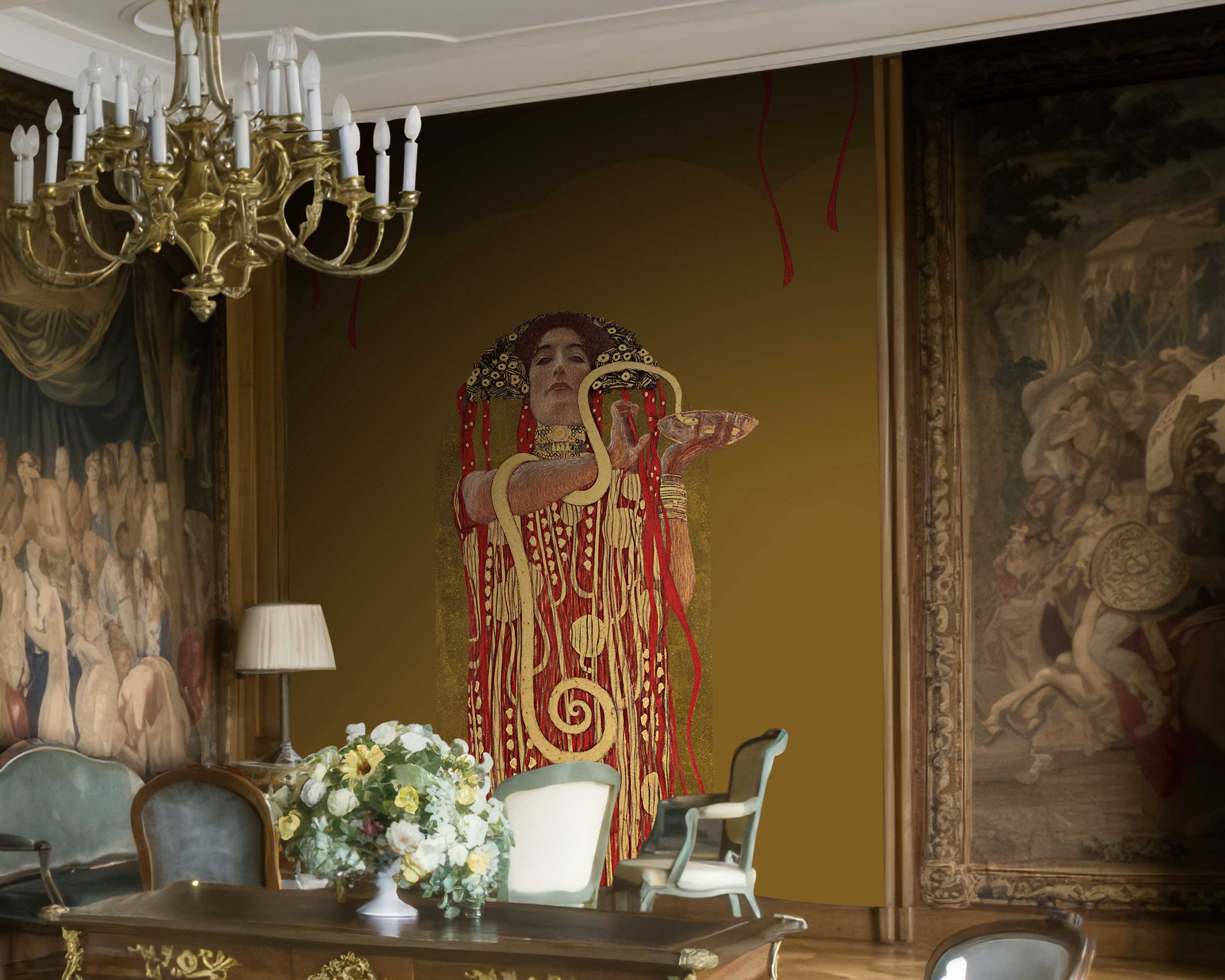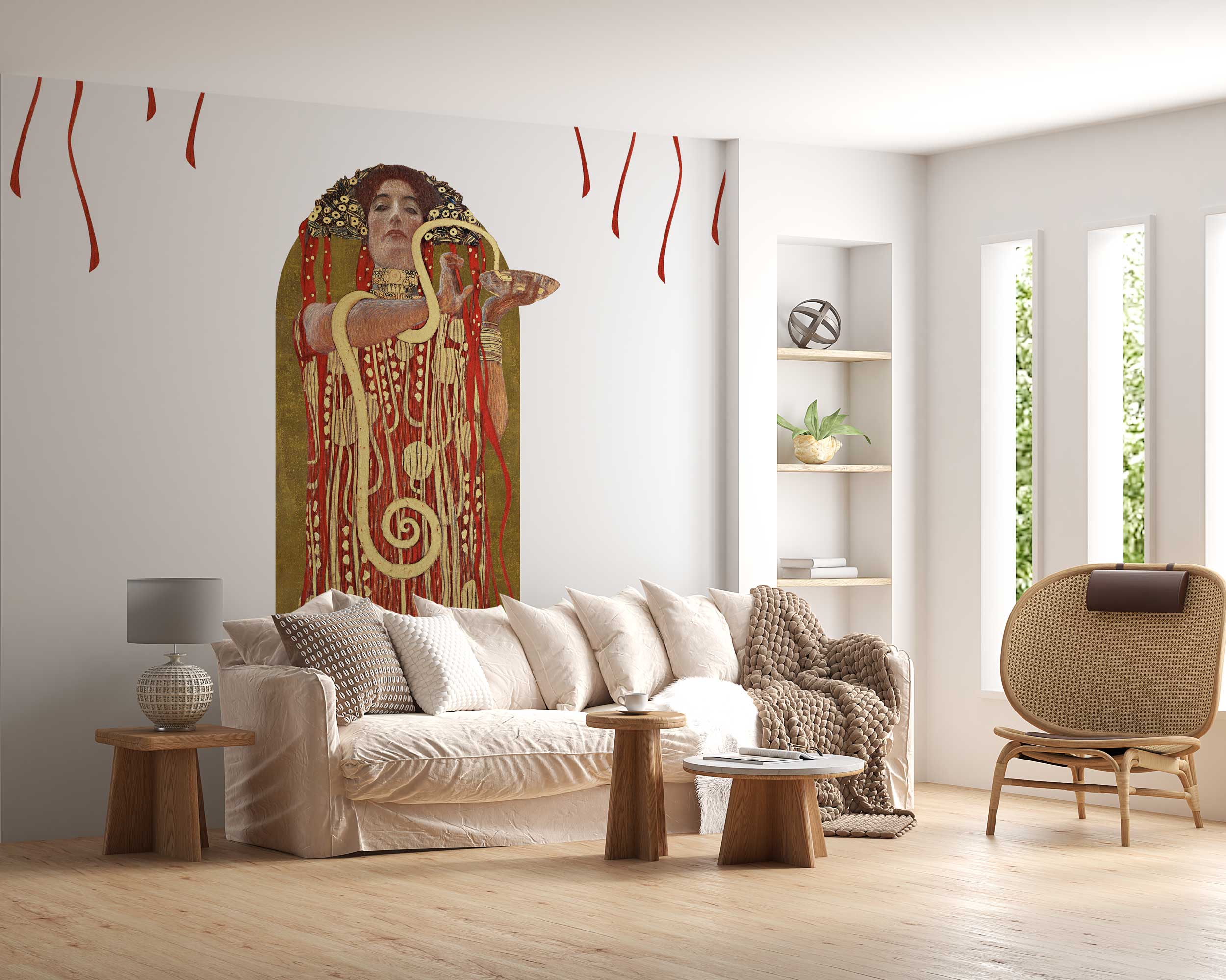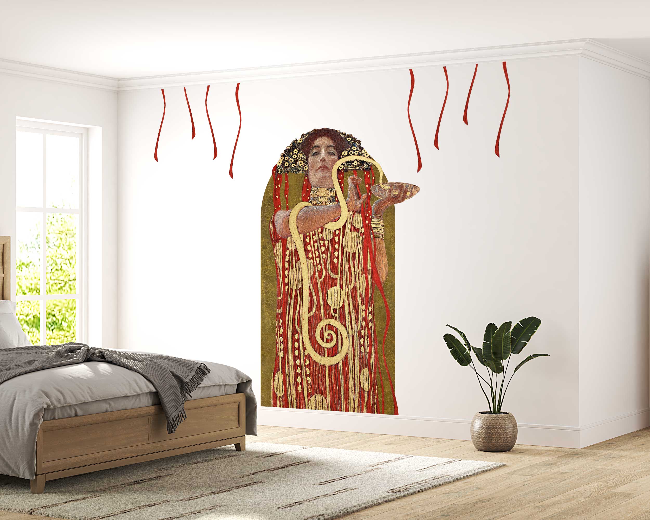 Gustav Klimt Hygieia Arch Wall Sticker Mural – Iconic Art Nouveau Red and Gold Portrait for Bedroom, Living Room, or Office Decor