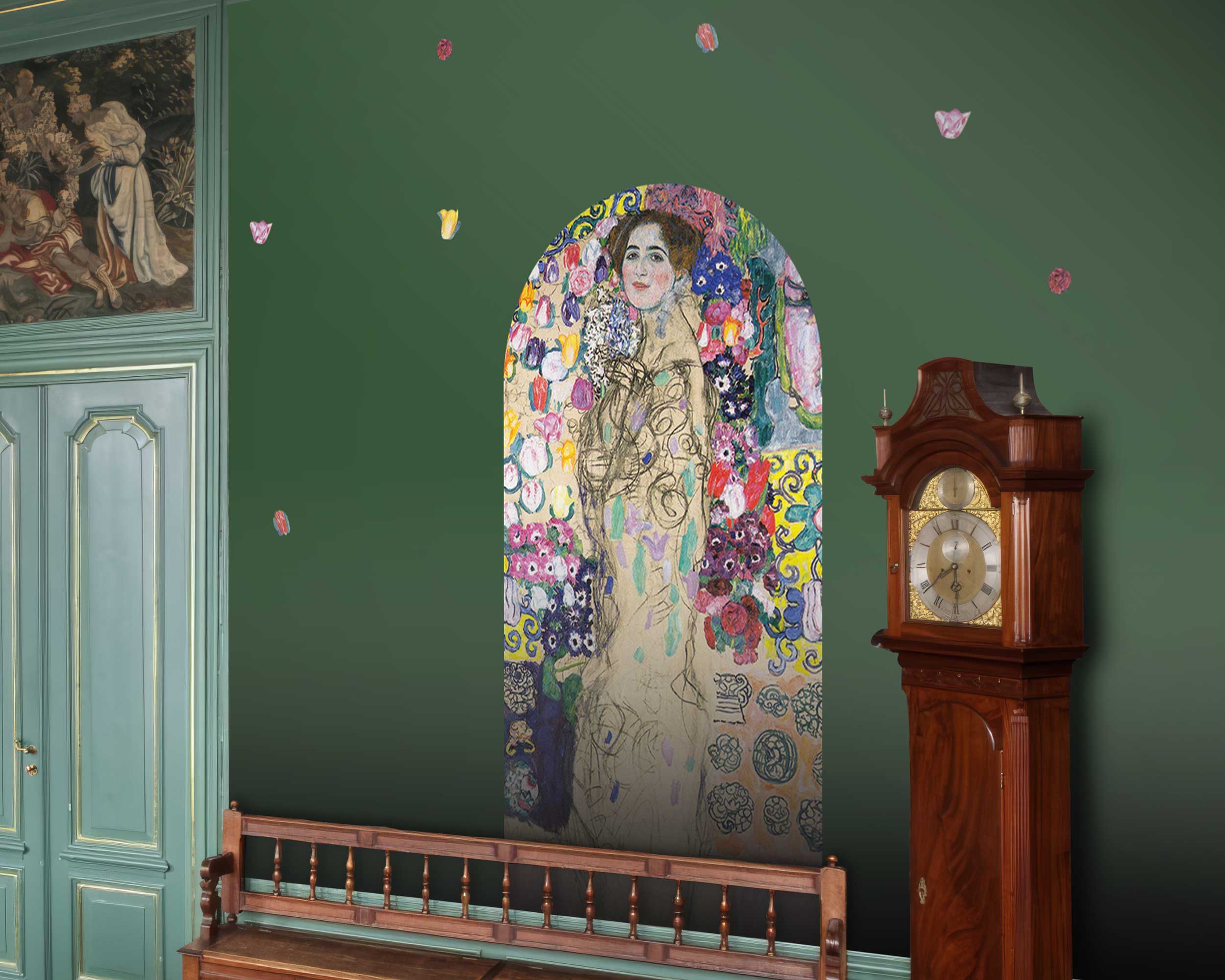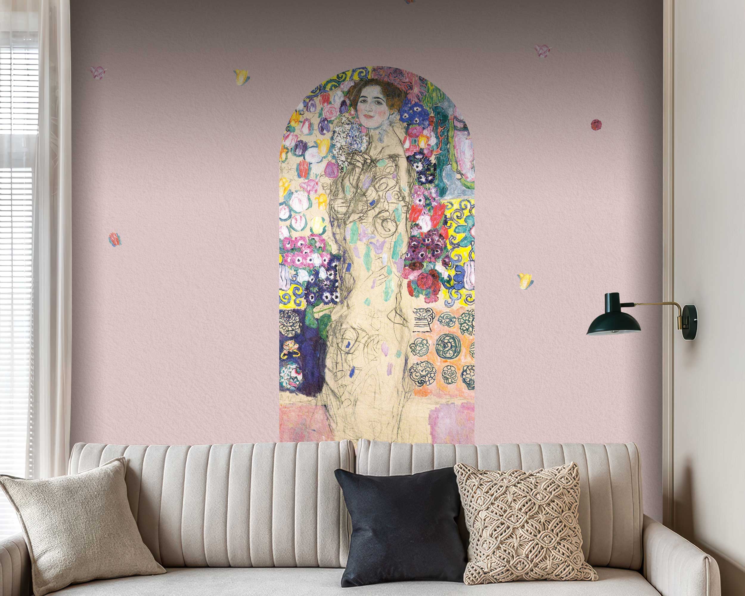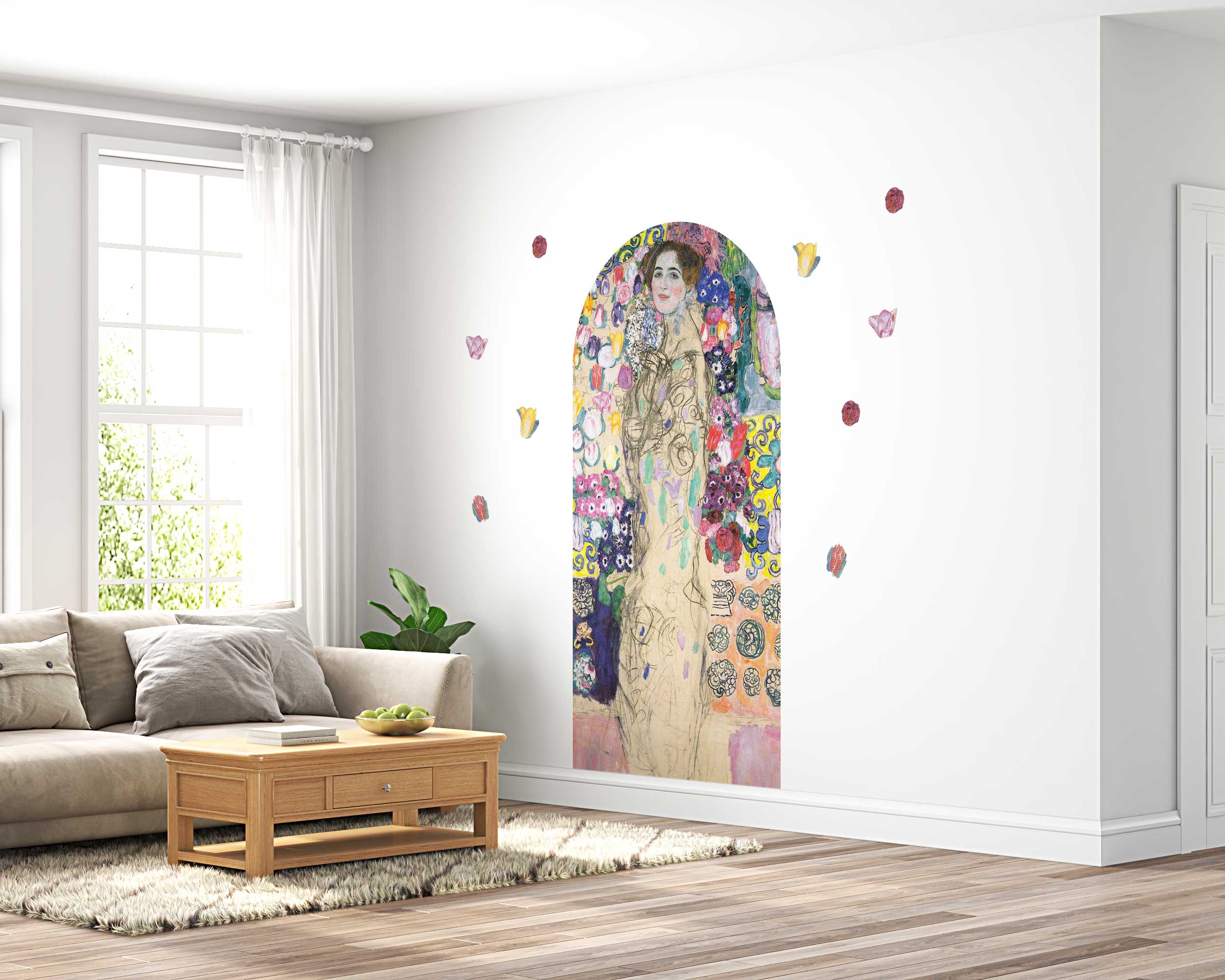 Gustav Klimt Portrait of Maria Munk Arch Wall Sticker – Elegant Removable Vinyl Art Mural for Living Room, Bedroom, or Office Decor