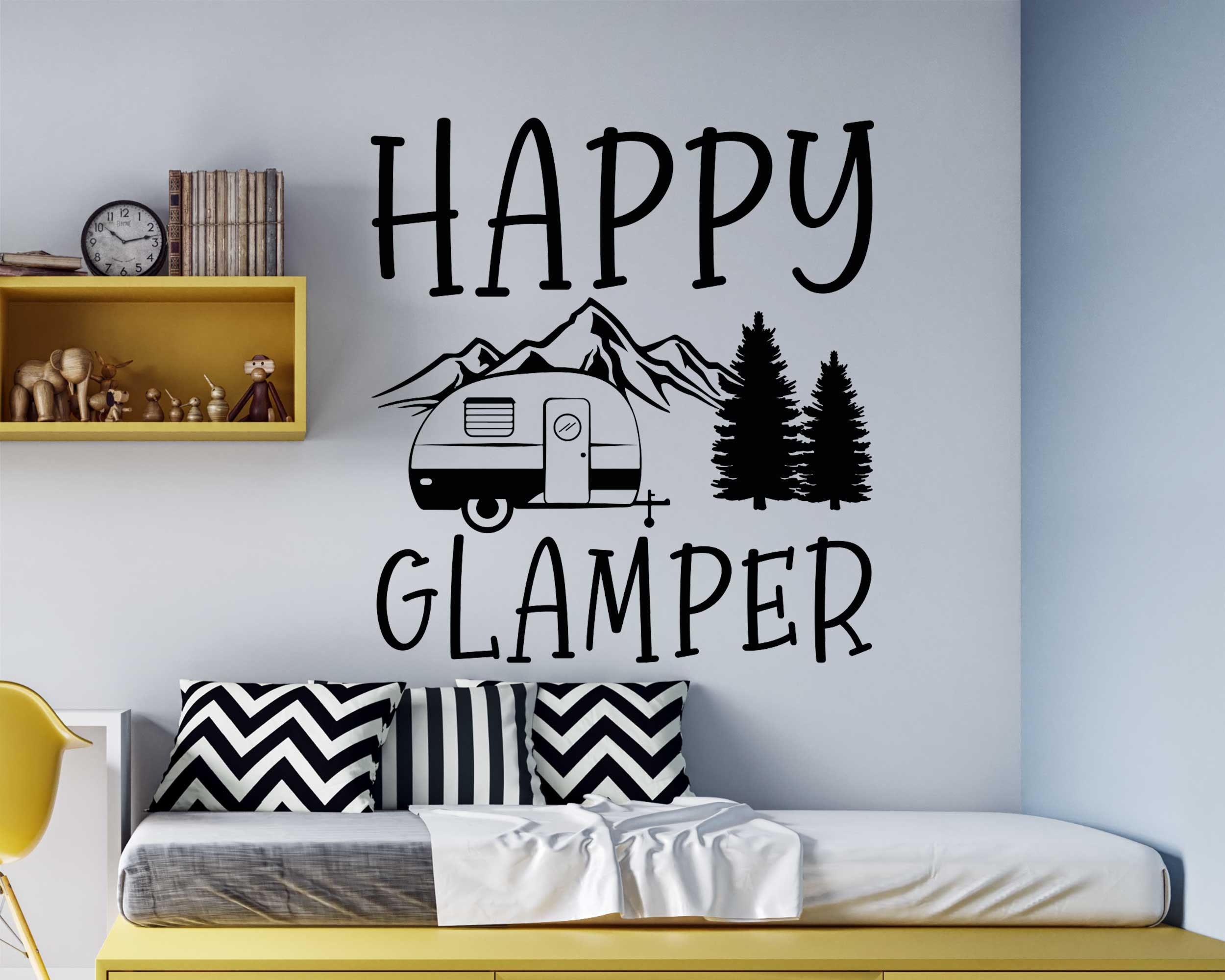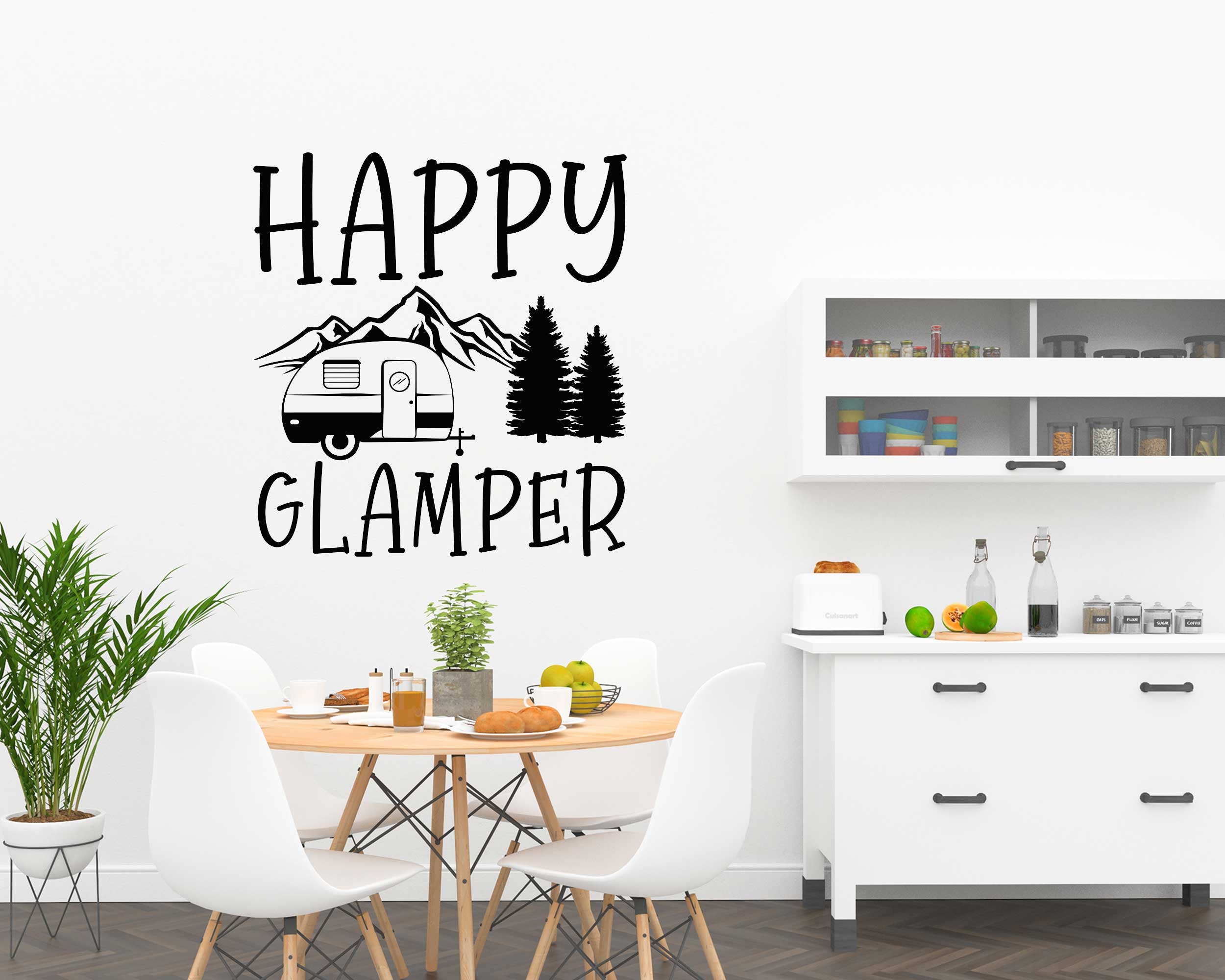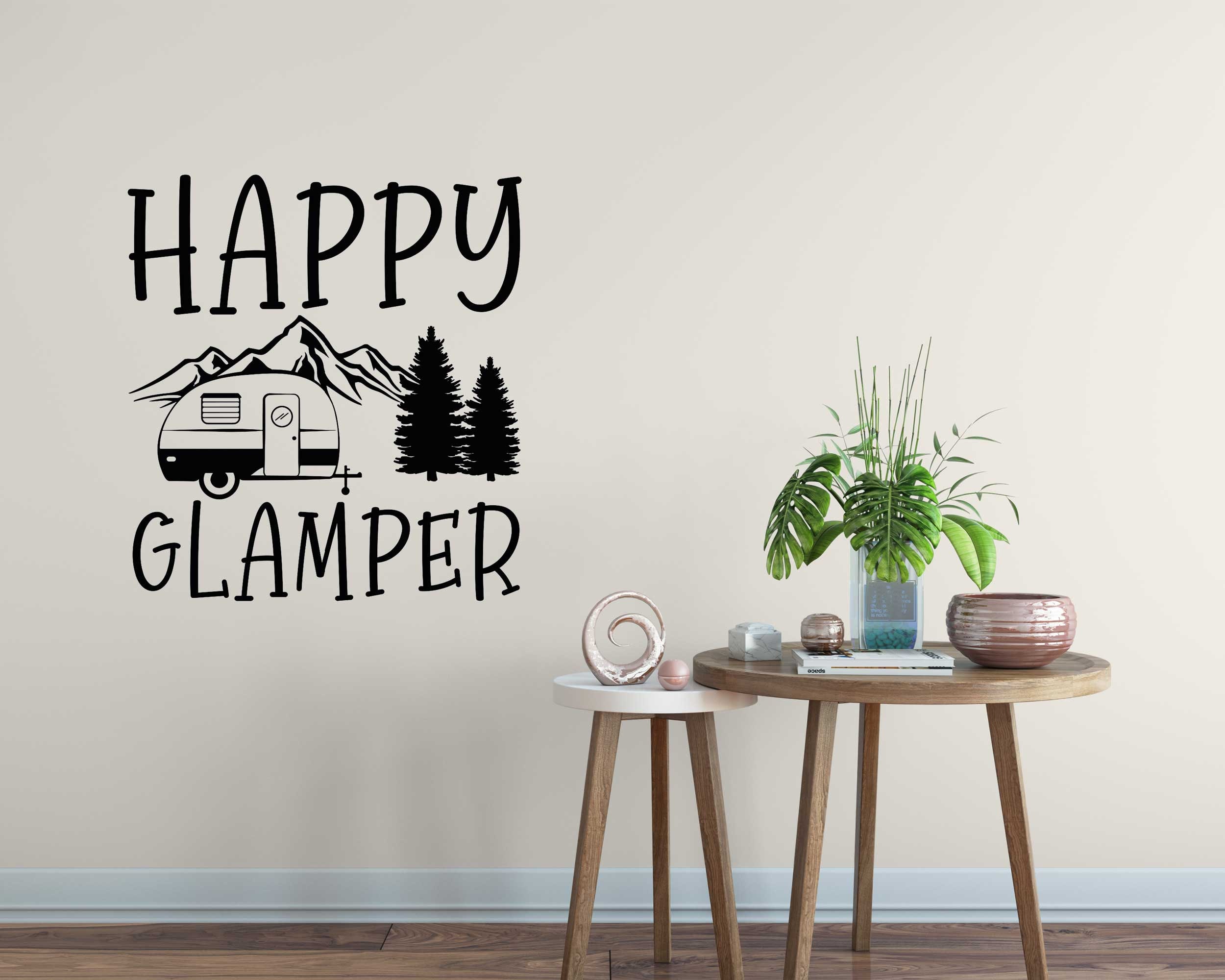 Transform your space into a haven of positivity with our Happy Glamper Inspirational Quote Decal from Visual Decor Treasures! Crafted from premium PVC material, this vibrant vinyl sticker serves as a daily reminder to embrace joy, adventure, and the beauty of the present moment. Perfect for adorning your walls at home or infusing your office space with positivity, this motivational decal features a charming design and uplifting message to inspire and uplift you each day. With its easy application and durable construction, it effortlessly enhances any environment with its radiant energy and encouraging sentiment. Add a touch of happiness to your decor and let your space reflect your inner glamper spirit with Visual Decor Treasures.