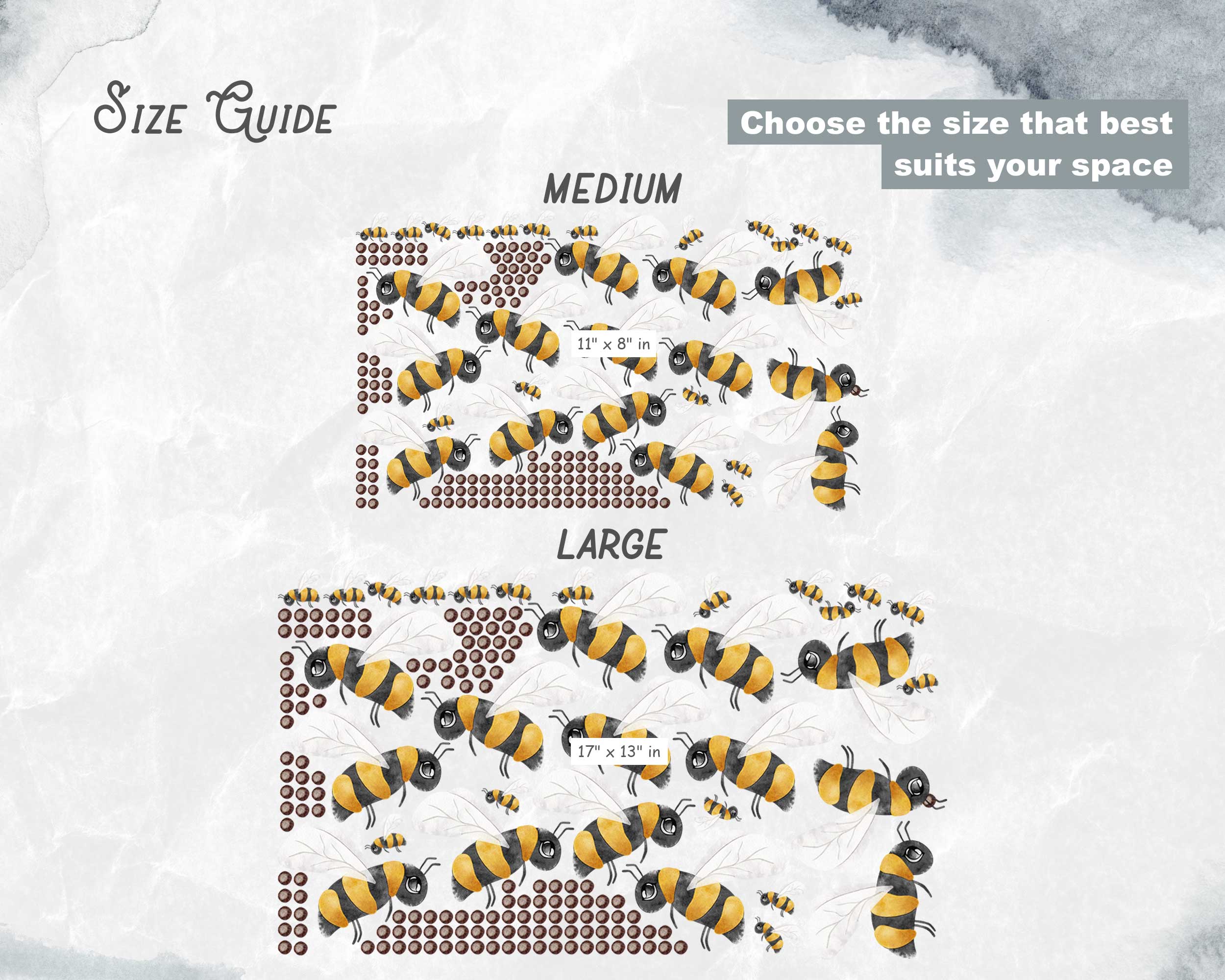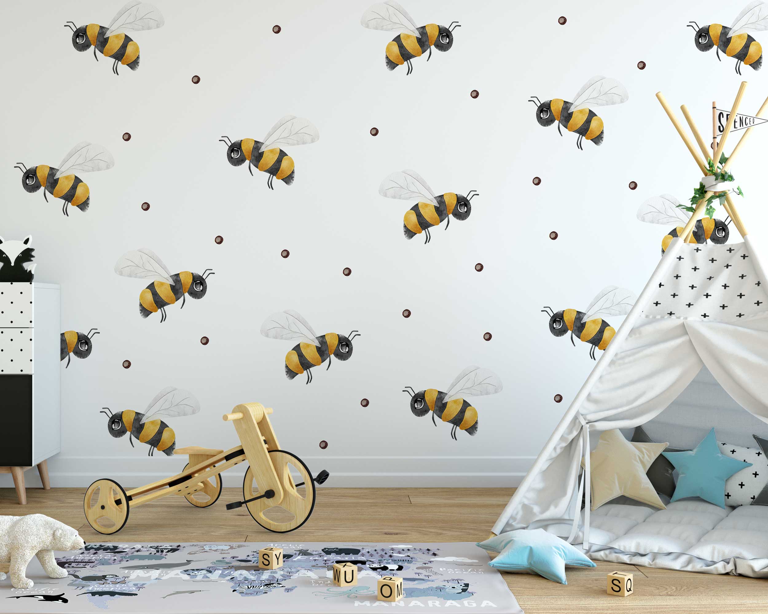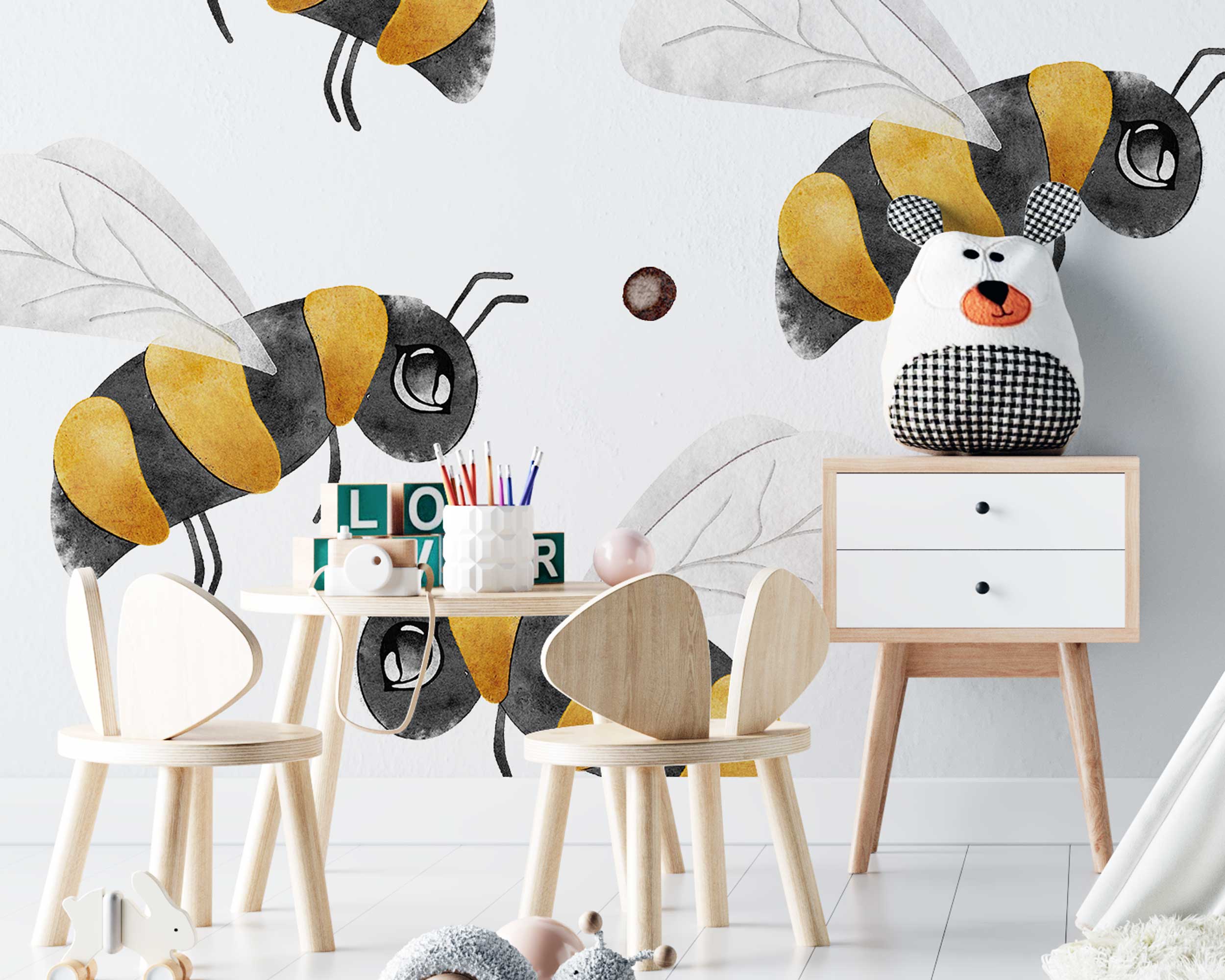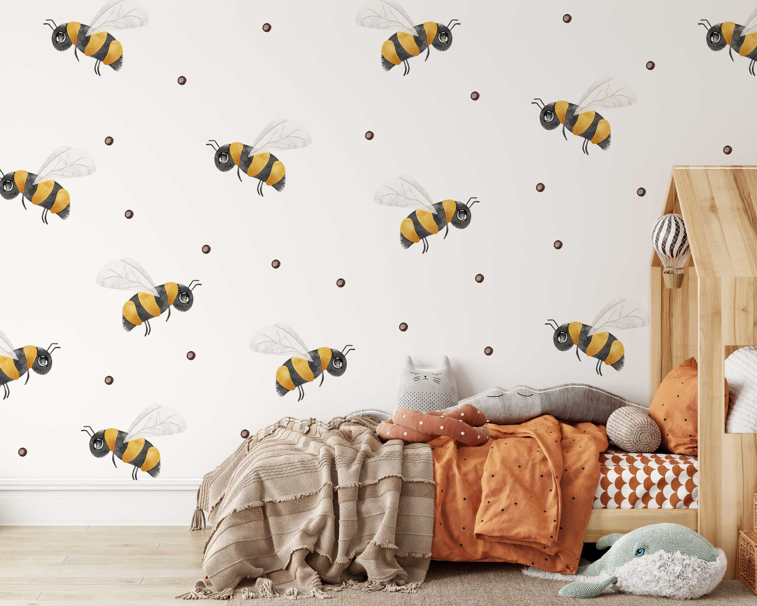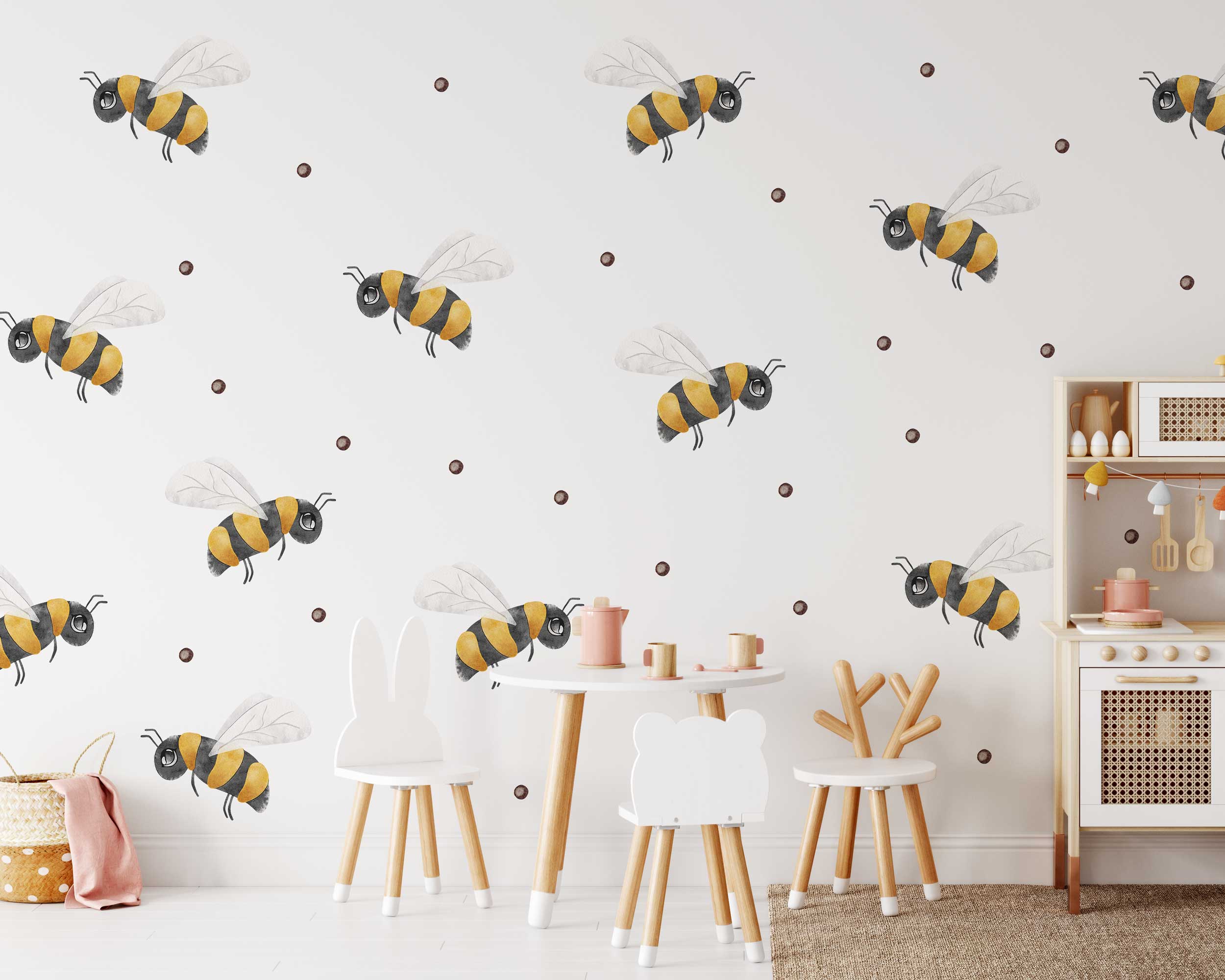 Add a touch of nature and whimsy to your child’s room with these adorable honeybee wall stickers! Featuring cheerful bumblebees buzzing around polka dots, these stickers are perfect for creating a playful atmosphere in any kids’ space. The stickers are easy to apply, remove, and reposition, making them ideal for creating your own unique design. Whether you’re decorating a nursery, playroom, or bedroom, these honeybee decals will bring a smile to your little one’s face. Available in various sizes to suit your space.