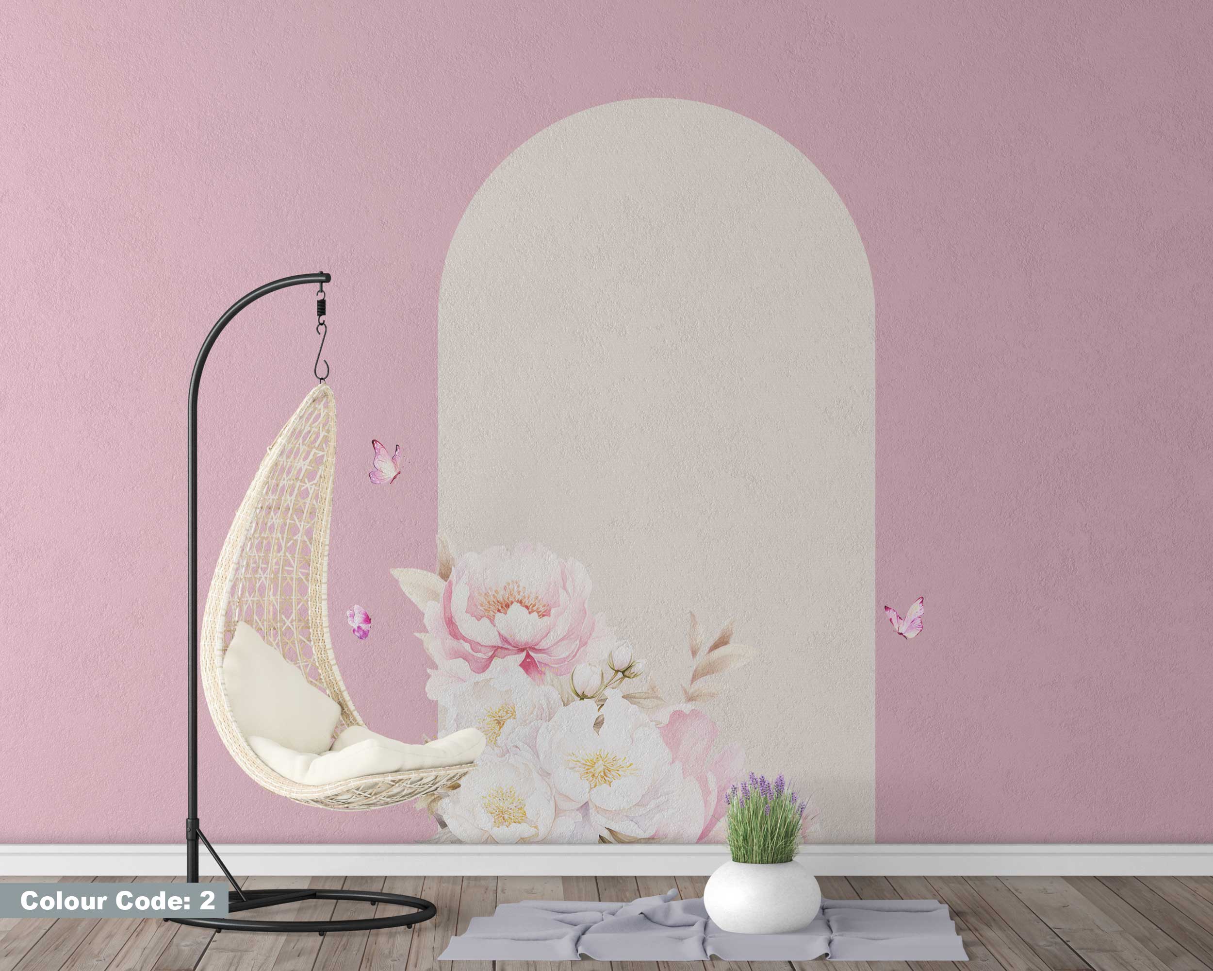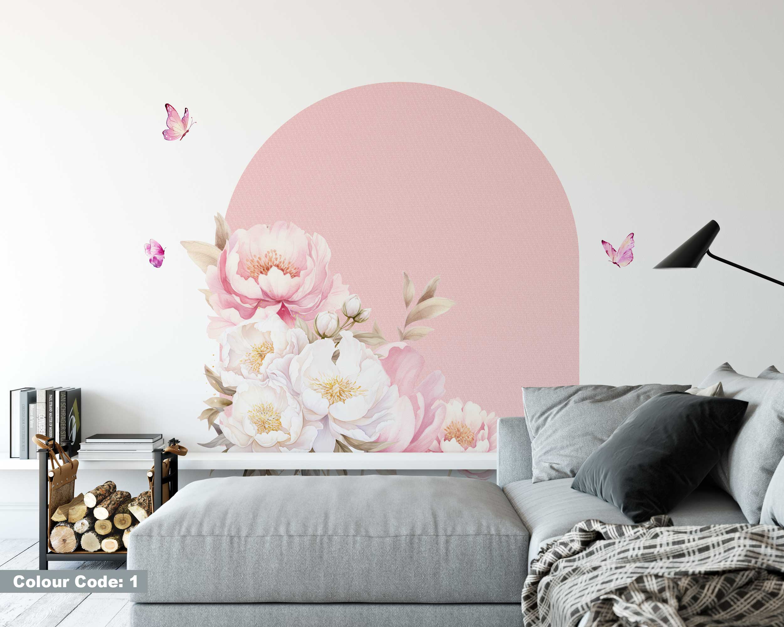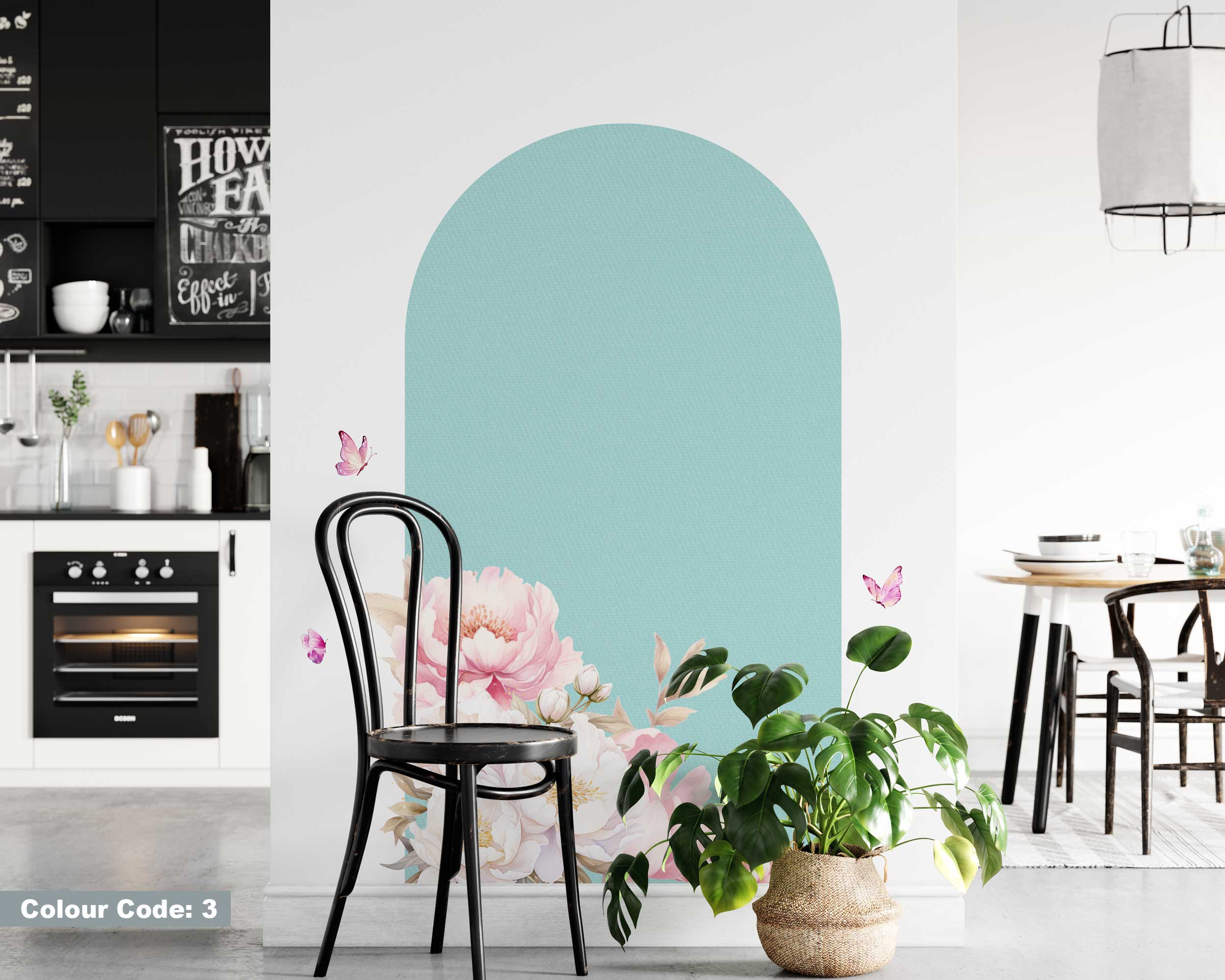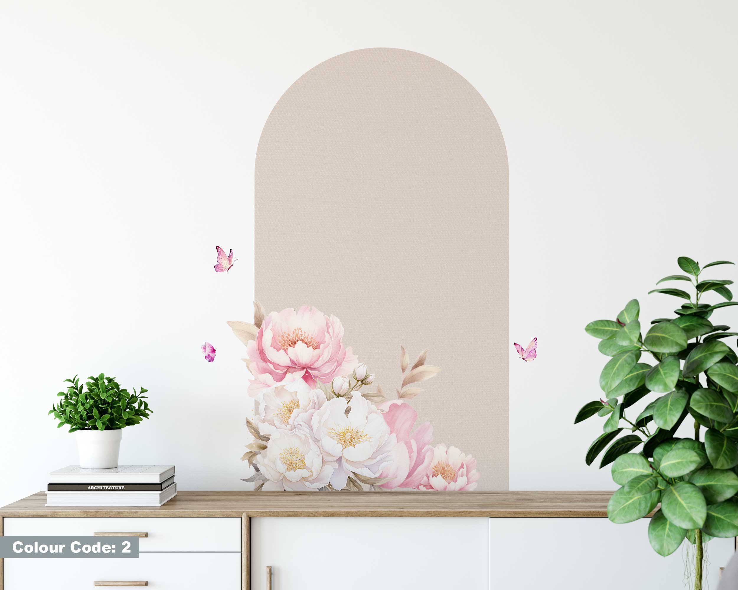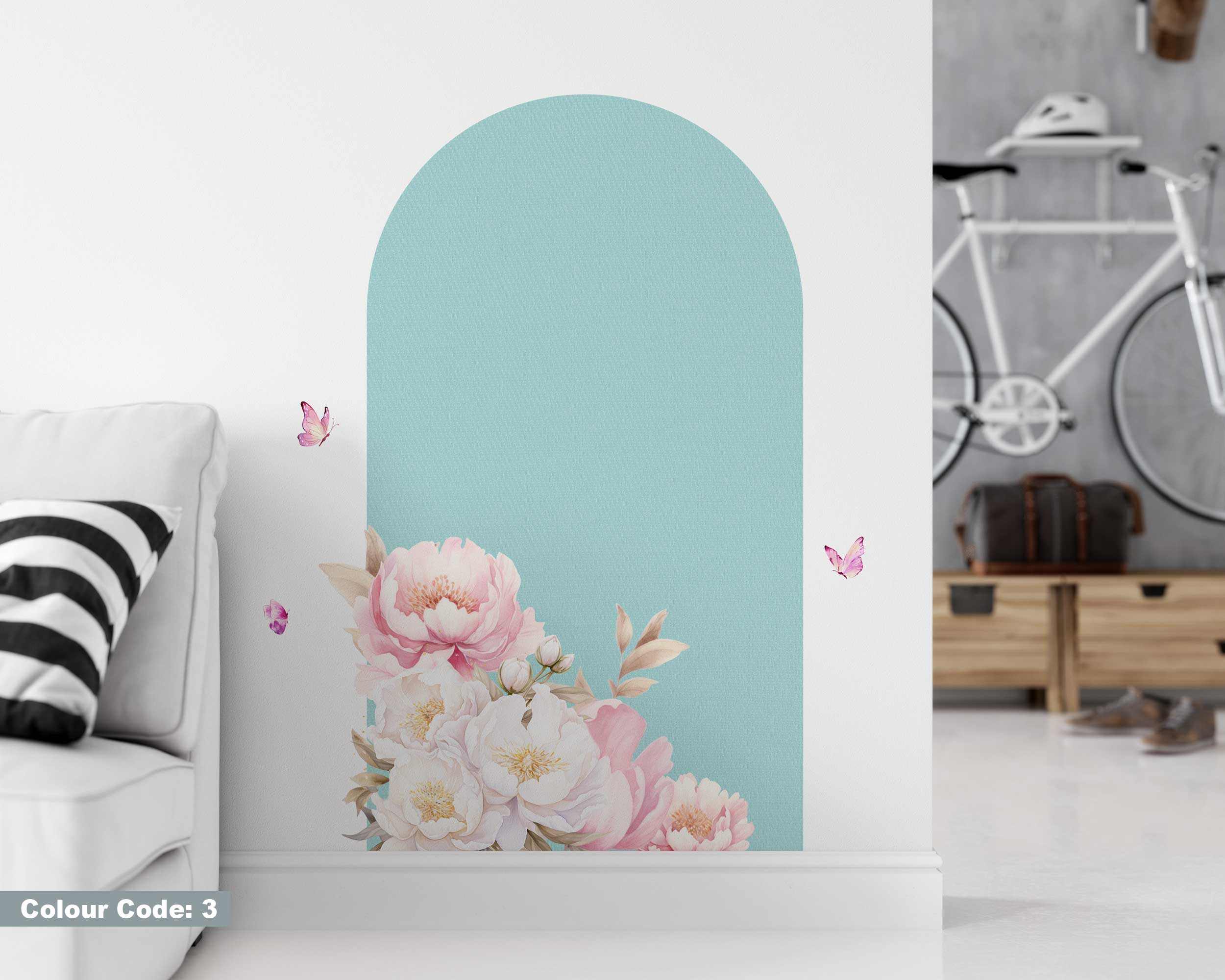 Watercolor Flowers Arch Wall Sticker – Mid Century Modern Peel and Stick Wall Art – Arch Sticker for Wall Decoration & Living Room Decor