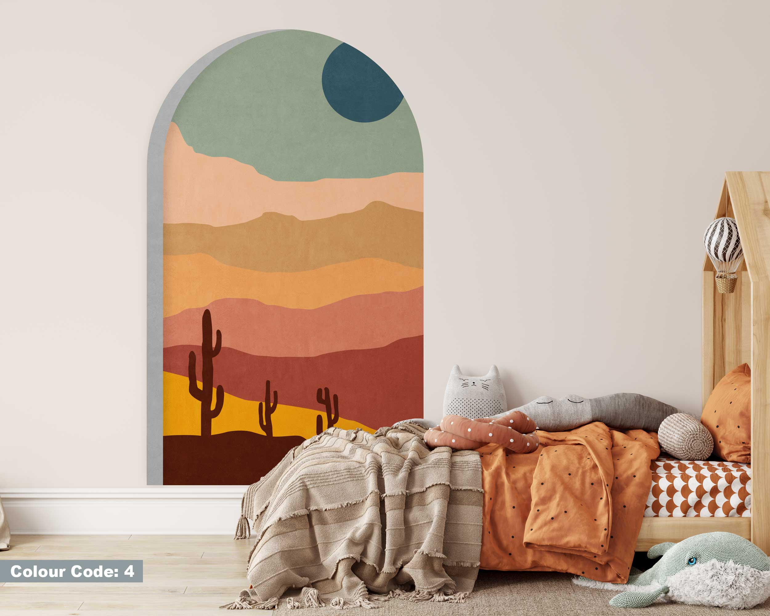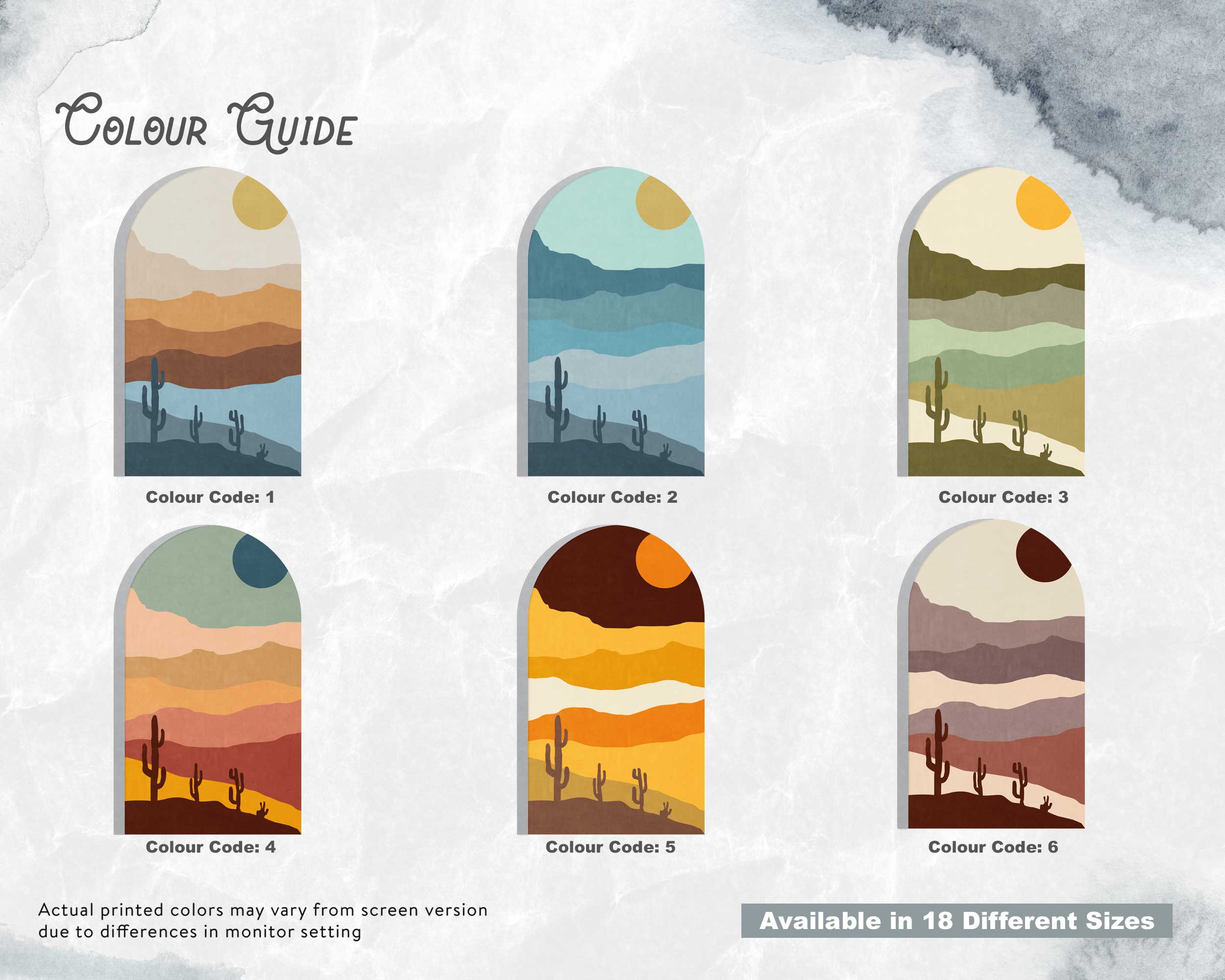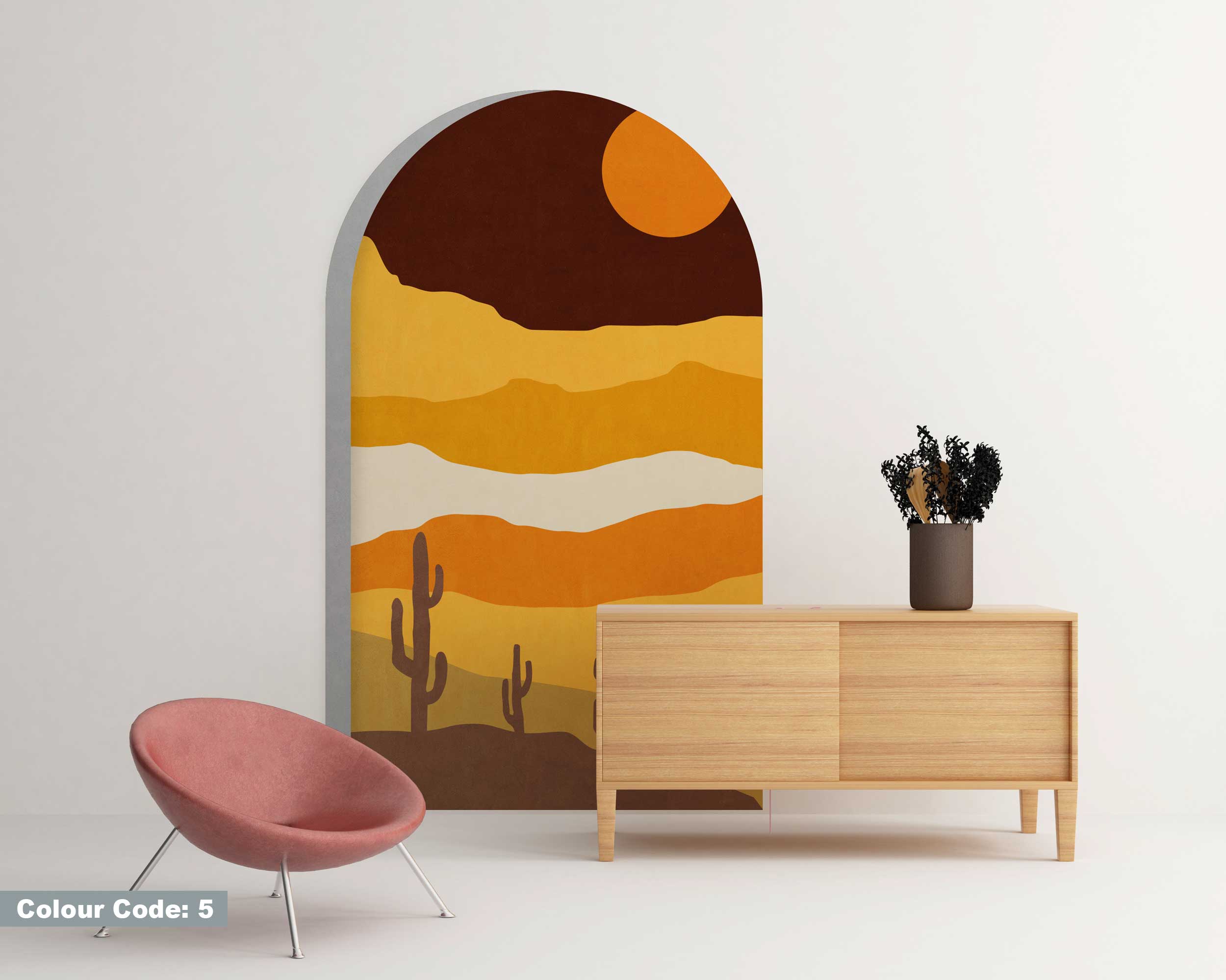 Elevate your home decor with the serene beauty of our Large Arch Sunrise Boho Watercolor Wall Stickers. This captivating design features a majestic mountain landscape under the soft hues of a sunrise, all enclosed within an elegant arch. It’s perfect for creating a peaceful and inspiring atmosphere in any room, particularly suited for living rooms and bedrooms.