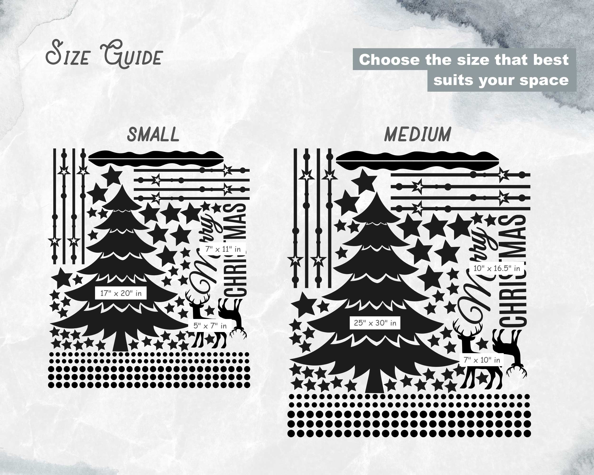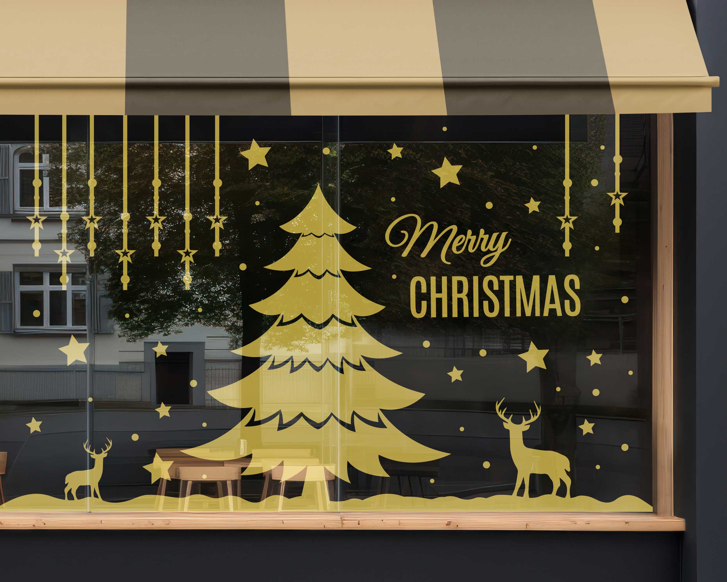 Ideal for retail stores, cafés, or restaurants, these decals combine classic holiday icons with timeless elegance. The Merry Christmas text, paired with a stunning tree and reindeer design, ensures your shopfront captures the festive spirit and attracts customers this holiday season.