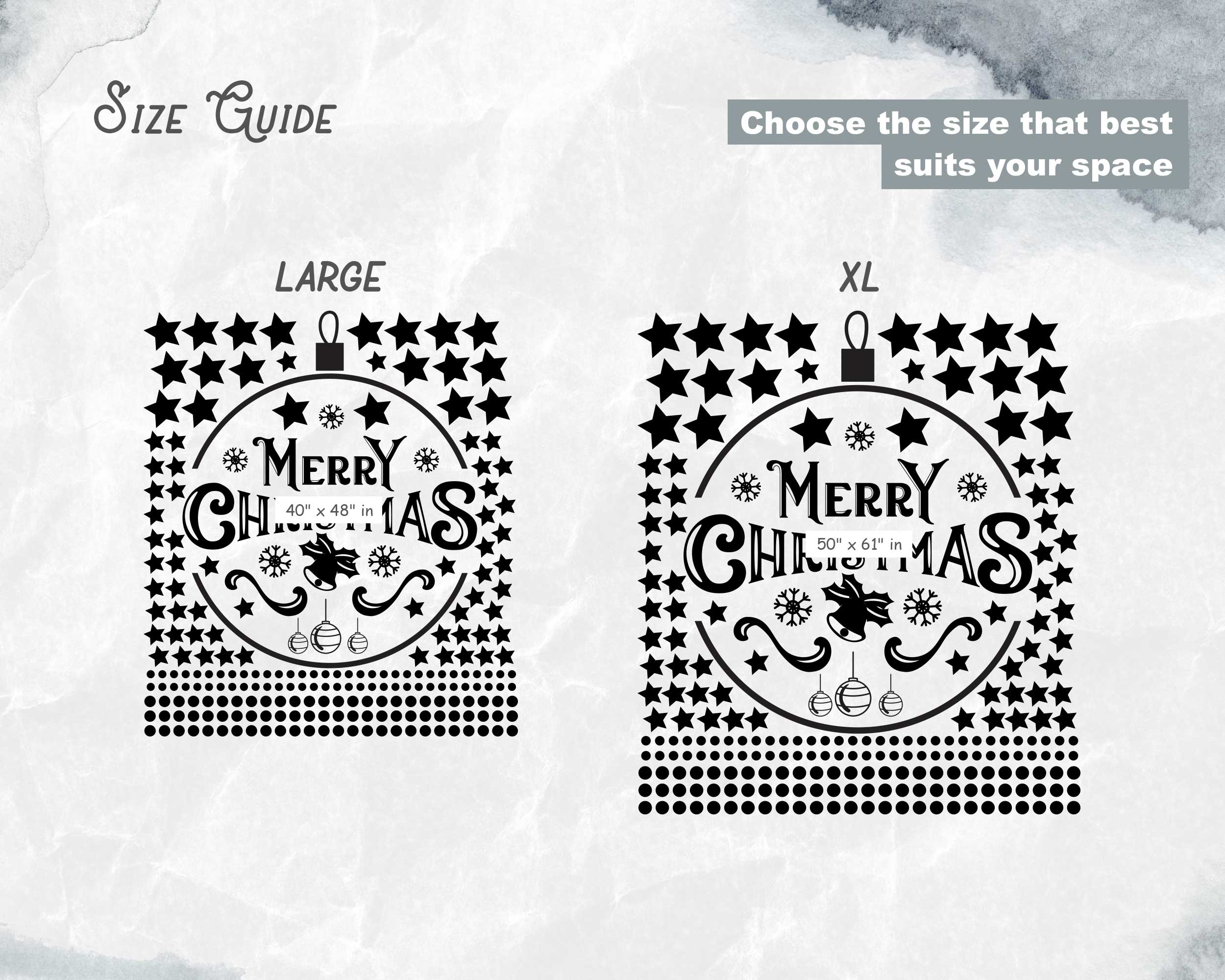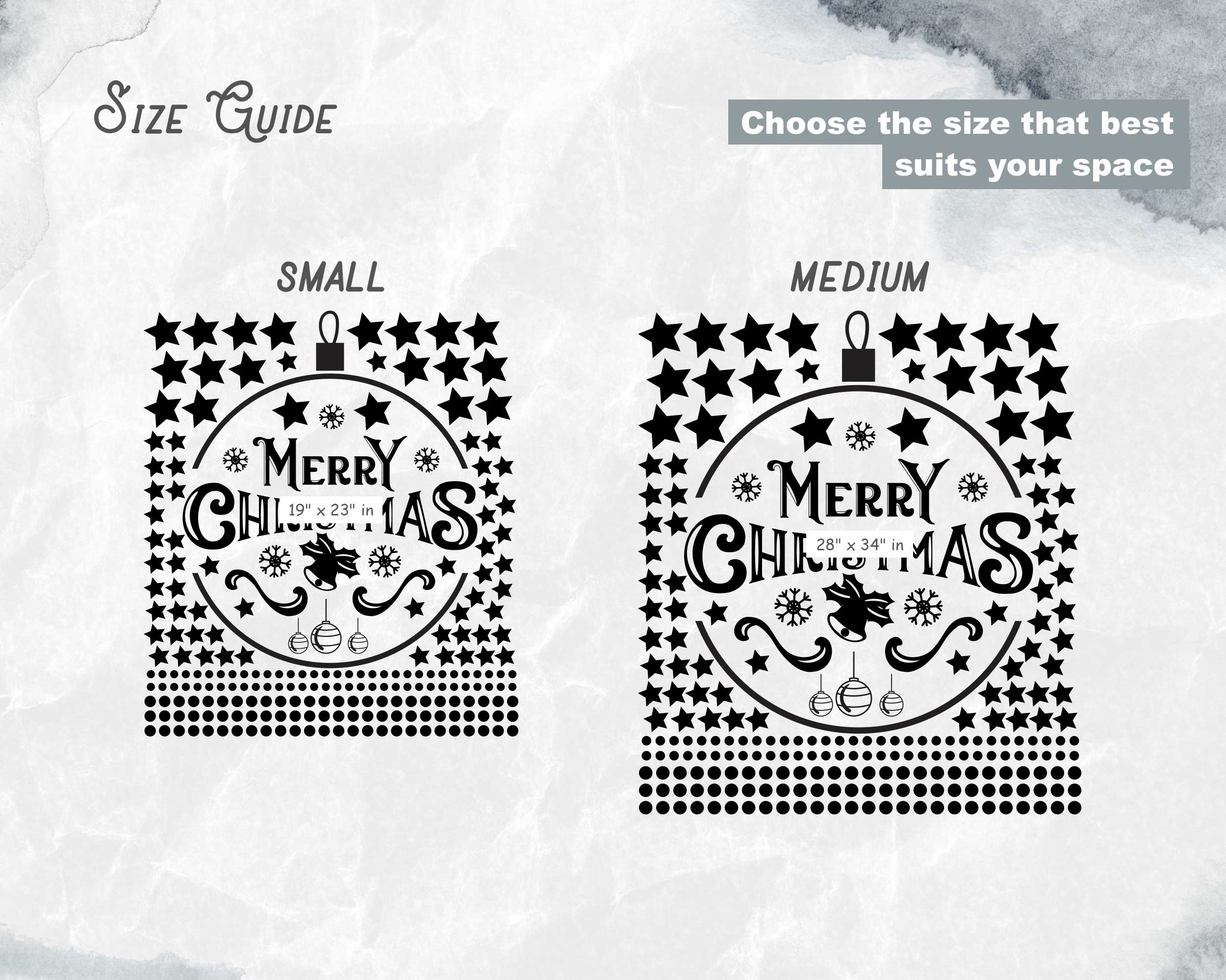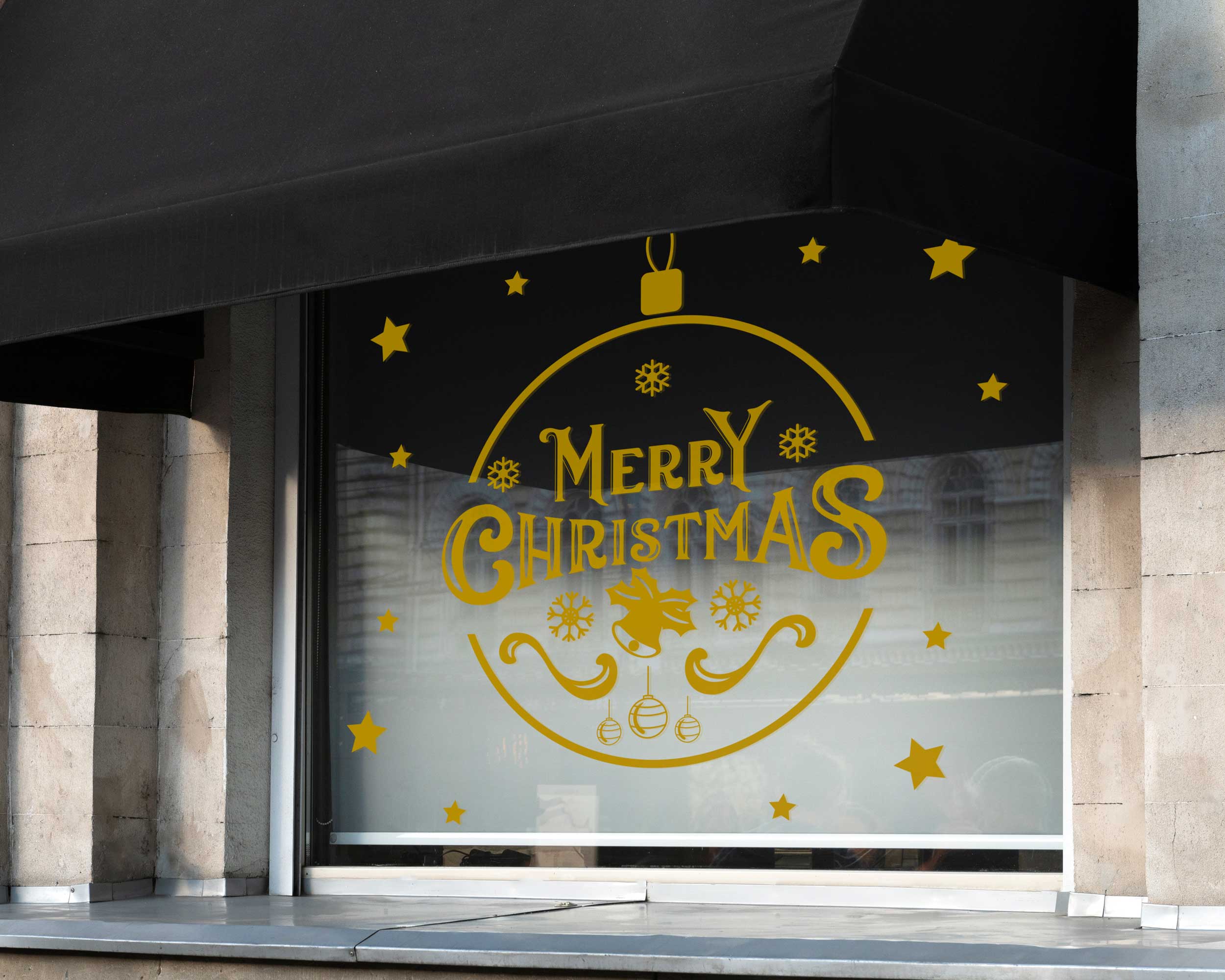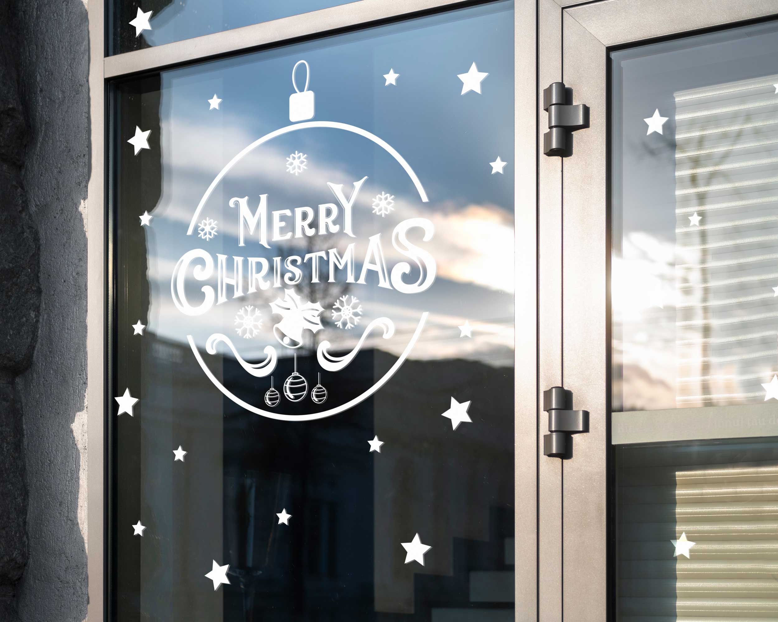 Perfect for retail shops, boutiques, or restaurants, these decals combine classic holiday icons with timeless elegance. The bold Merry Christmas text, paired with festive stars, ornaments, and a reindeer, ensures your storefront captures the holiday spirit and attracts customers.