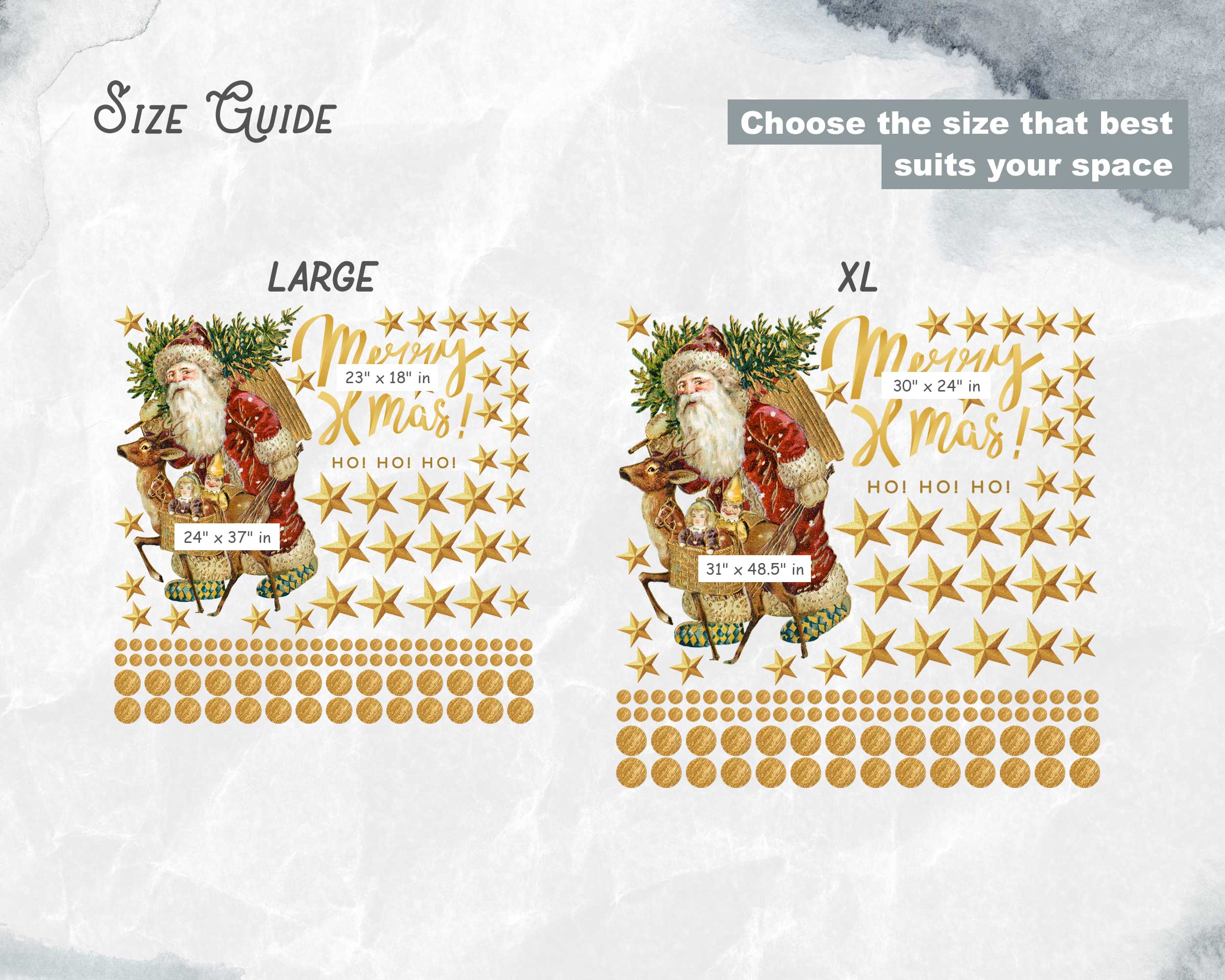 The bold gold stars, Merry Xmas text, and nostalgic Santa design combine classic and modern elements for an eye-catching display. Perfect for creating a festive ambiance, these decals ensure your storefront captures the holiday spirit and attracts customers this season.