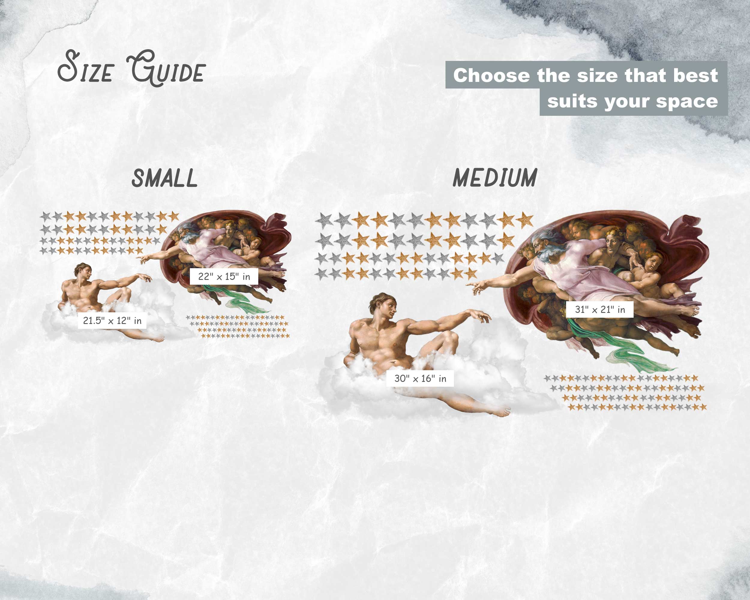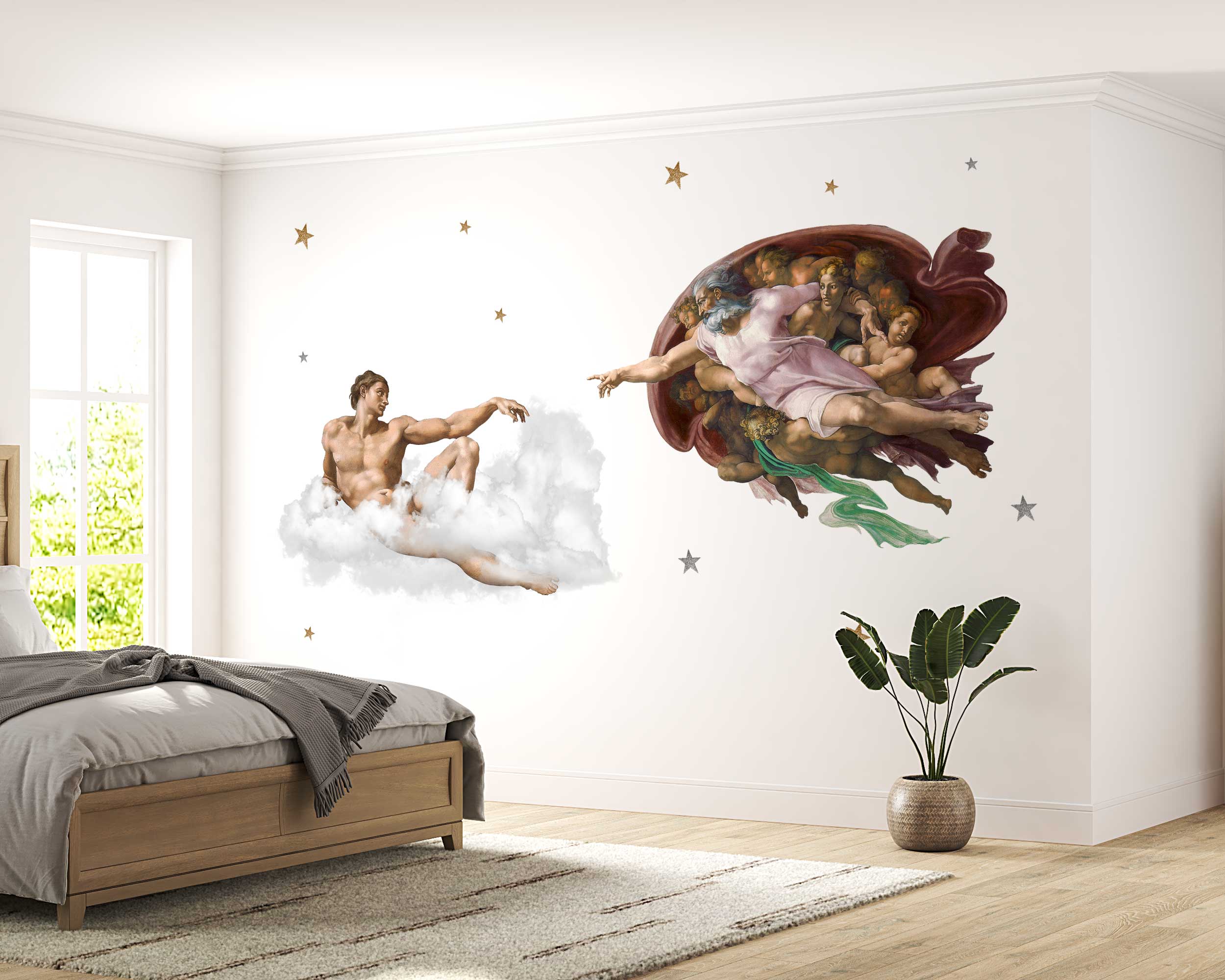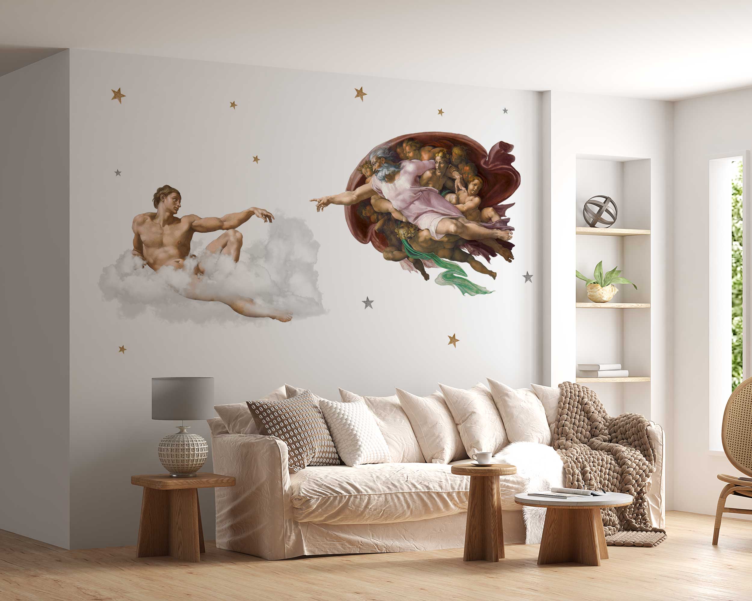Transform your space with this Michelangelo Creation of Adam Wall Sticker, a stunning vinyl decal inspired by the iconic Renaissance masterpiece. This detailed wall art captures the essence of the Sistine Chapel ceiling, bringing timeless elegance to your home. Designed for easy application, this sticker adds a sophisticated and artistic touch to your walls without the need for nails or frames.