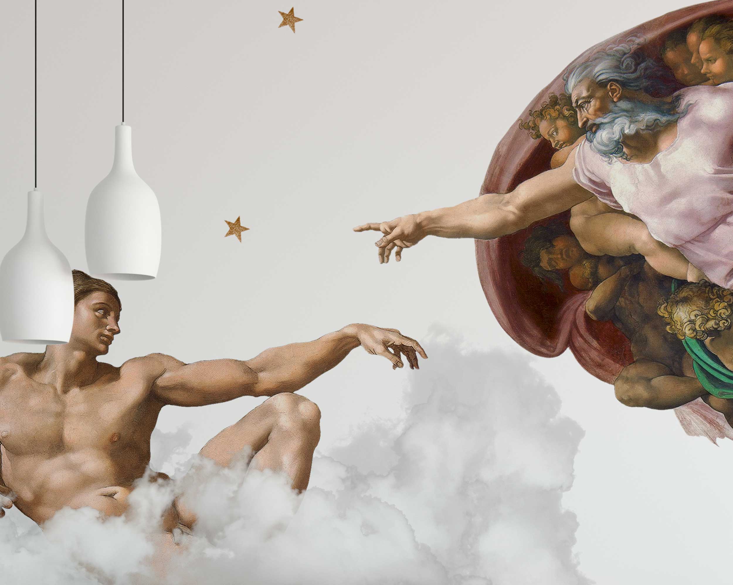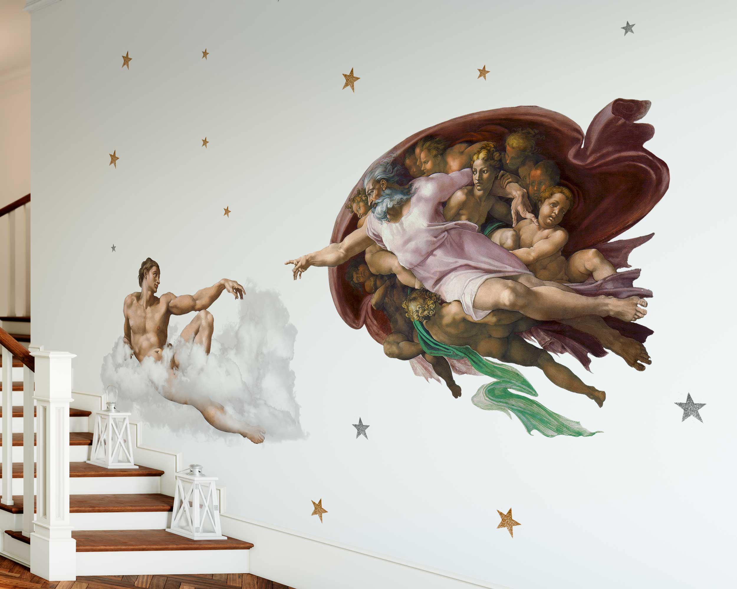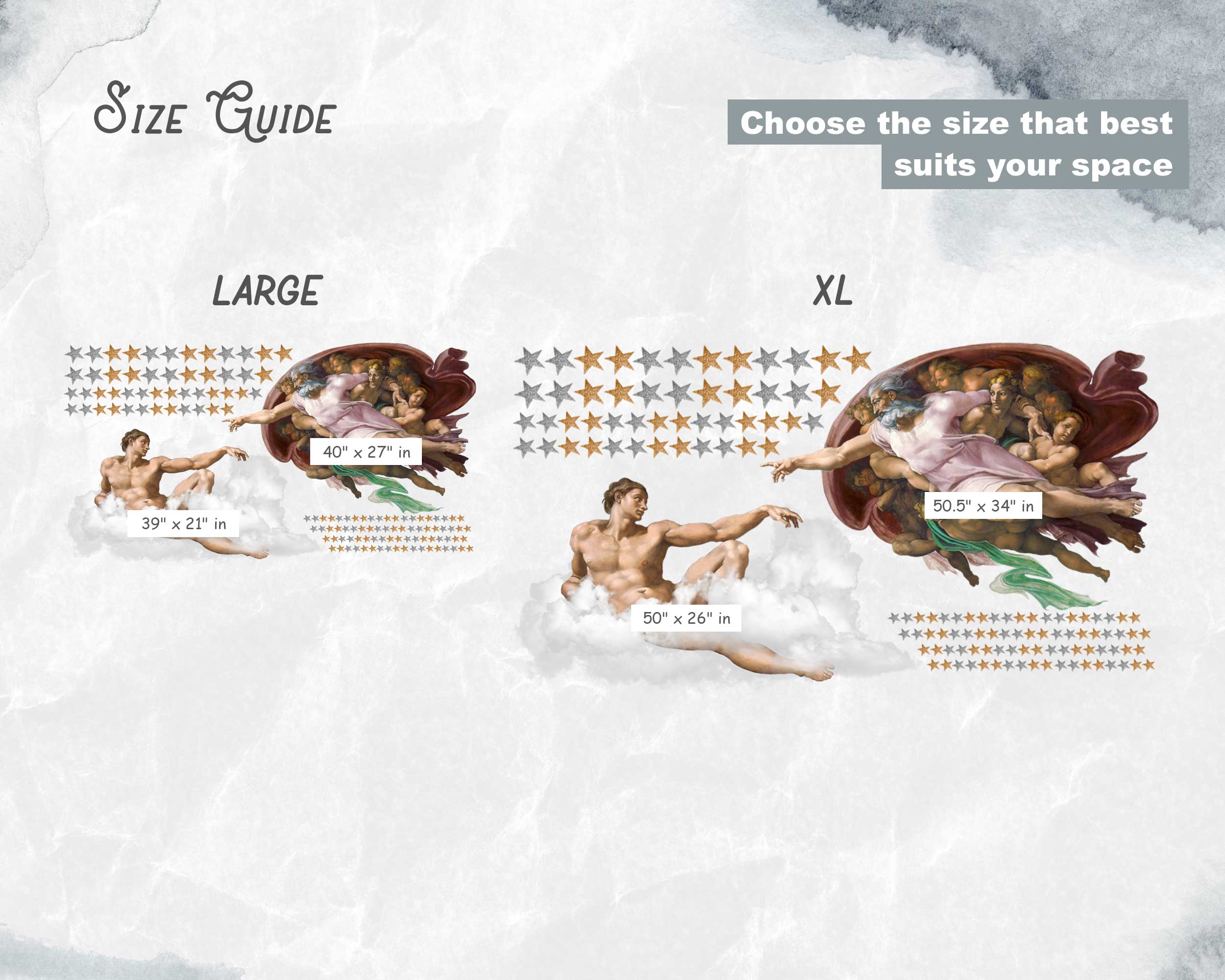 Transform your space with this Michelangelo Creation of Adam Wall Sticker, a stunning vinyl decal inspired by the iconic Renaissance masterpiece. This detailed wall art captures the essence of the Sistine Chapel ceiling, bringing timeless elegance to your home. Designed for easy application, this sticker adds a sophisticated and artistic touch to your walls without the need for nails or frames.