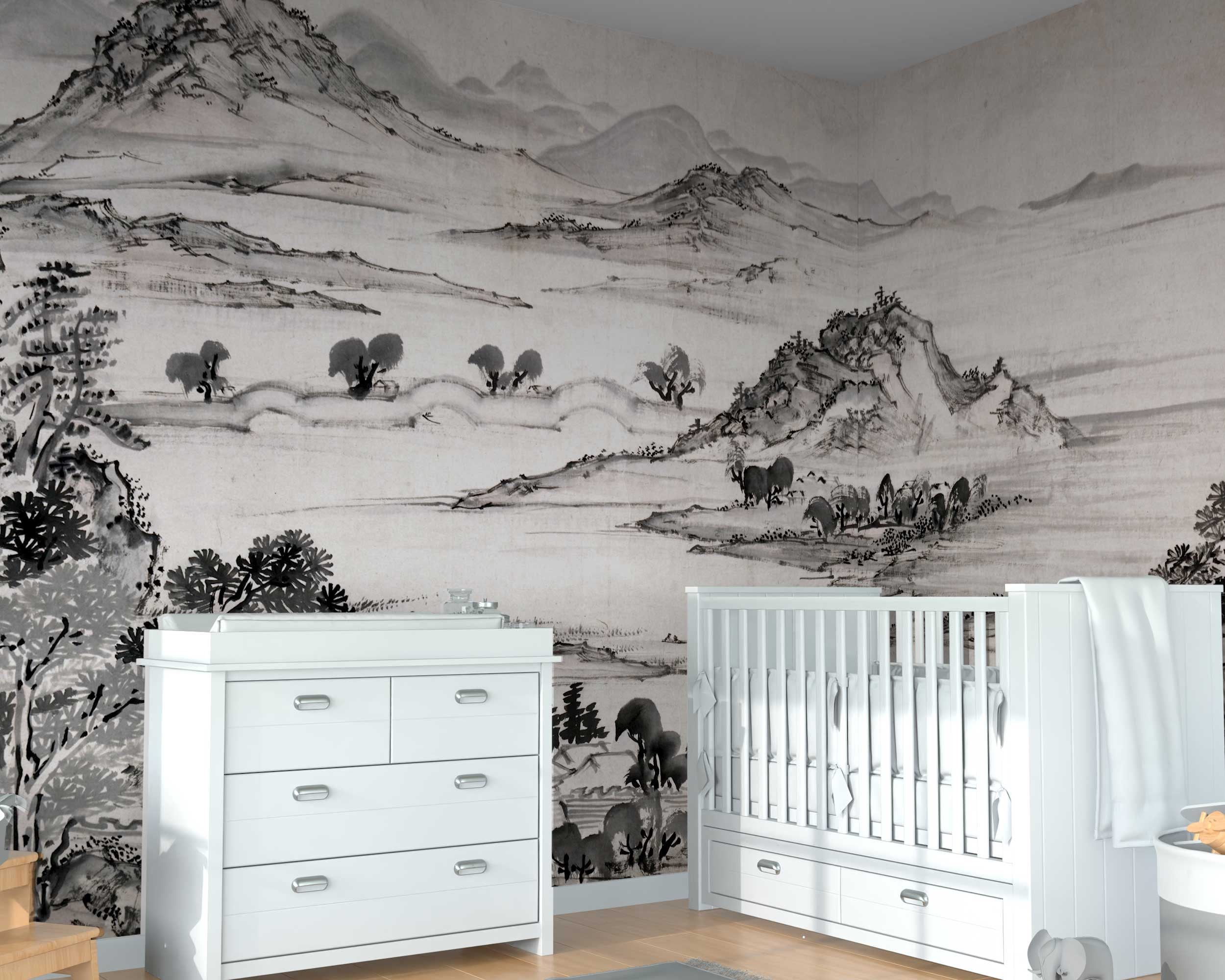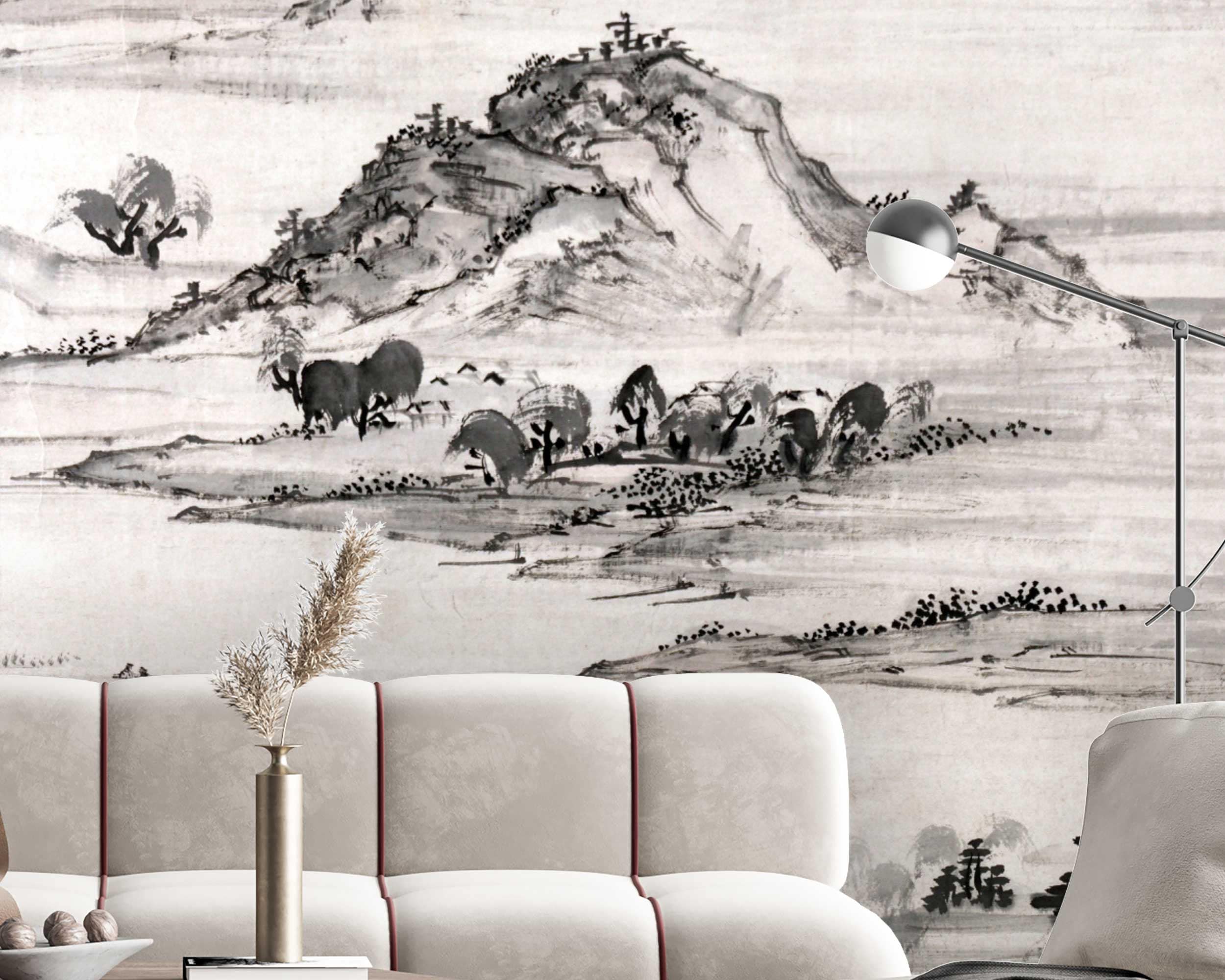 Modern Peel and Stick Wallpaper: Ike Taiga's View of West Lake | Nursery & Kids Room Decor | Japanese Art Landscape Painting | 1723-1776"