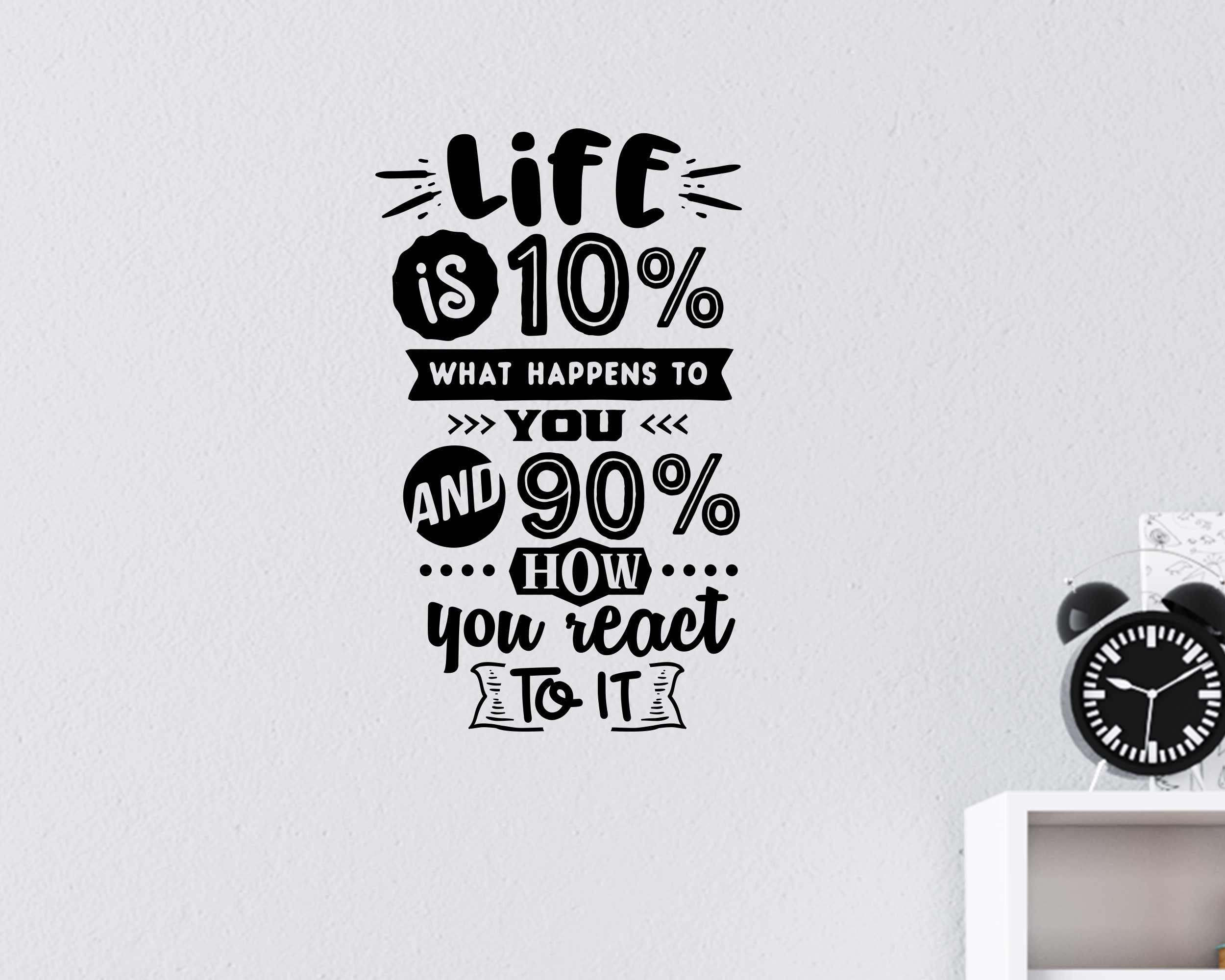 Motivational Quote Decal – 'Life is 10% what Happens' Vinyl Sticker for Wall Art Decor & Office Inspiration – Inspirational Quote Sticker