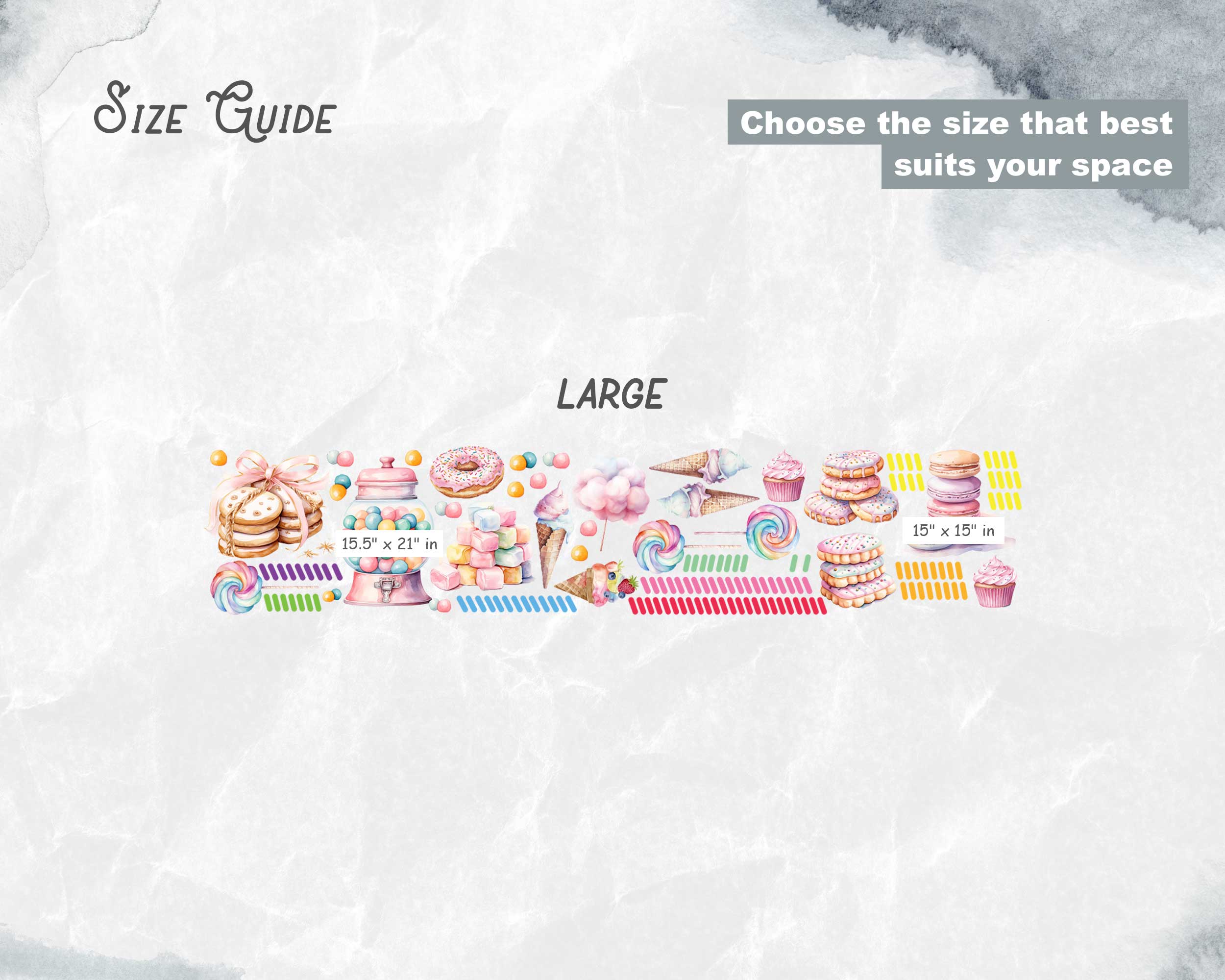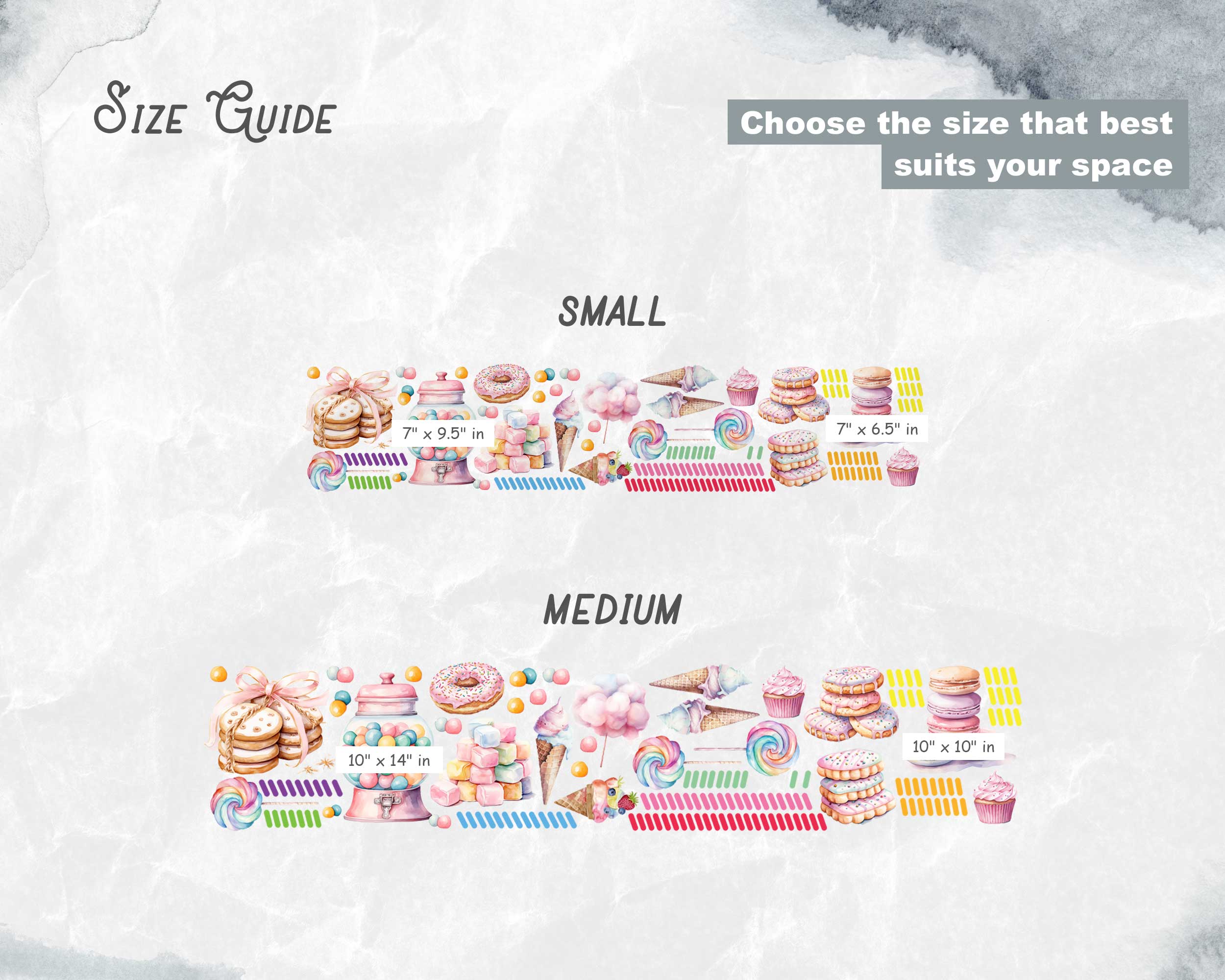 With a variety of sizes available, you can easily find the perfect fit for your space. Whether you’re decorating a small corner or creating a feature wall, these stickers will help you design a space that’s sweet, fun, and full of creativity.