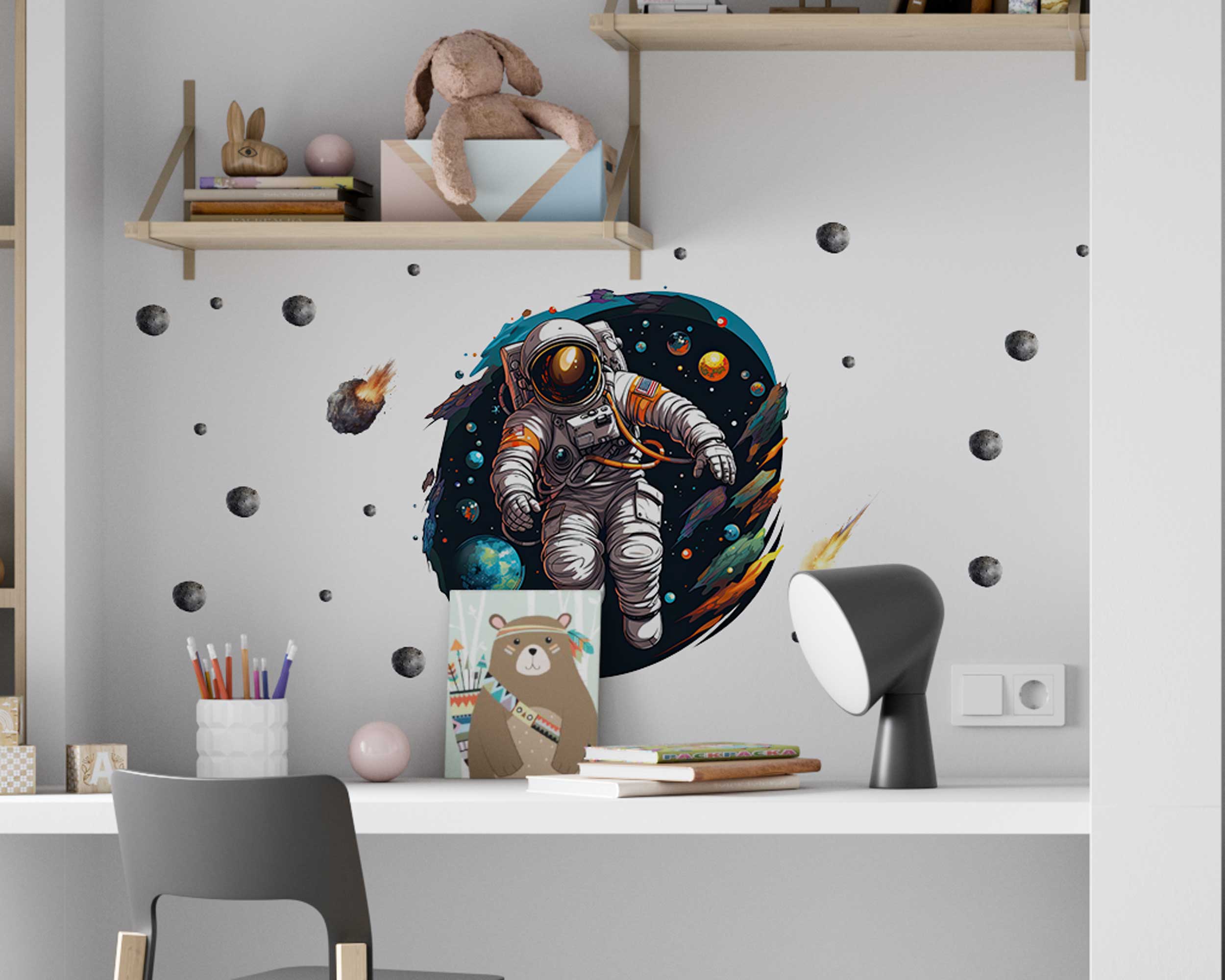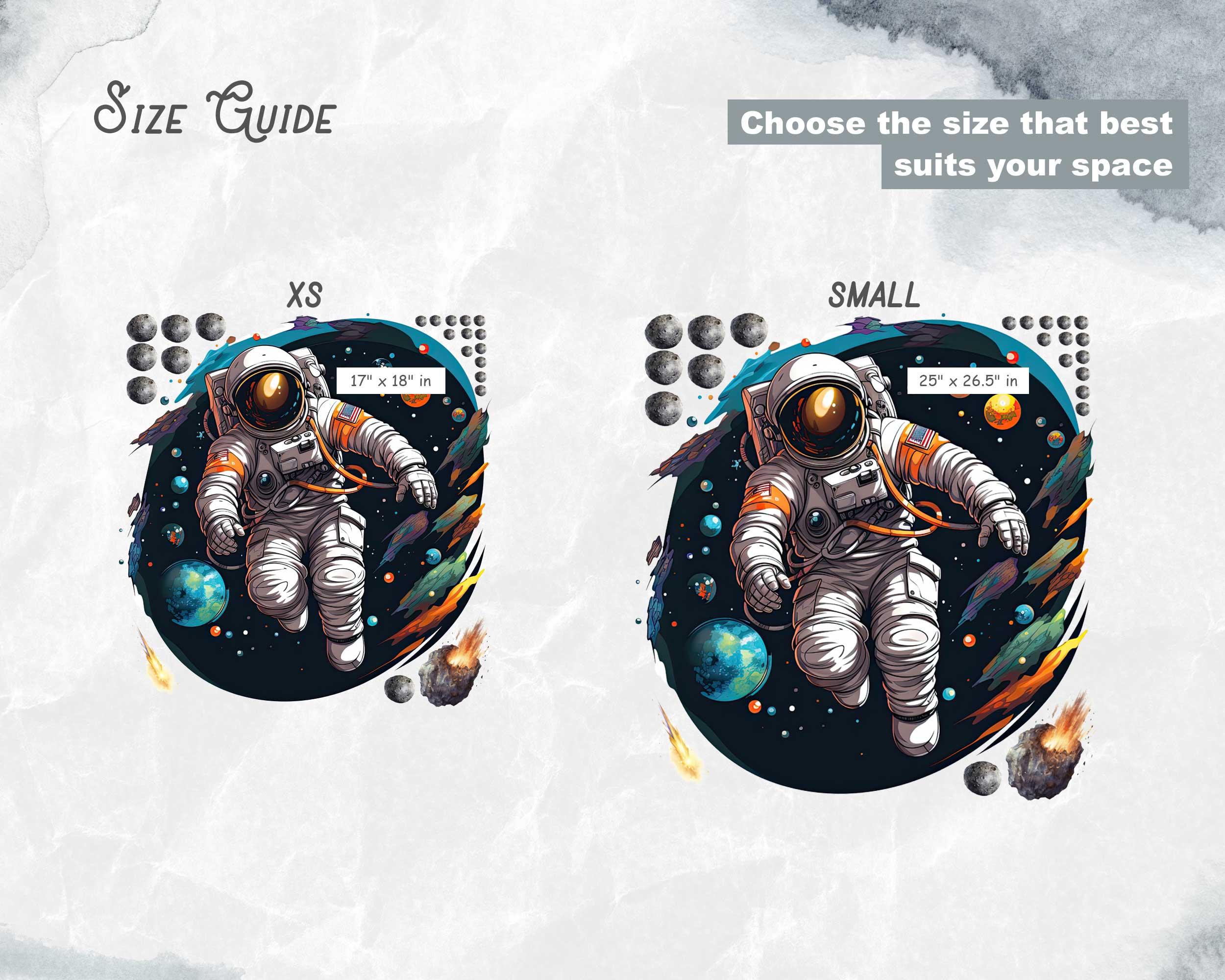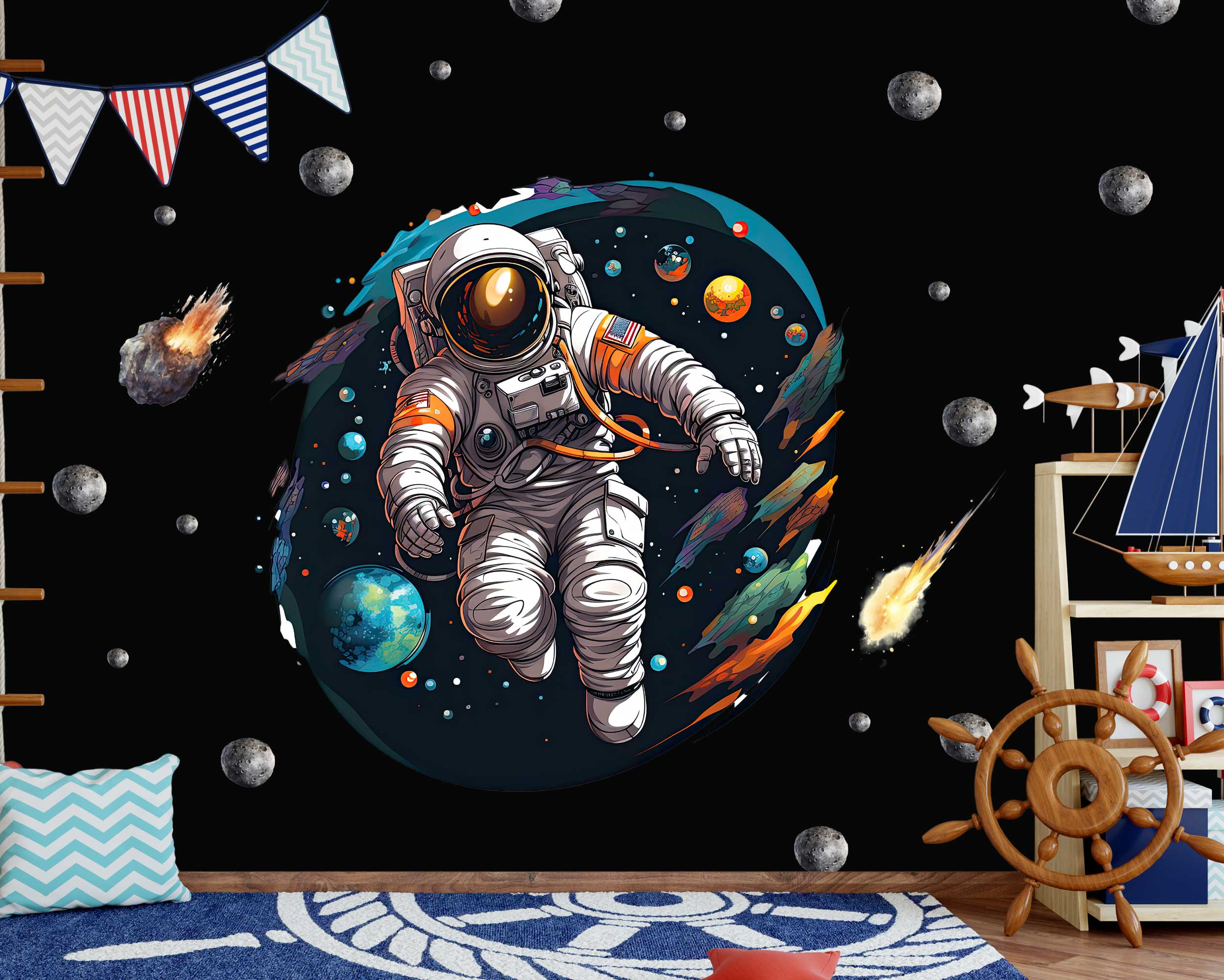 Transform your child’s room into a space explorer’s dream with our Space Explorer Astronaut Wall Stickers. Featuring a detailed astronaut surrounded by planets, meteors, and cosmic elements, these decals create an inspiring and adventurous atmosphere in any nursery, playroom, or bedroom. Made from premium fabric with non-toxic inks, these wall stickers are safe for children and easy to apply and reposition, making them ideal for renter-friendly decor. Turn any room into a galactic playground with these captivating and educational wall decals.