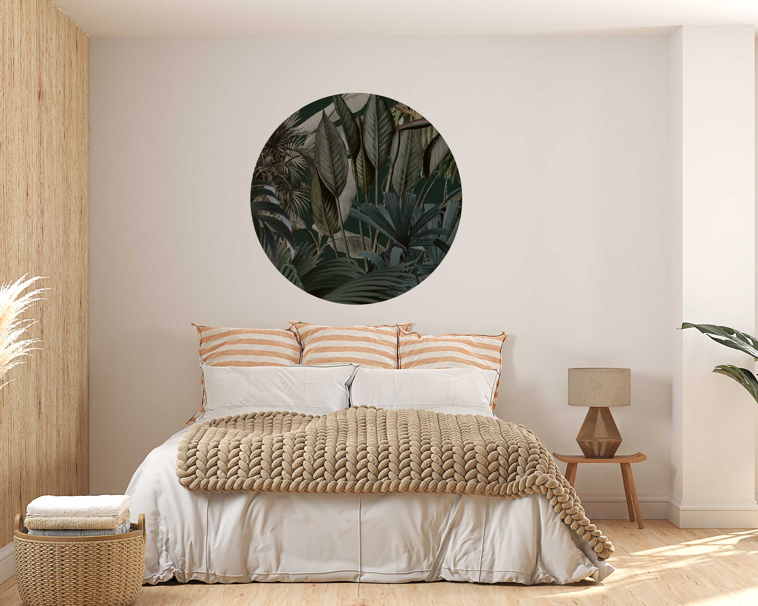Transform your space with the lush beauty of our Tropical Palm Leaves Circle Wall Sticker. Perfect for living rooms, bedrooms, or any creative space, this circular wall decal features a stunning design of tropical palm leaves, adding a fresh and vibrant touch to your decor. Crafted from high-quality fabric material, this wall decal is both durable and easy to apply, ensuring a seamless and stylish addition to your home. The intricate design brings a touch of nature’s beauty into any room, making it a delightful focal point. Available in a range of sizes, you can choose the perfect fit for your space. Bring a piece of the tropics into your home with this enchanting palm leaves circle wall decal and transform your space with elegance.