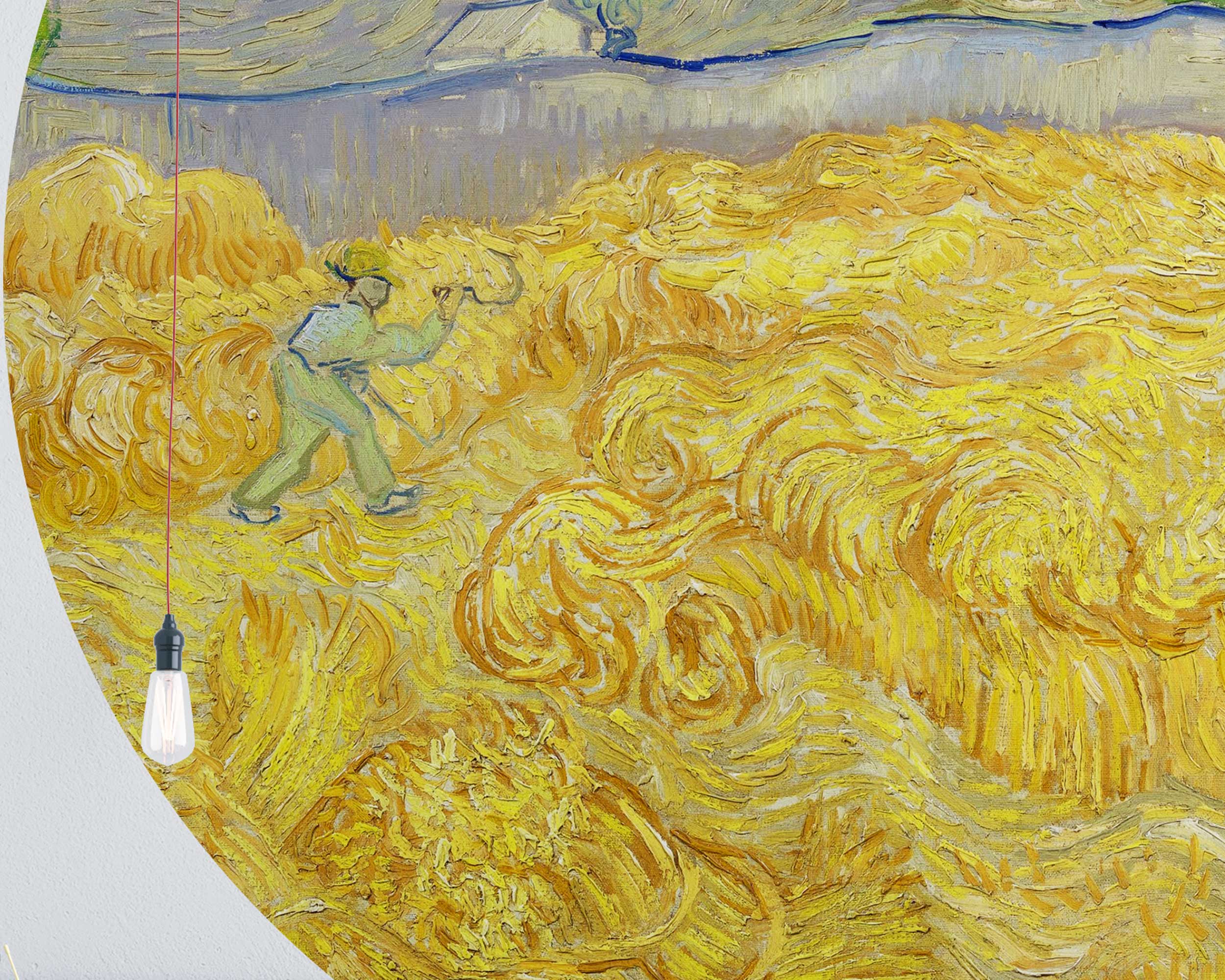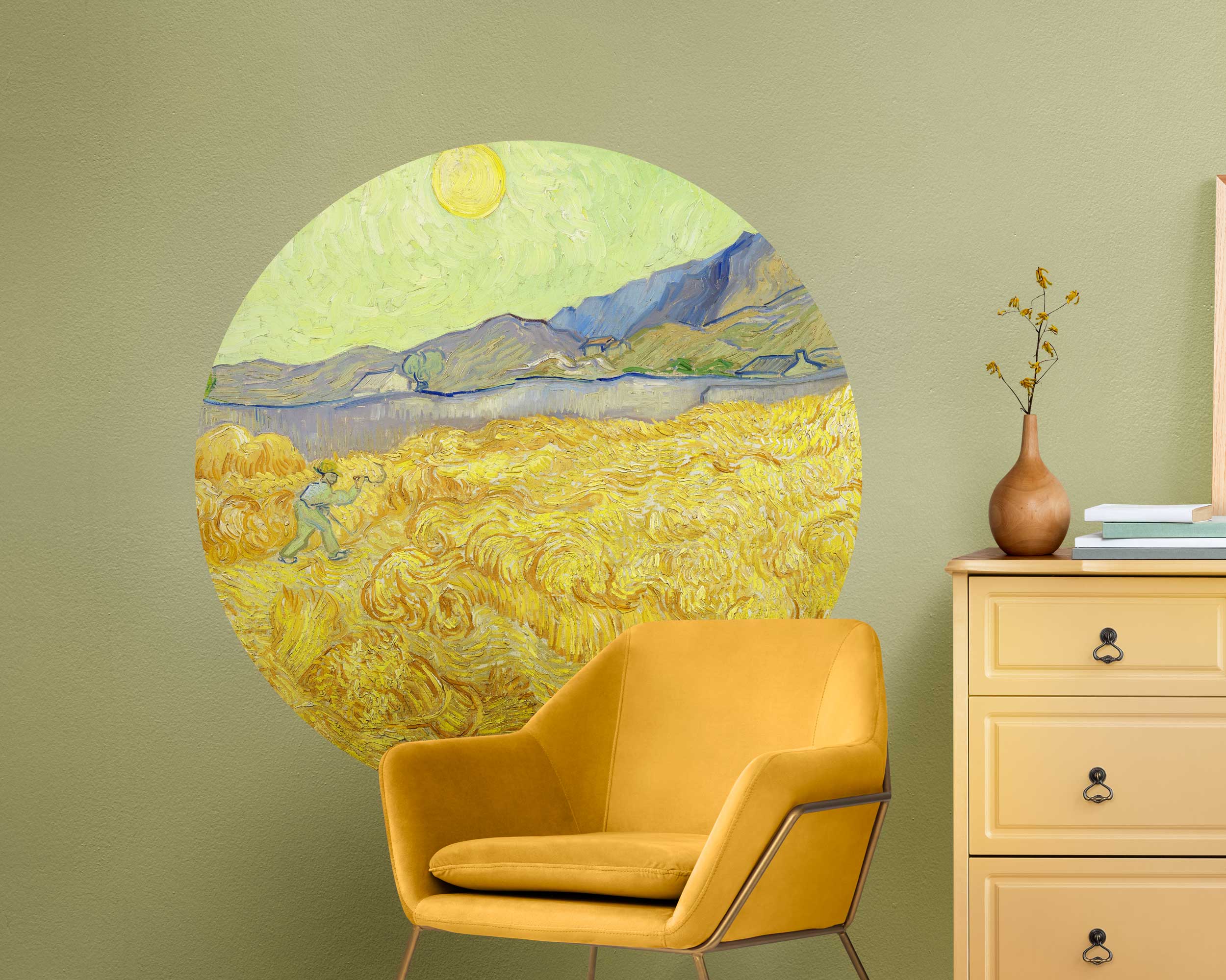 Bring the serene beauty of Vincent van Gogh’s famous “Wheat Field” into your home with this stunning circle wall sticker. The swirling golden wheat under the bright sun evokes a sense of warmth and peace, making it a perfect addition to any room. This large round mural adds an artistic and calming touch to your living room, bedroom, or office, capturing Van Gogh’s iconic style and passion for nature.