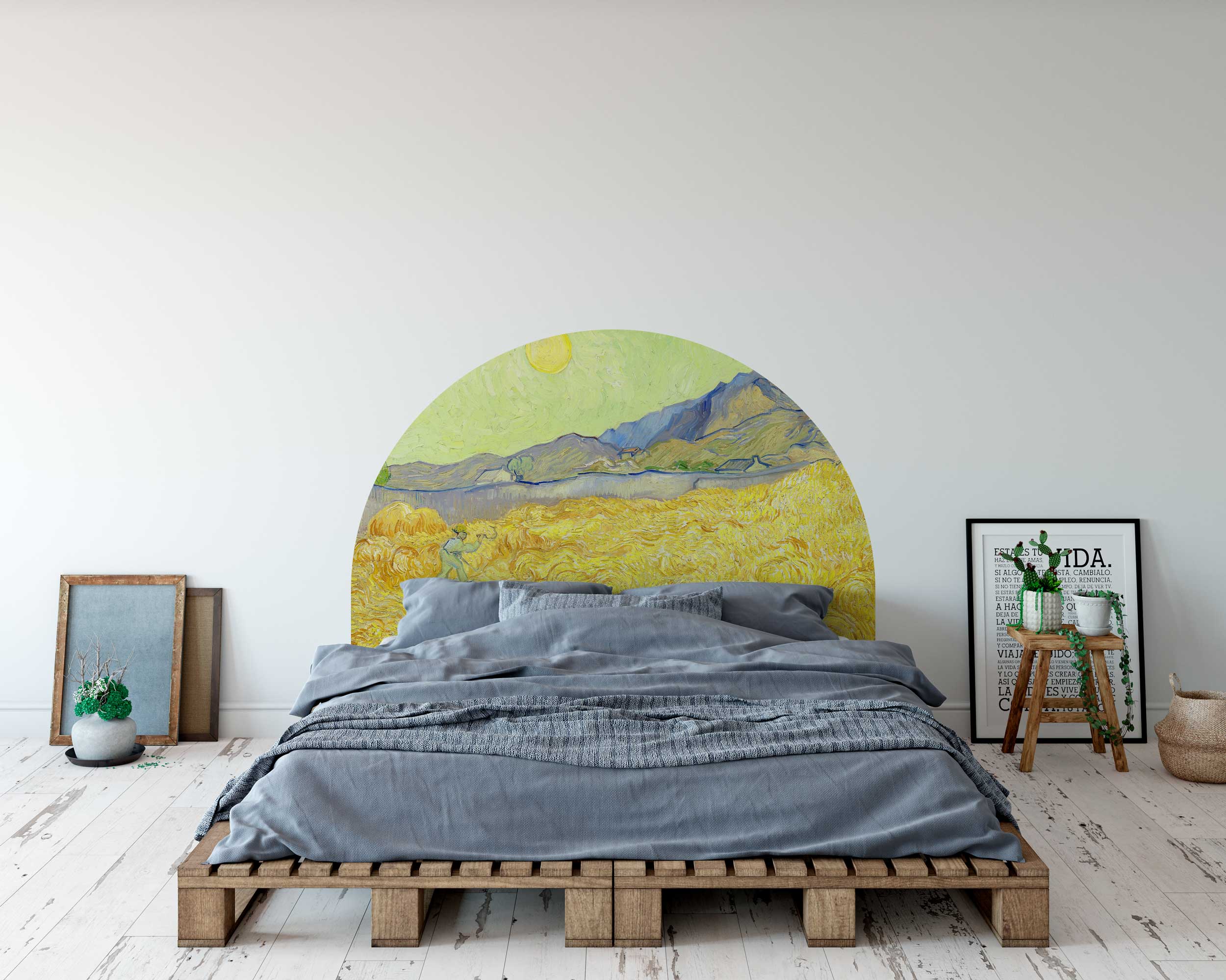 Bring the serene beauty of Vincent van Gogh’s famous “Wheat Field” into your home with this stunning circle wall sticker. The swirling golden wheat under the bright sun evokes a sense of warmth and peace, making it a perfect addition to any room. This large round mural adds an artistic and calming touch to your…
