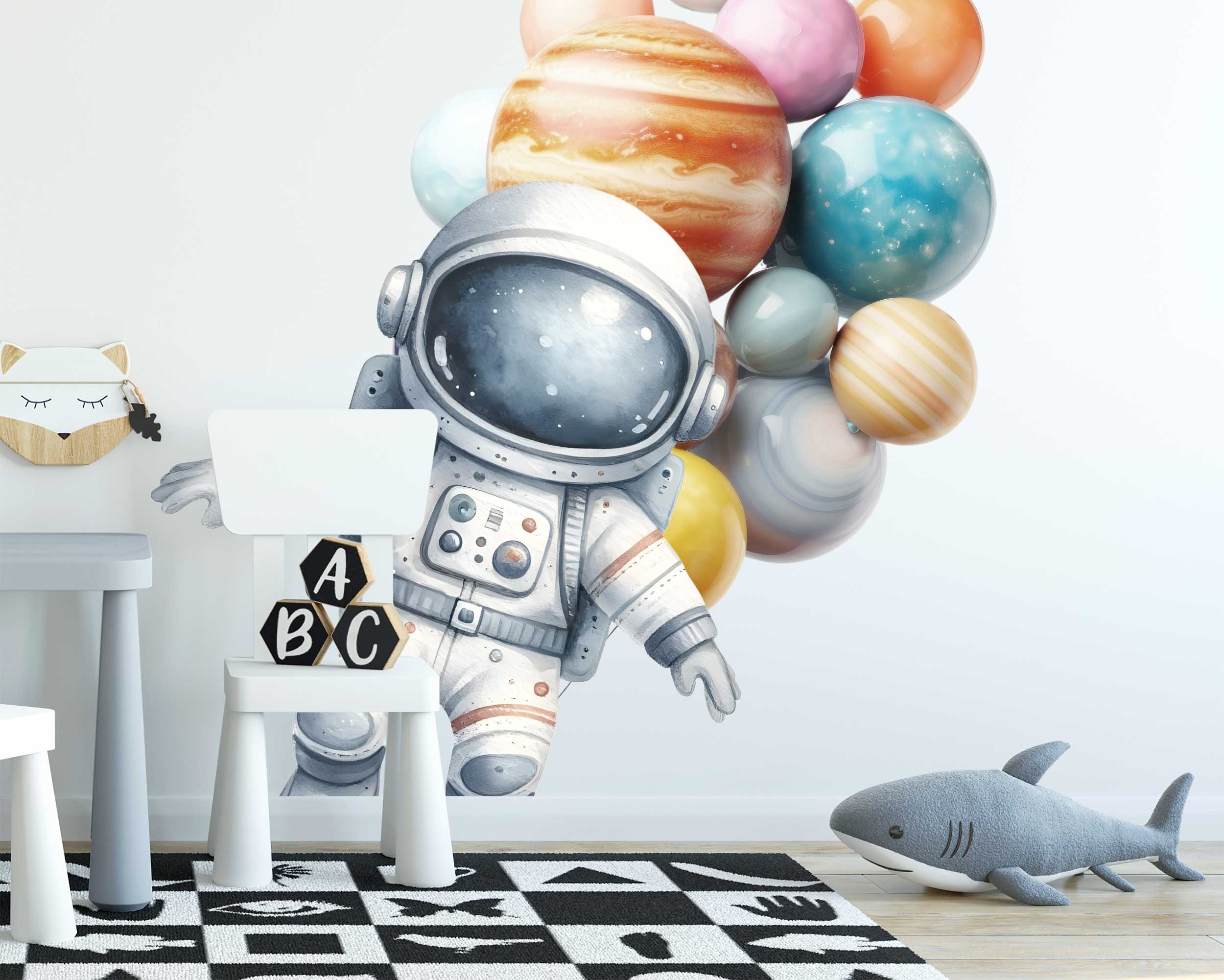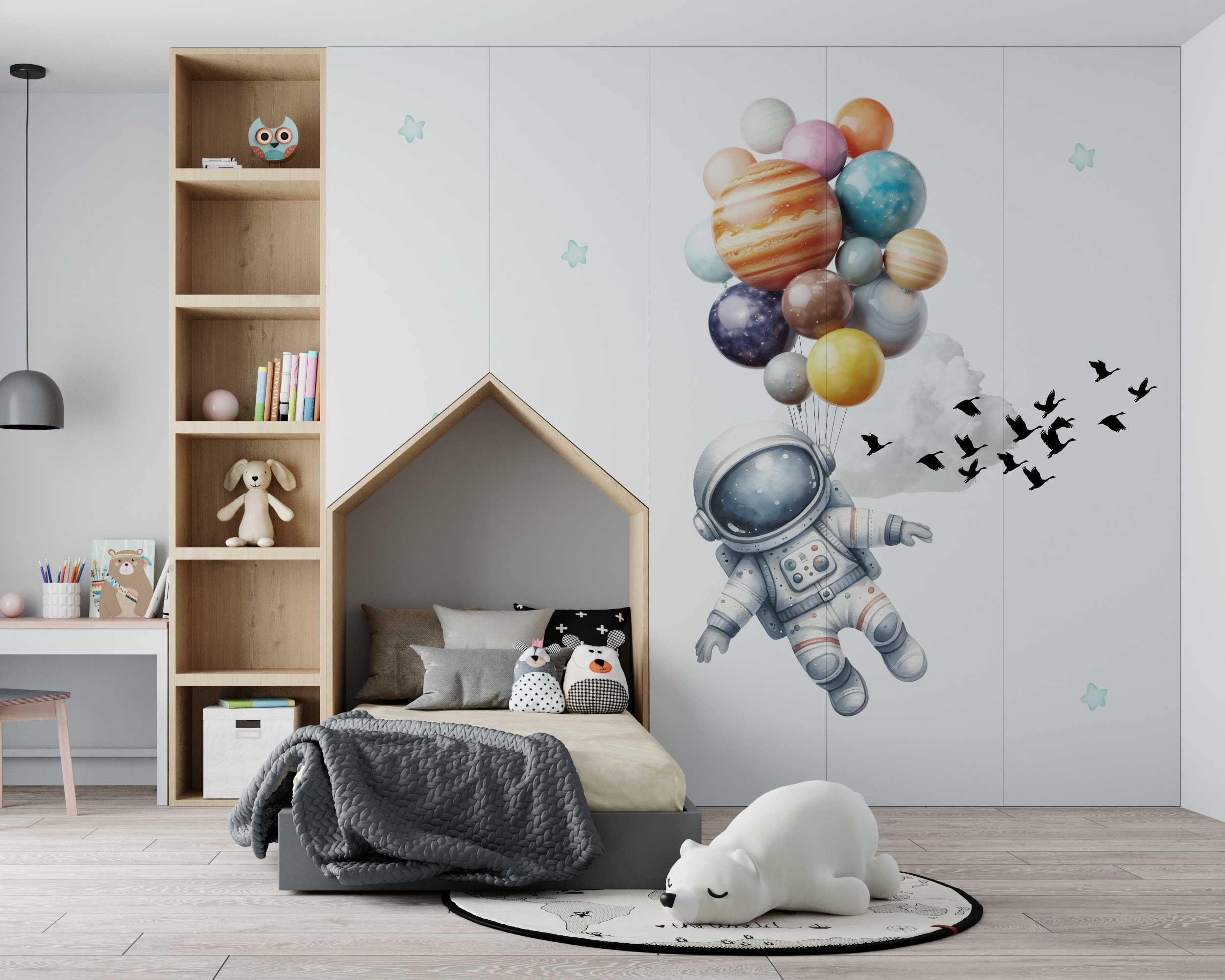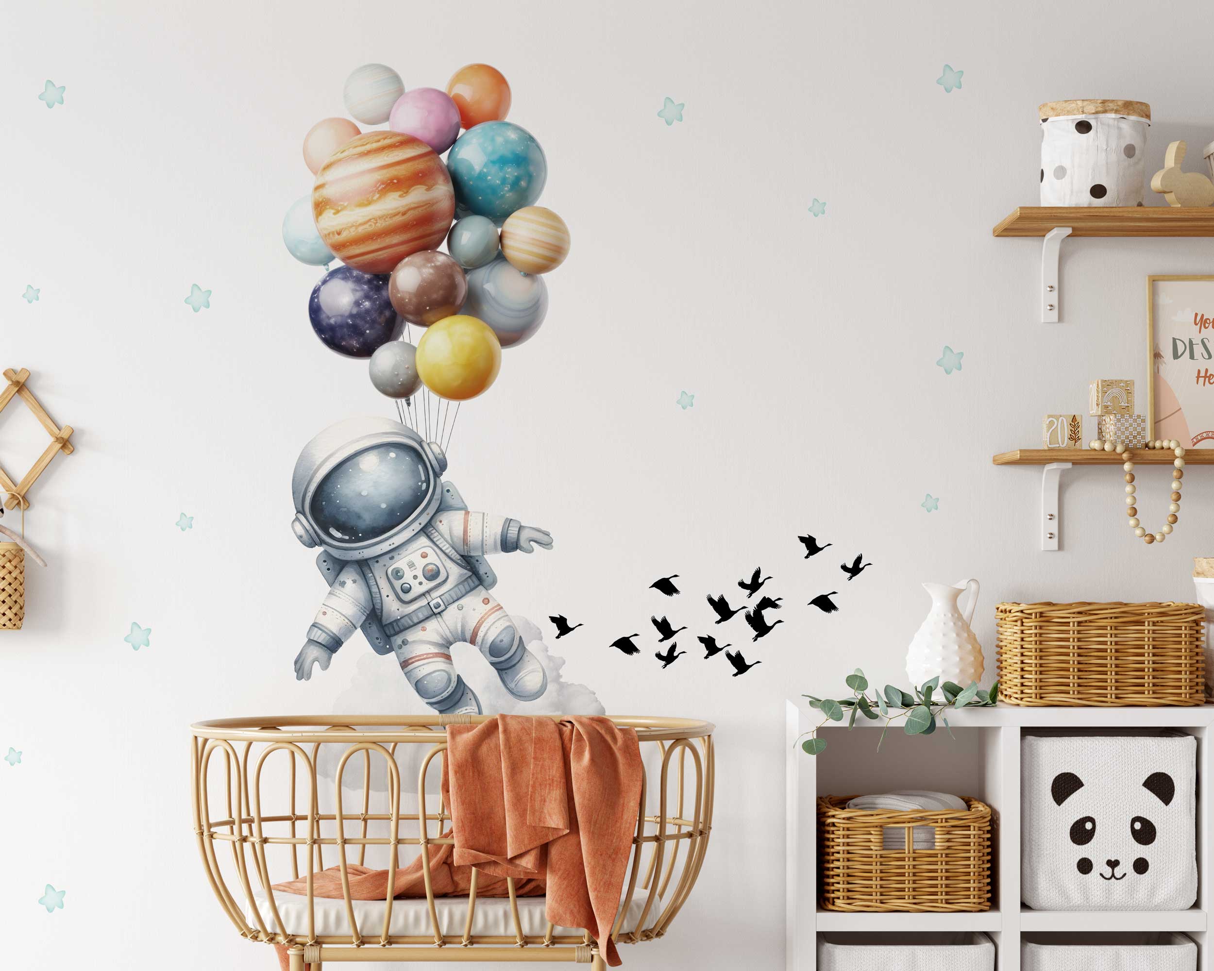 Create a magical and whimsical atmosphere in your child’s room with our Whimsical Astronaut Wall Stickers. Featuring a dreamy space theme with an astronaut holding a surreal planets balloon and surrounded by birds, these beautiful decals add an imaginative and enchanting touch to any nursery, playroom, or bedroom. Made from premium fabric with non-toxic inks, these wall stickers are safe for children and easy to apply and reposition, making them perfect for renter-friendly decor. Transform any room into a fantastical space adventure with these charming and playful wall decals.