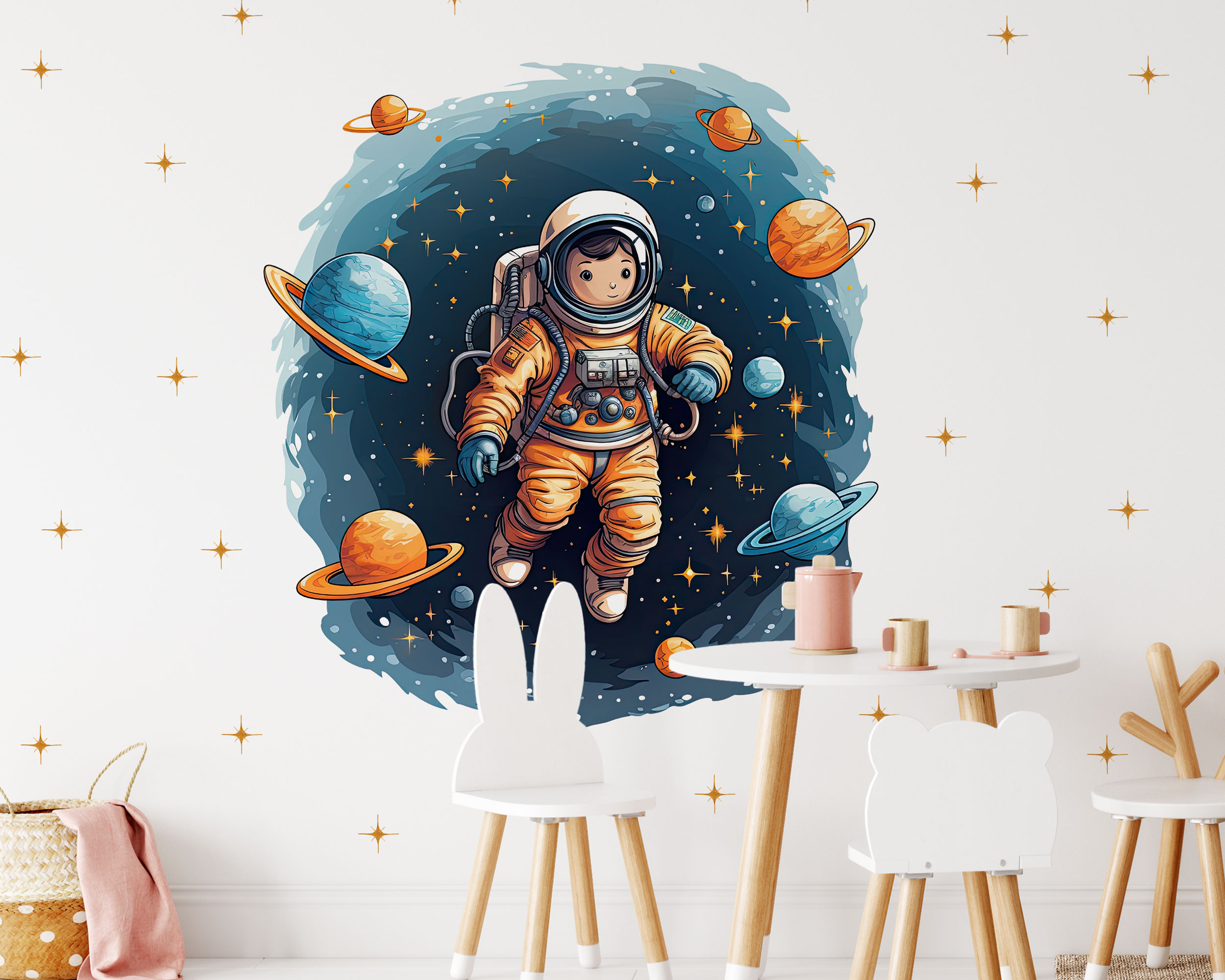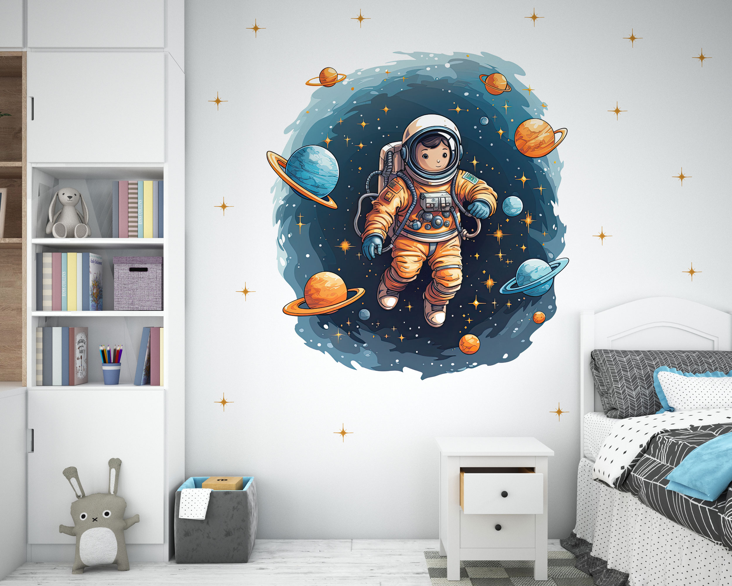 Add a touch of whimsy to your child’s room with our Whimsical Astronaut Wall Stickers. Featuring a cute astronaut surrounded by colorful planets and stars, these decals create a playful and imaginative atmosphere in any nursery, playroom, or bedroom. Made from premium fabric with non-toxic inks, these wall stickers are safe for children and easy to apply and reposition, making them perfect for renter-friendly decor. Transform any room into a whimsical space adventure with these enchanting wall decals.