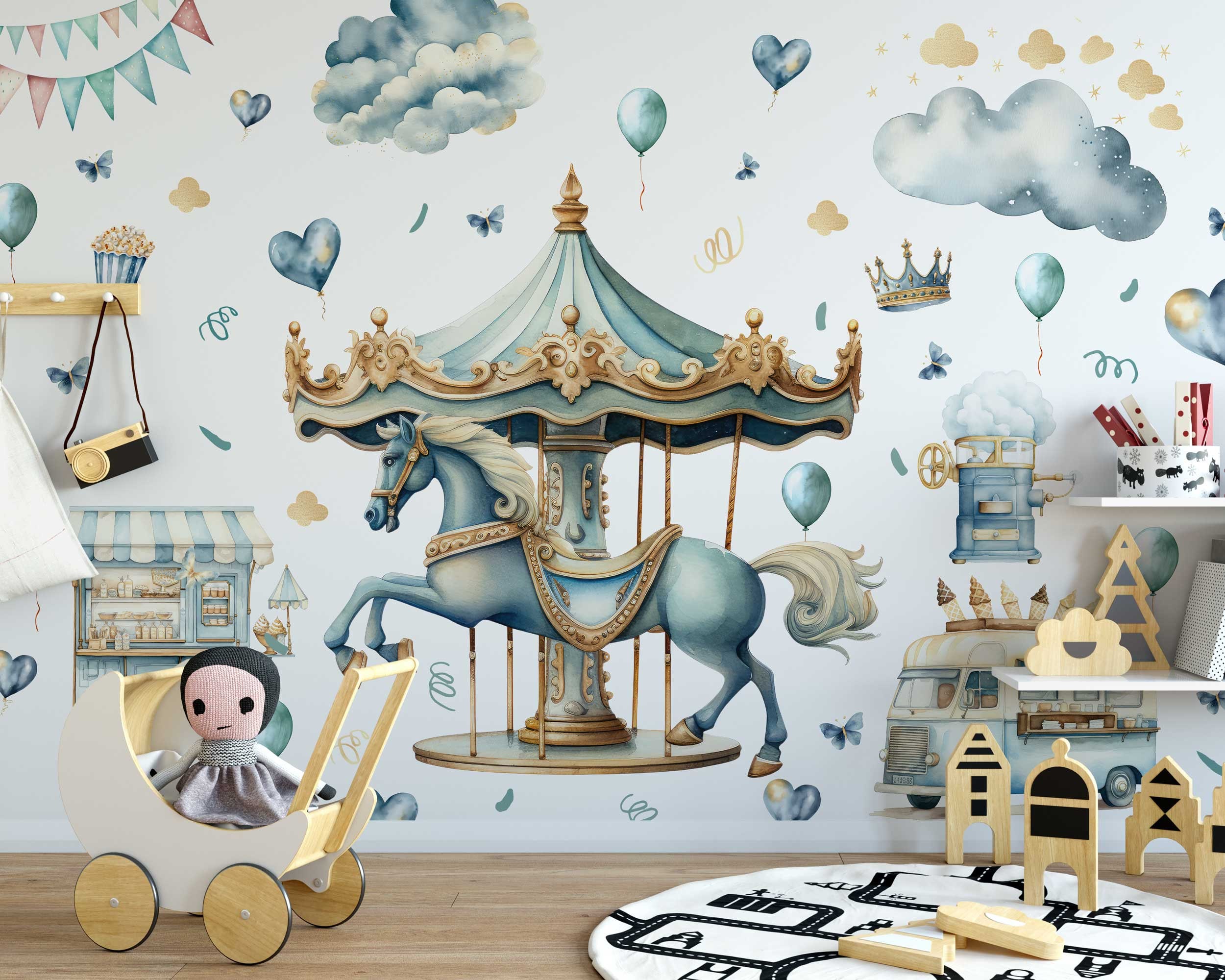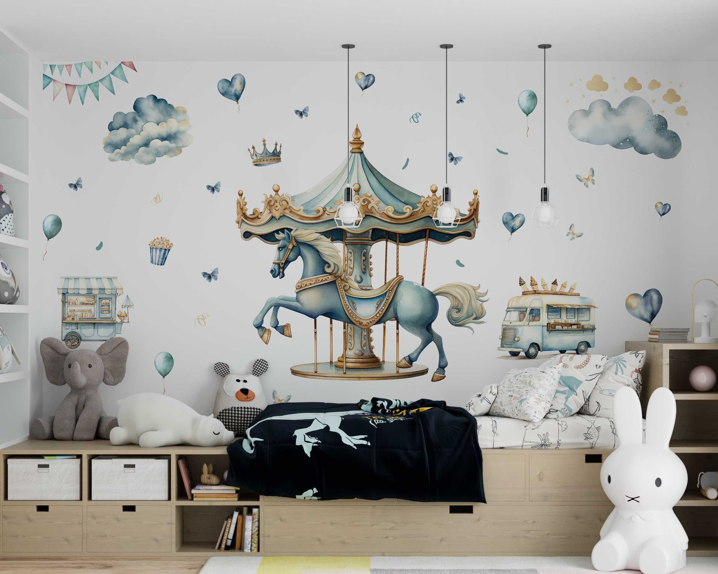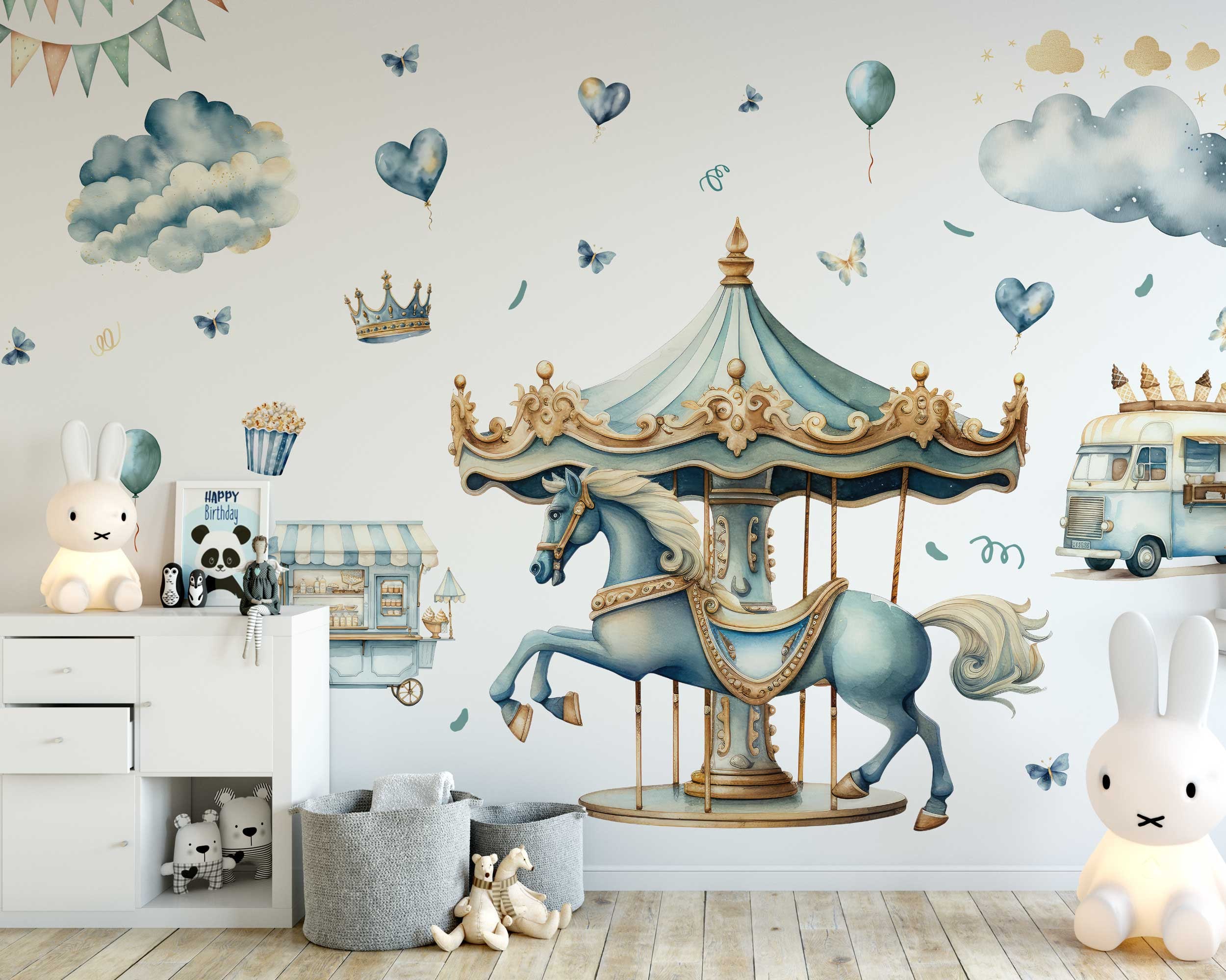 Ready to embark on a journey to the whimsical world of the carnival? Order your set of Whimsical Carnival Girls Bedroom Wall Stickers with Horses today and let the magic begin! Transform your child's room into a festive wonderland where imagination knows no bounds and dreams take flight.