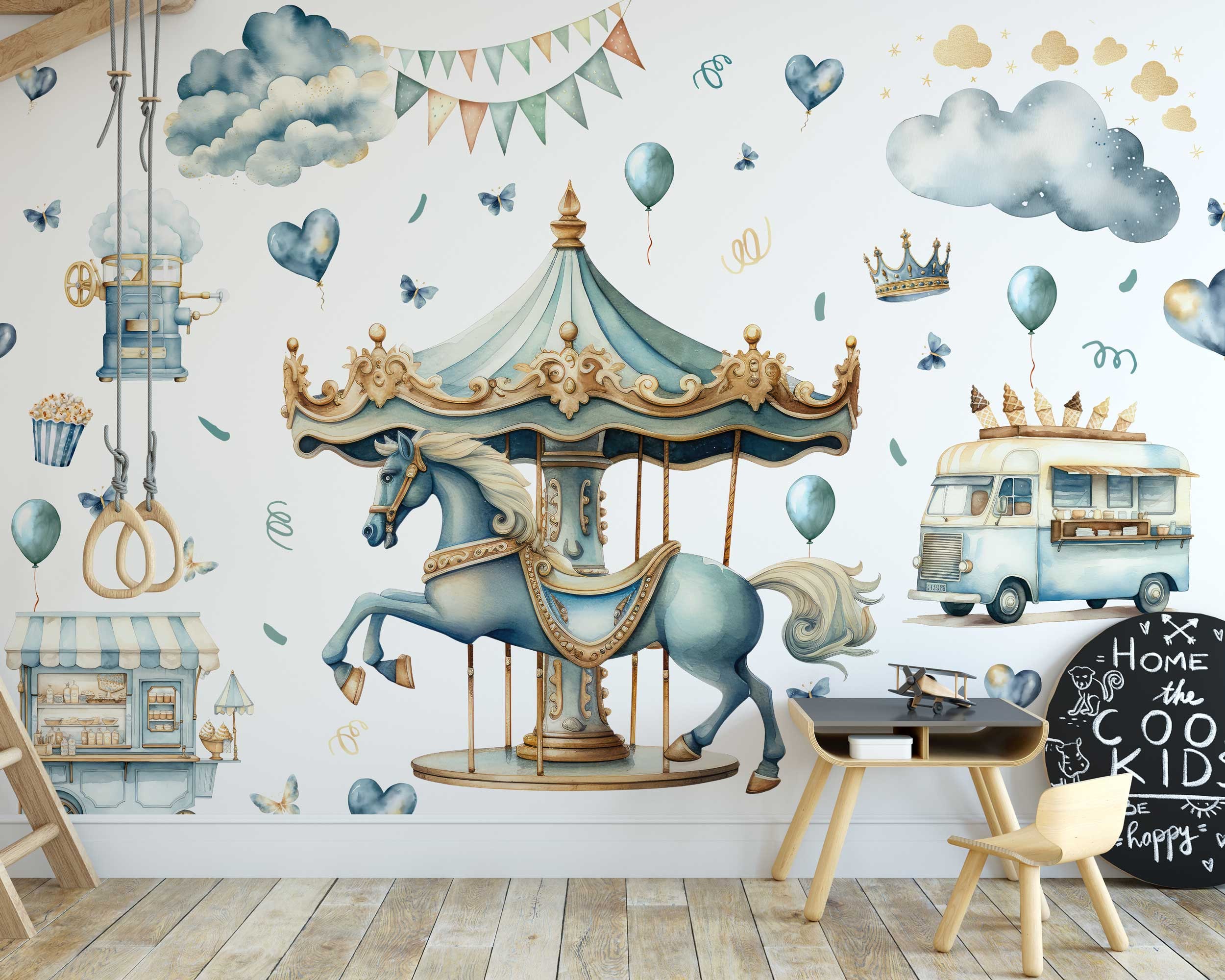 Imagine stepping into a vibrant carnival filled with laughter, music, and endless fun – that's the atmosphere these wall stickers bring to your child's room. Each design features playful carnival elements like carousel horses, Ferris wheels, balloons, and more, creating an immersive experience that sparks the imagination and ignites the sense of adventure in your little one.