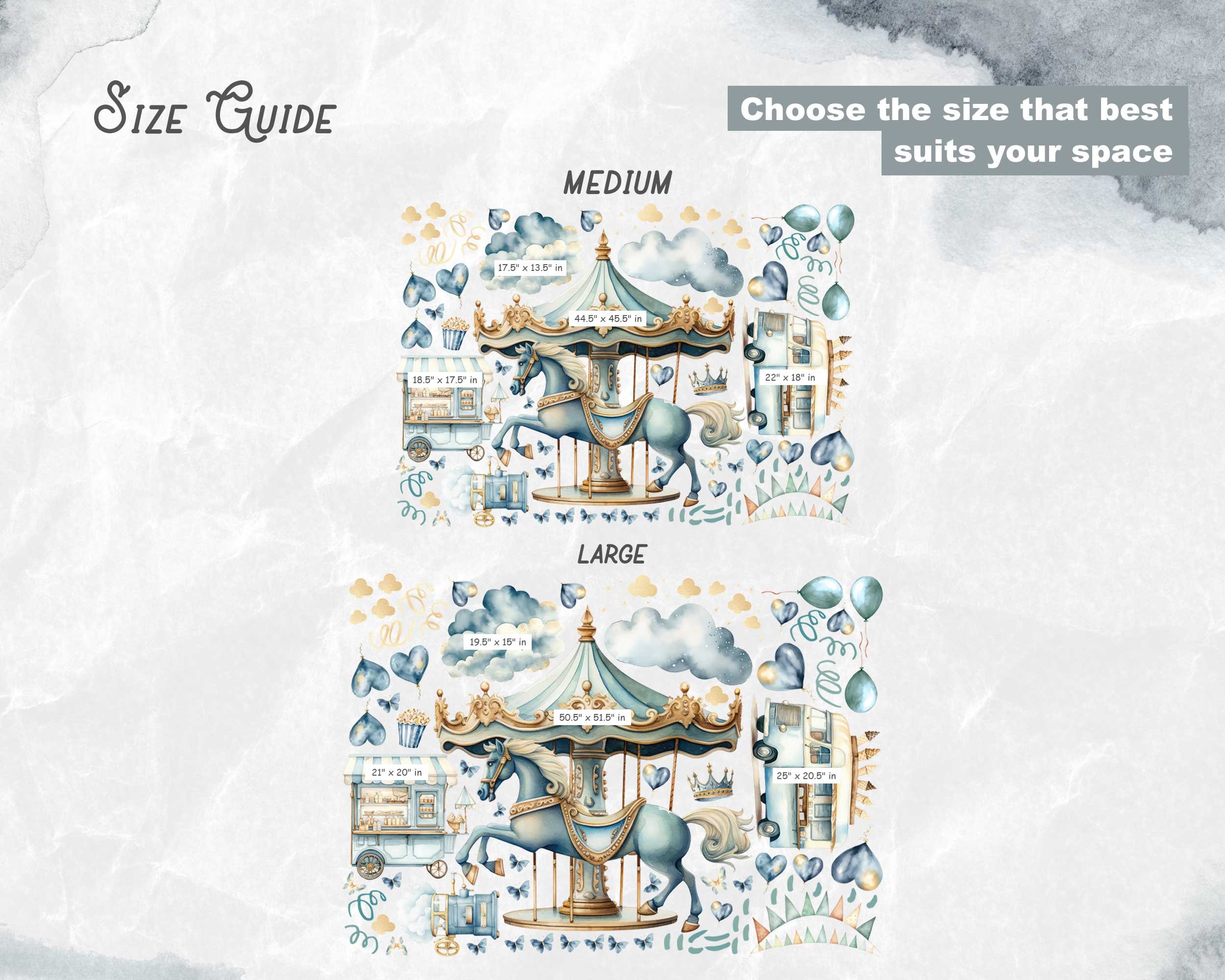 With our easy-to-use wall stickers, transforming your child's room into a whimsical carnival wonderland is a breeze. Simply peel off the backing, stick the decals onto the desired surface, and voilà ! Watch as the room comes to life with vibrant colors and enchanting designs, creating a magical space where dreams flourish and memories are made.