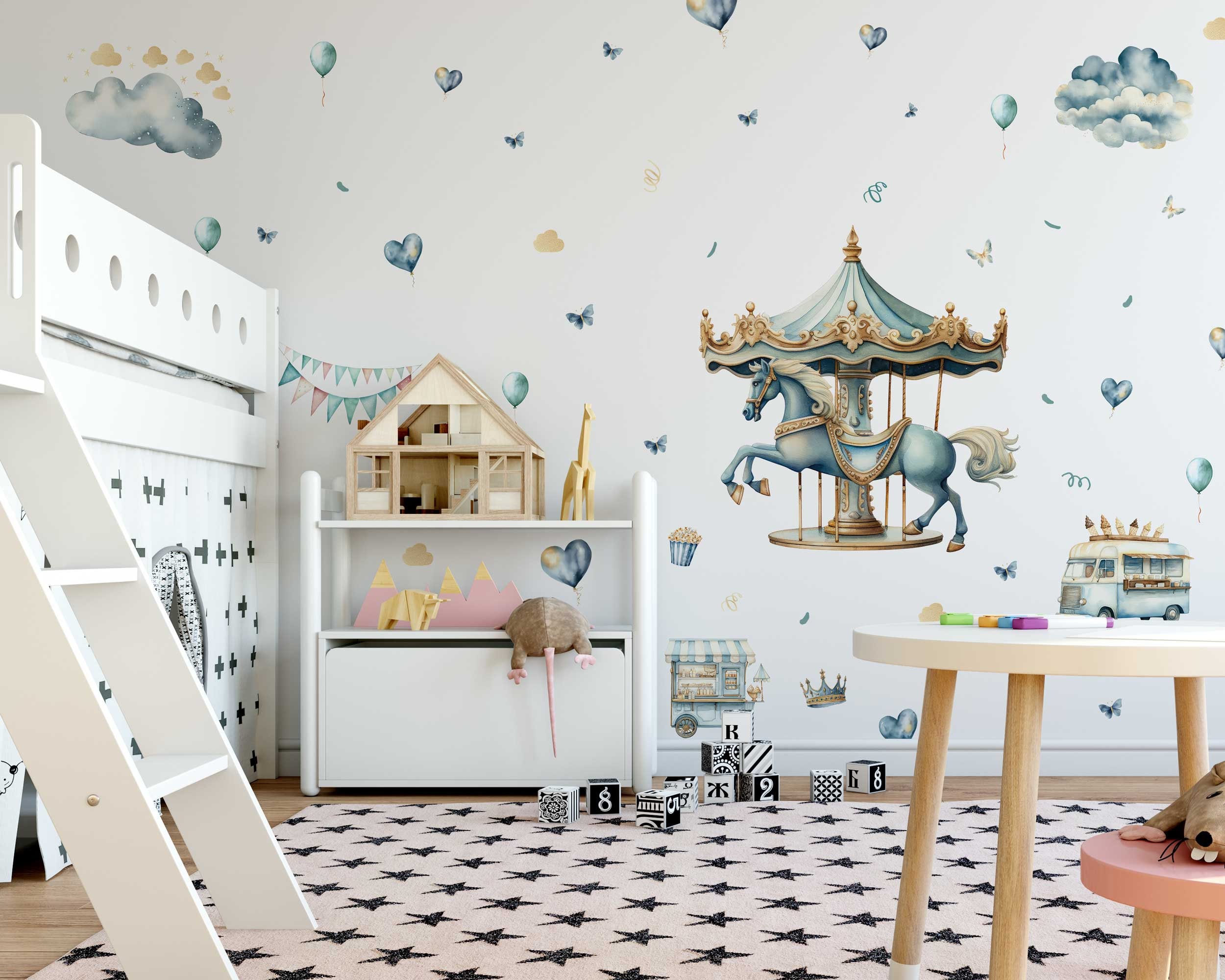 Transform your child's room into a magical oasis where every day feels like a trip to the carnival. With our Whimsical Carnival Girls Bedroom Wall Stickers with Horses, you're not just decorating a space – you're creating a backdrop for countless adventures, laughter-filled moments, and cherished memories that will last a lifetime.